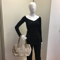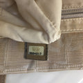 This beautiful shoulder bag is crafted of nylon fabric in Beige, with leather details