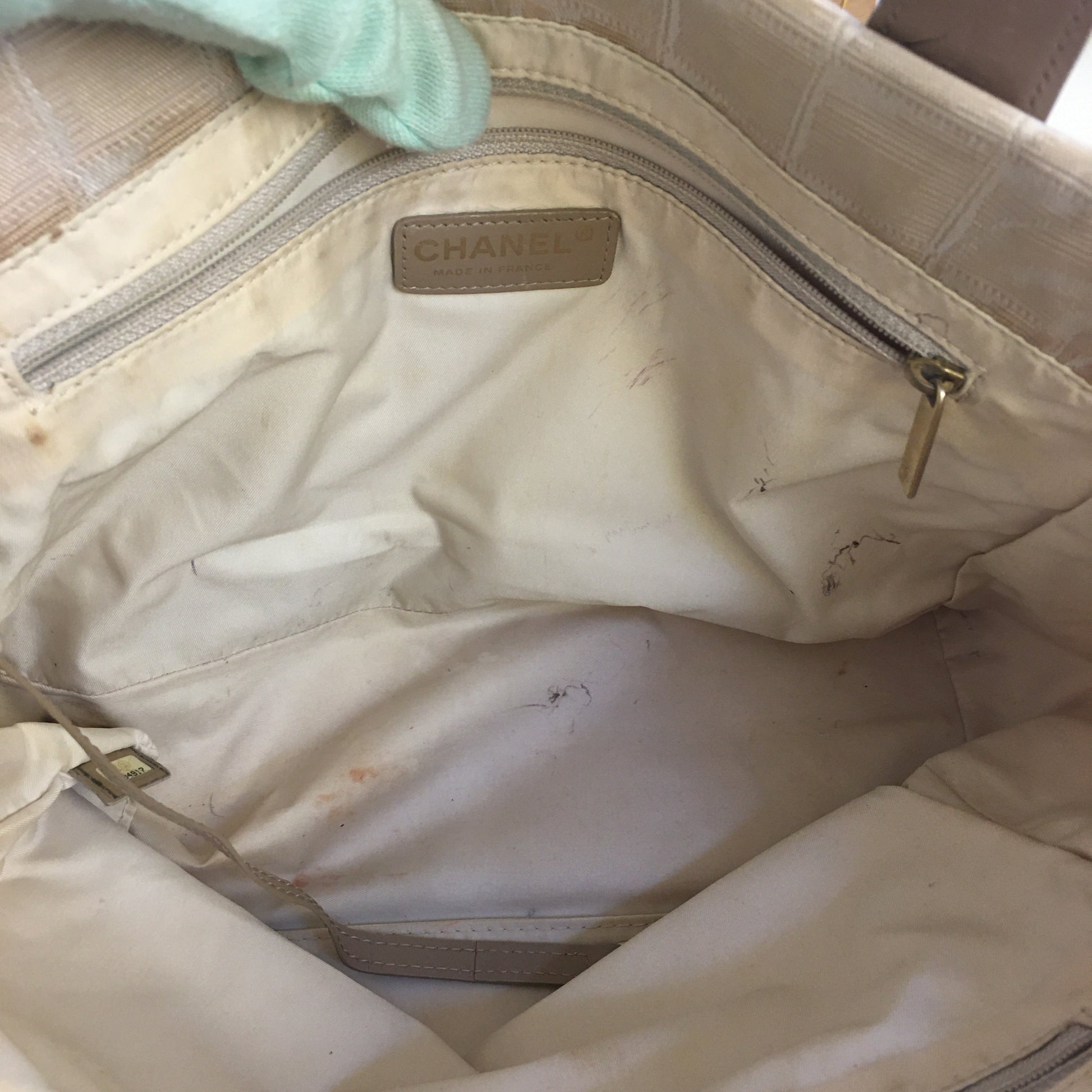 Inside, there are stains and pen marks