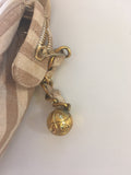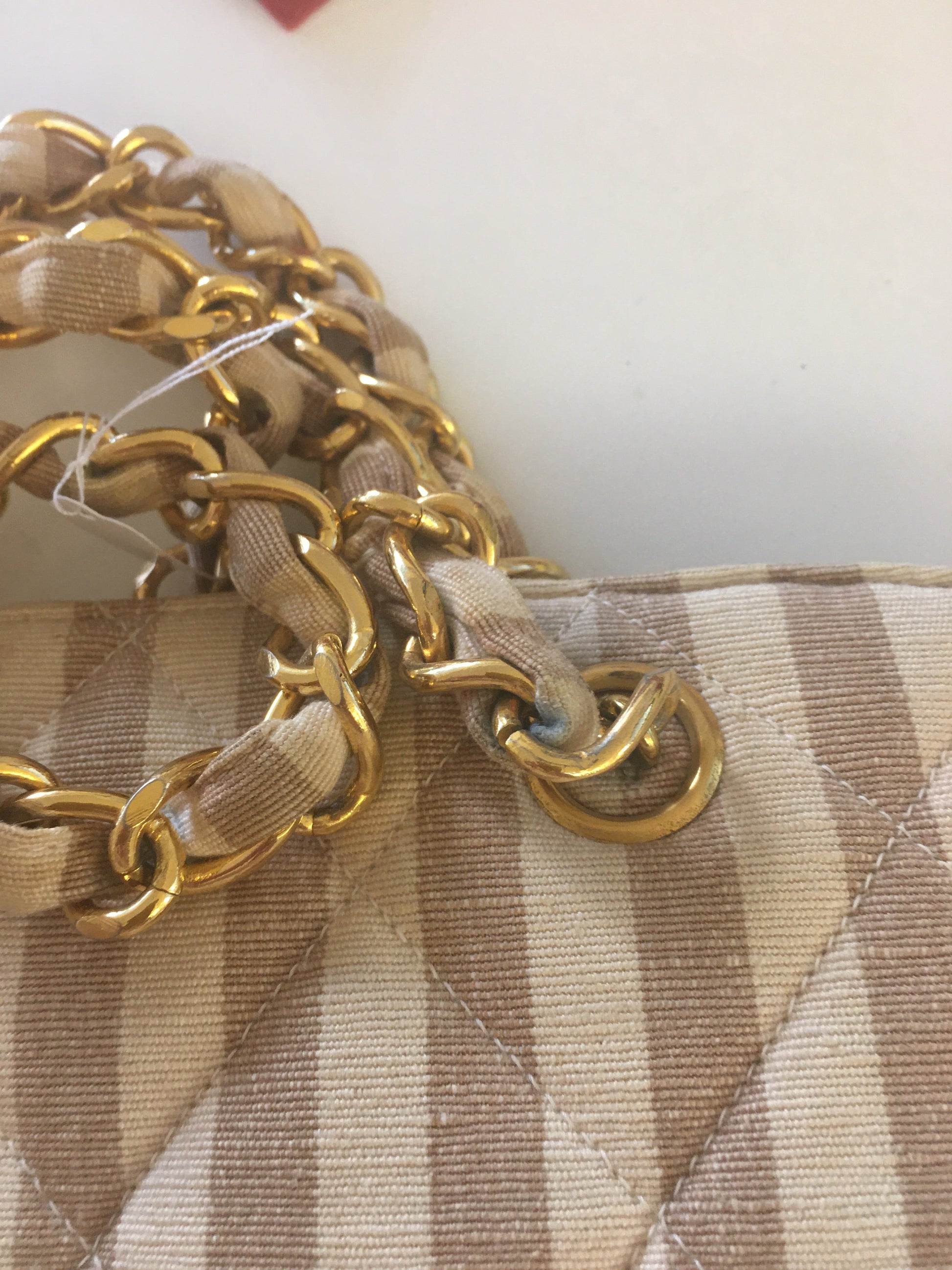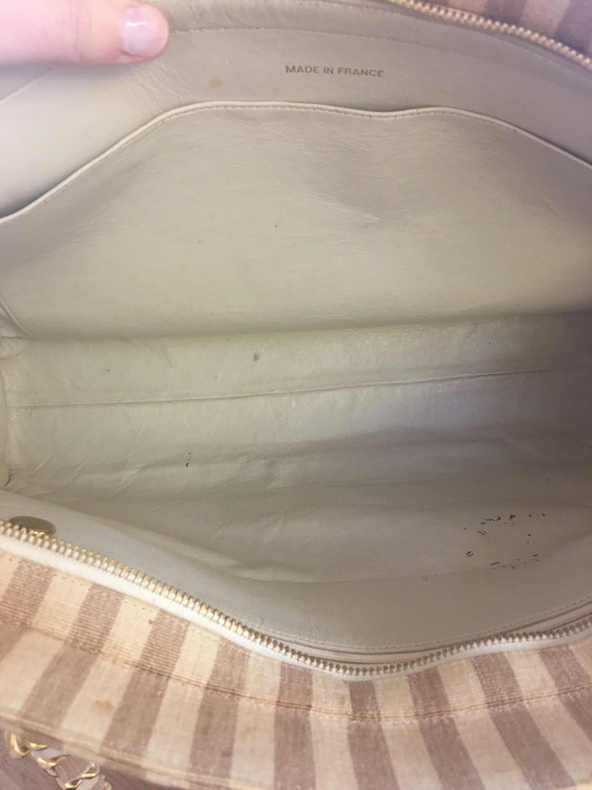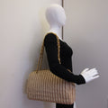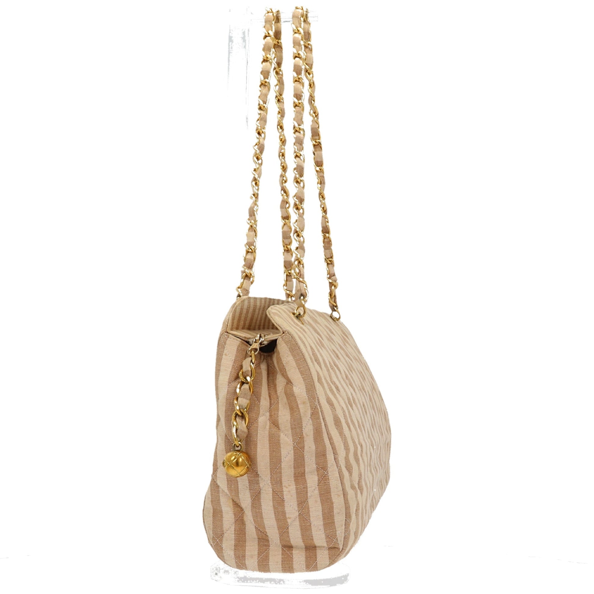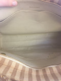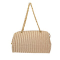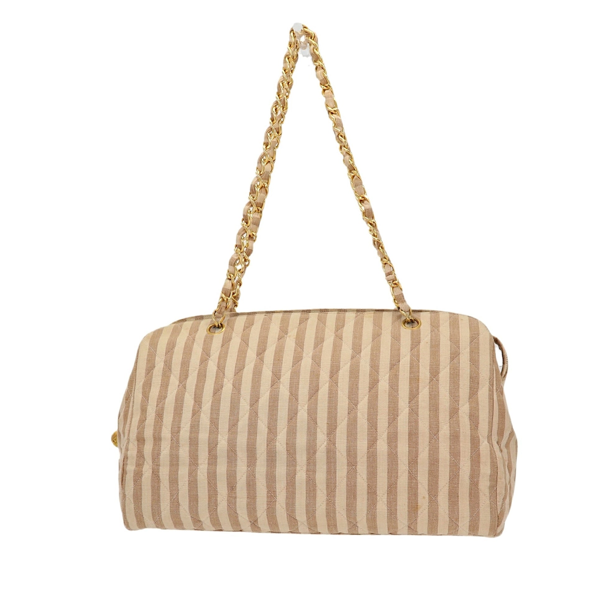 This gorgeous shoulder bag is constructed striped toile fabric in Beige and Brown