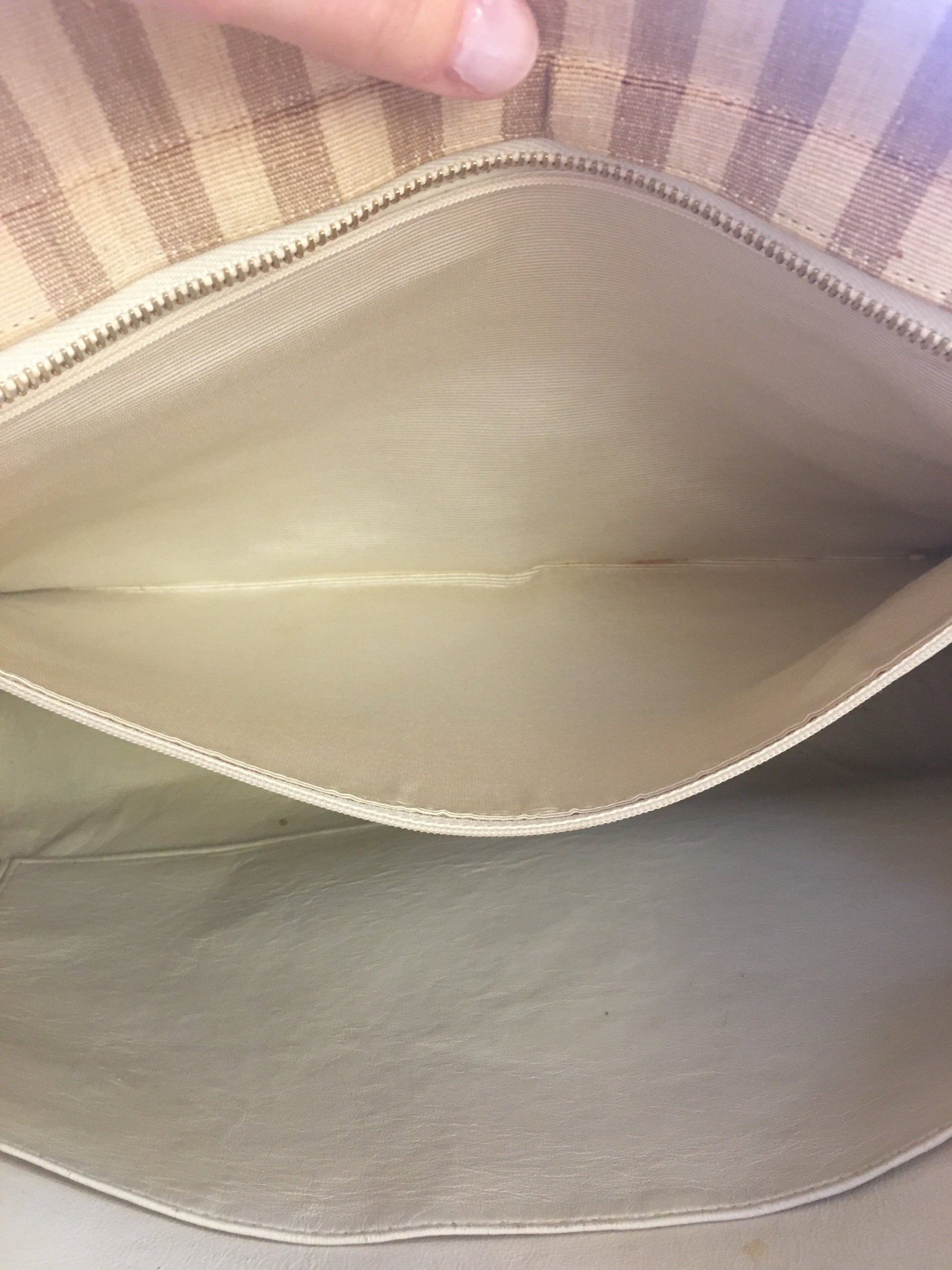 Inside, the bag is leather lined and there are two big pockets, one zipped
