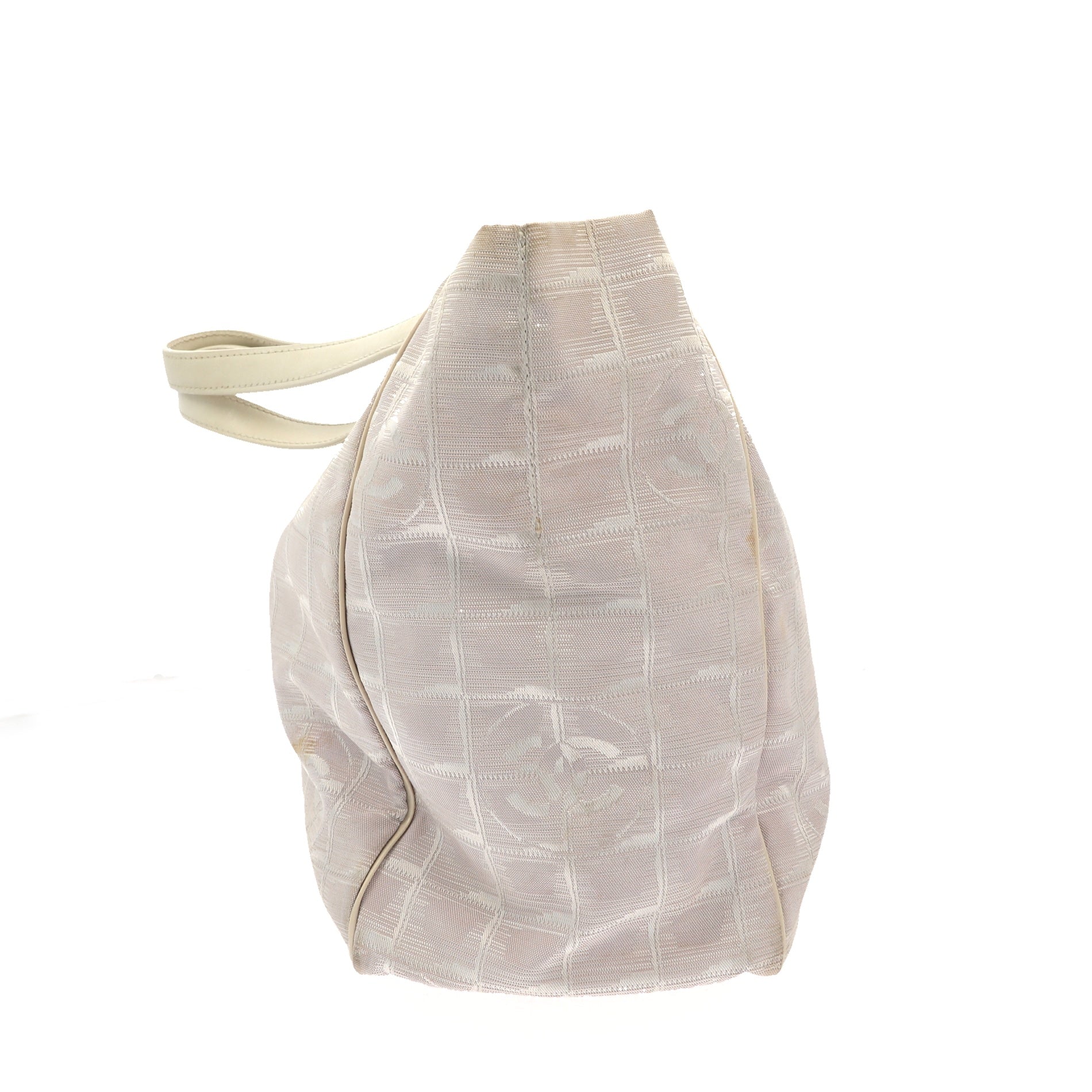 This lovely shoulder bag is constructed nylon fabric in White with leather details