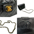 CHANEL Shoulder Bag Lambskin Black Gold Women's z1848