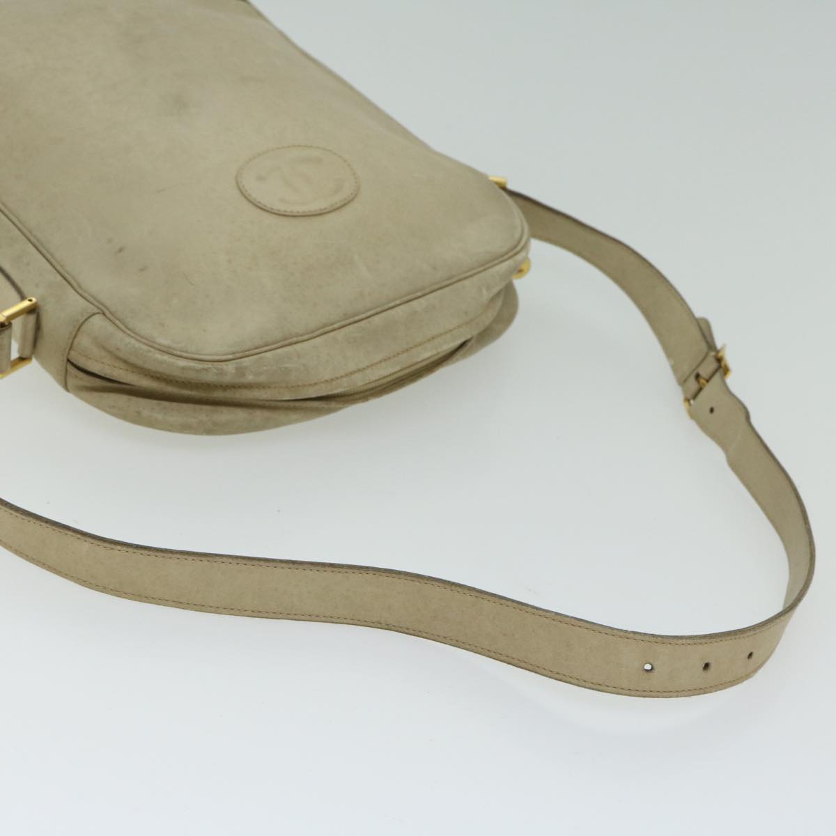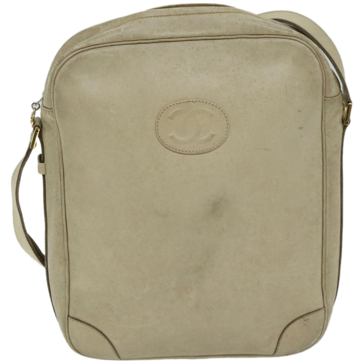 CHANEL Shoulder Bag Leather Beige CC Auth bs12353