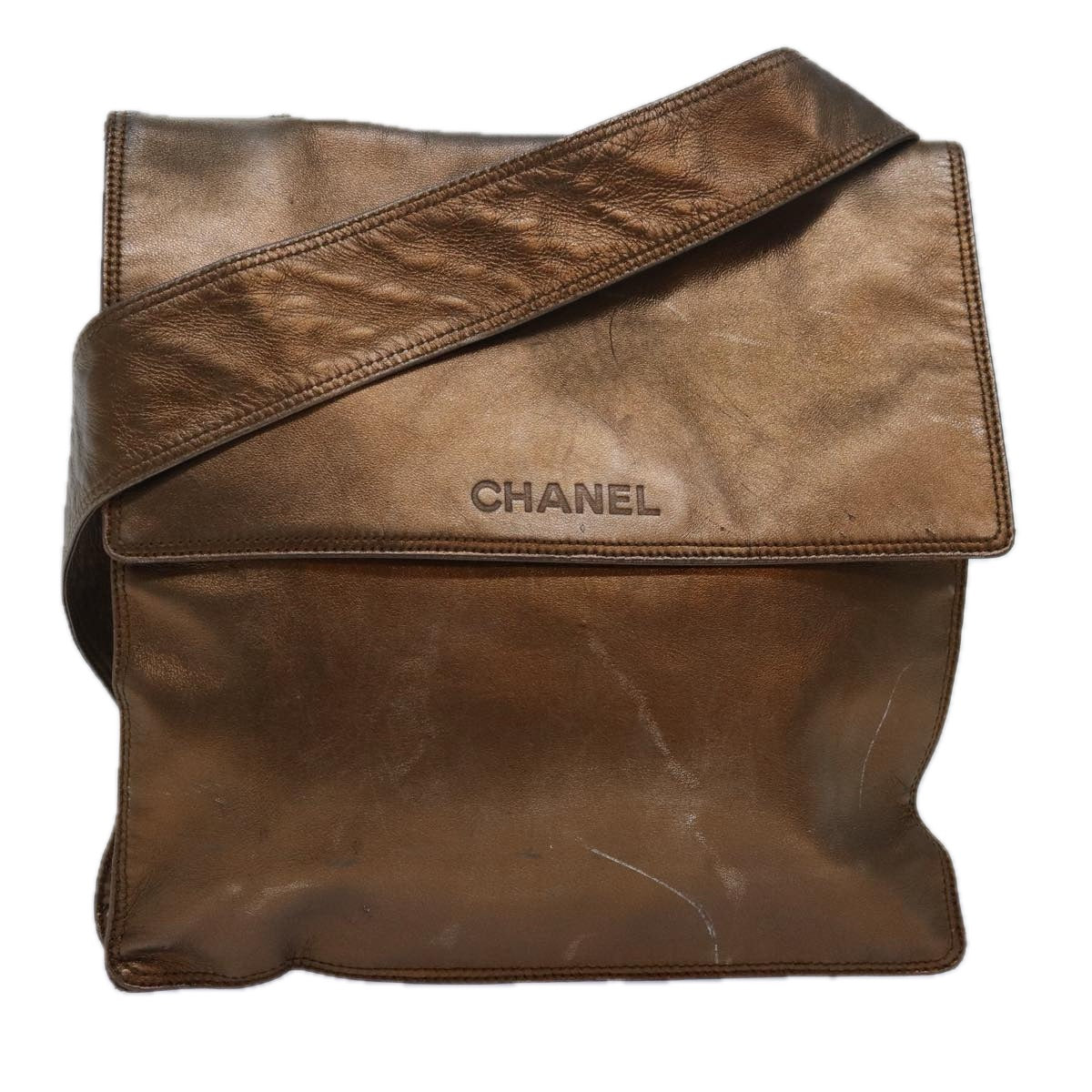 CHANEL Shoulder Bag Leather Gold Tone CC Auth bs16149