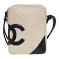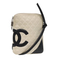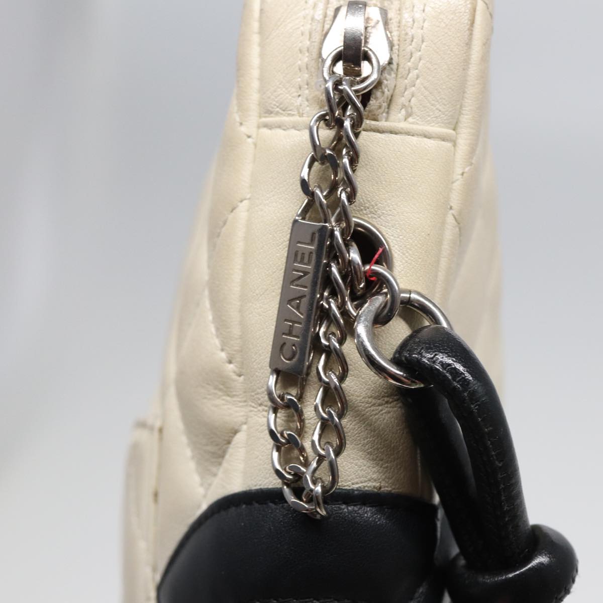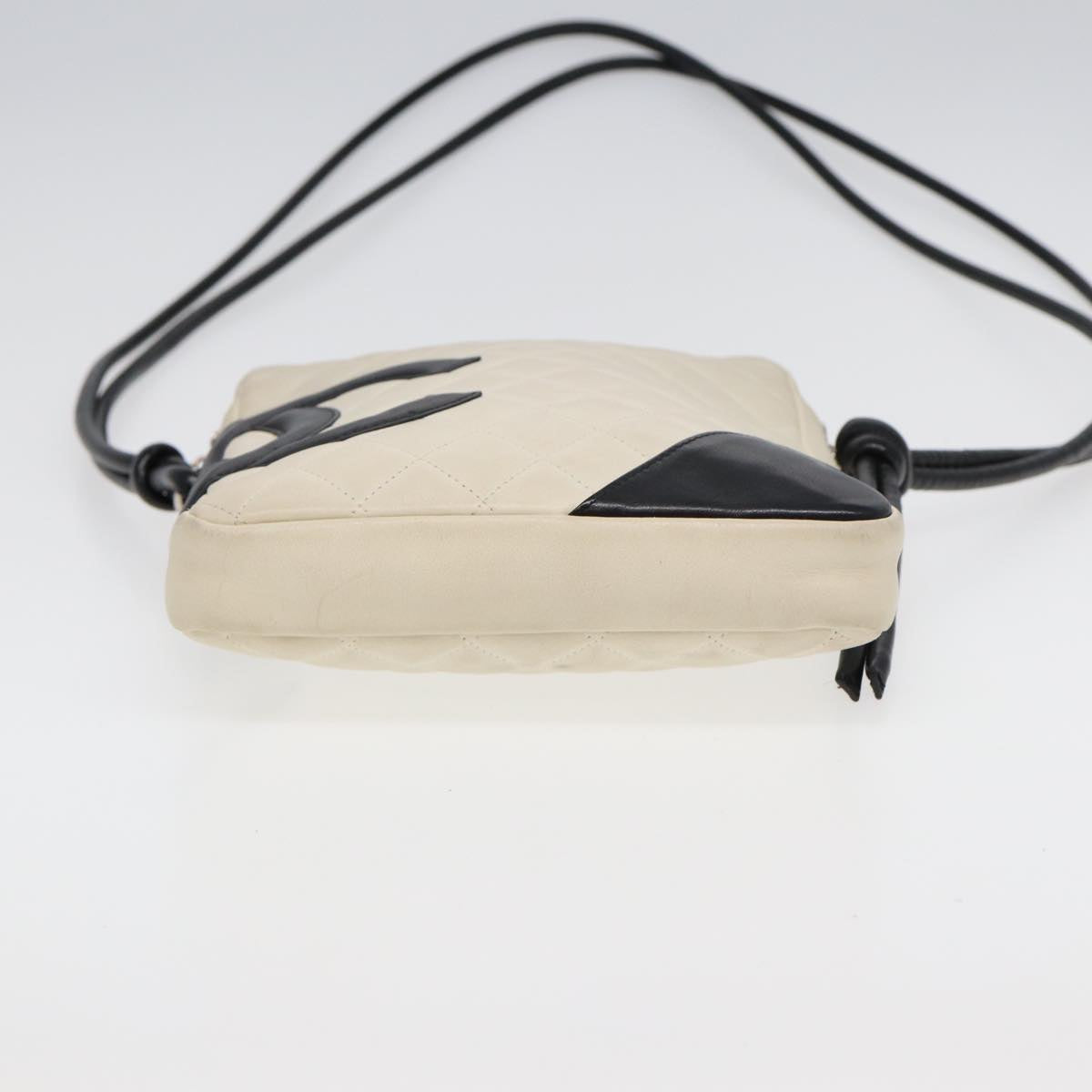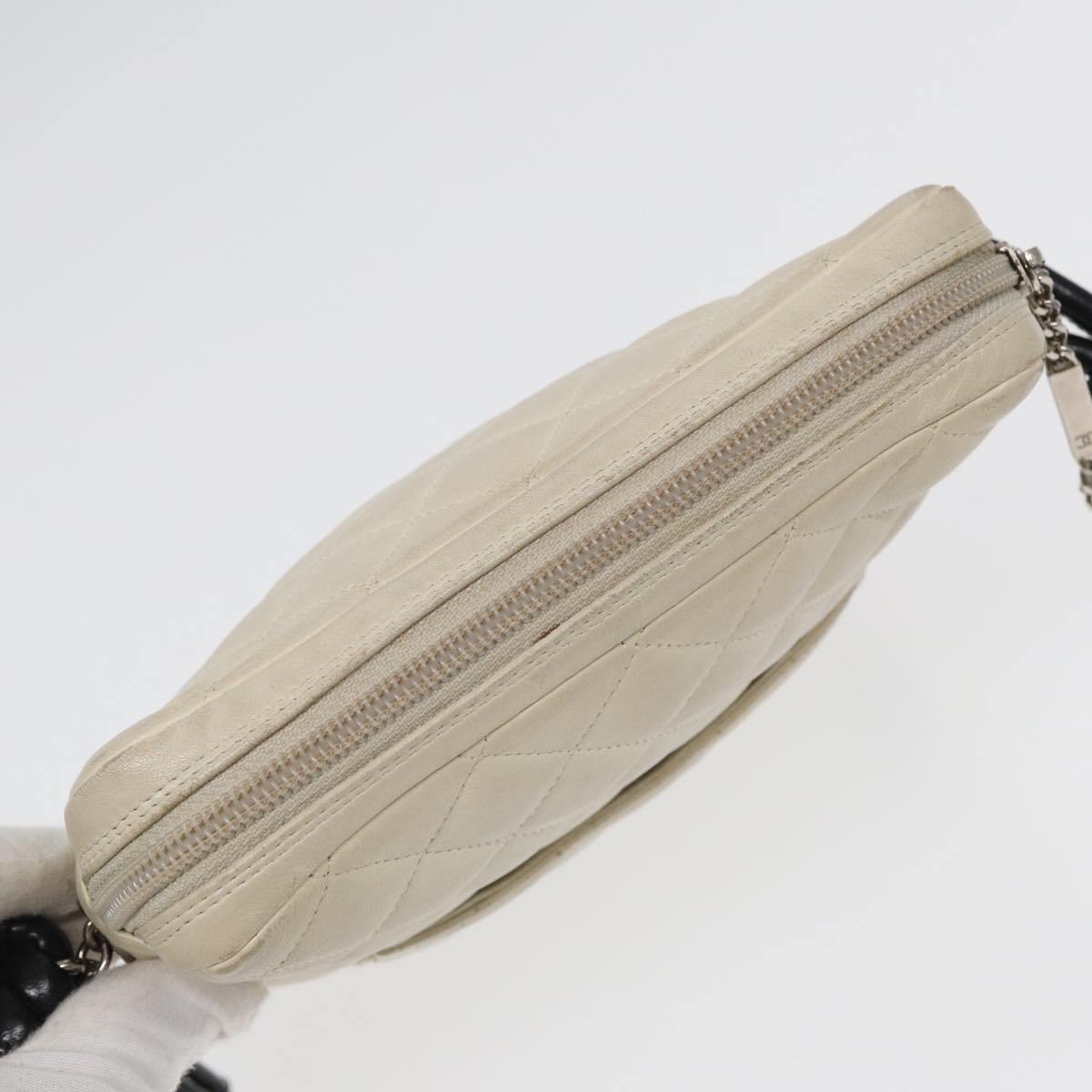CHANEL Shoulder Bag Leather White Black CC Auth yk14040