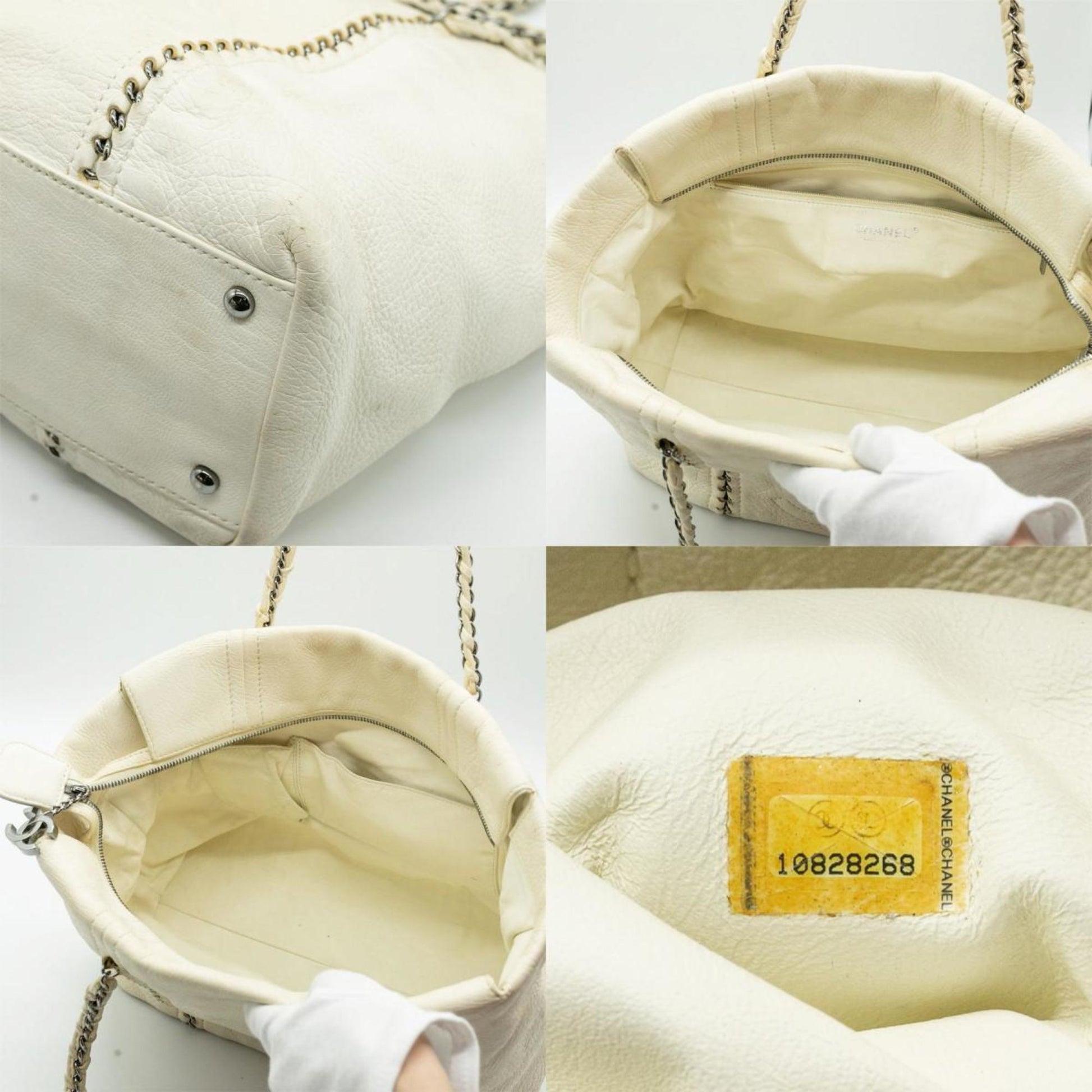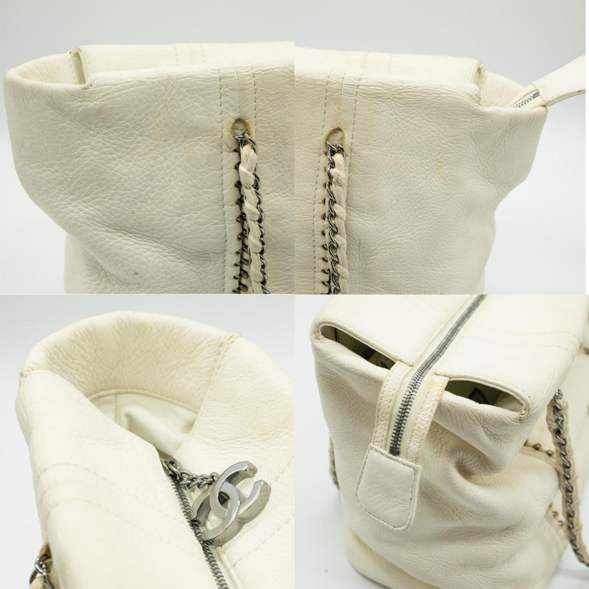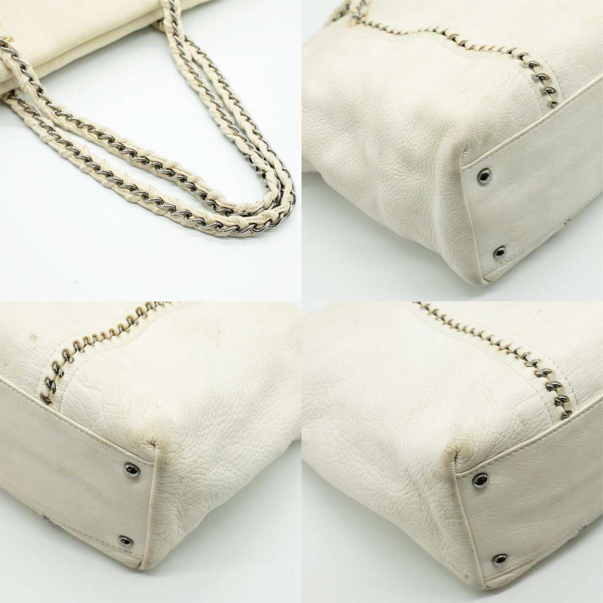 CHANEL Shoulder Bag Luxury Line Coco Mark Chain Leather White Silver Women's PD25
