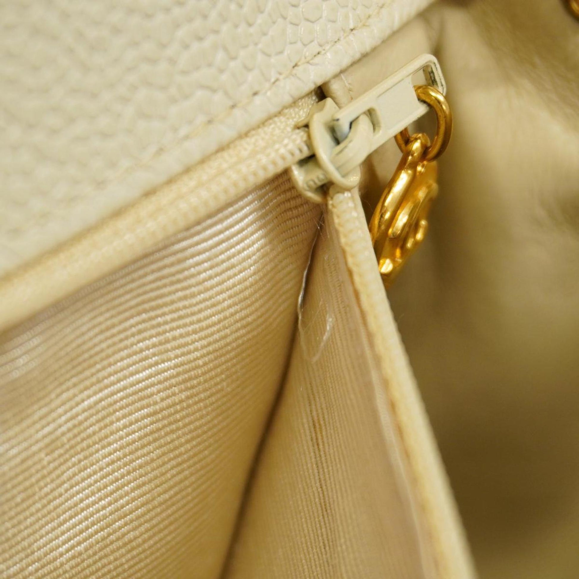 Chanel Shoulder Bag Mademoiselle Chain Caviar Skin White Women's
