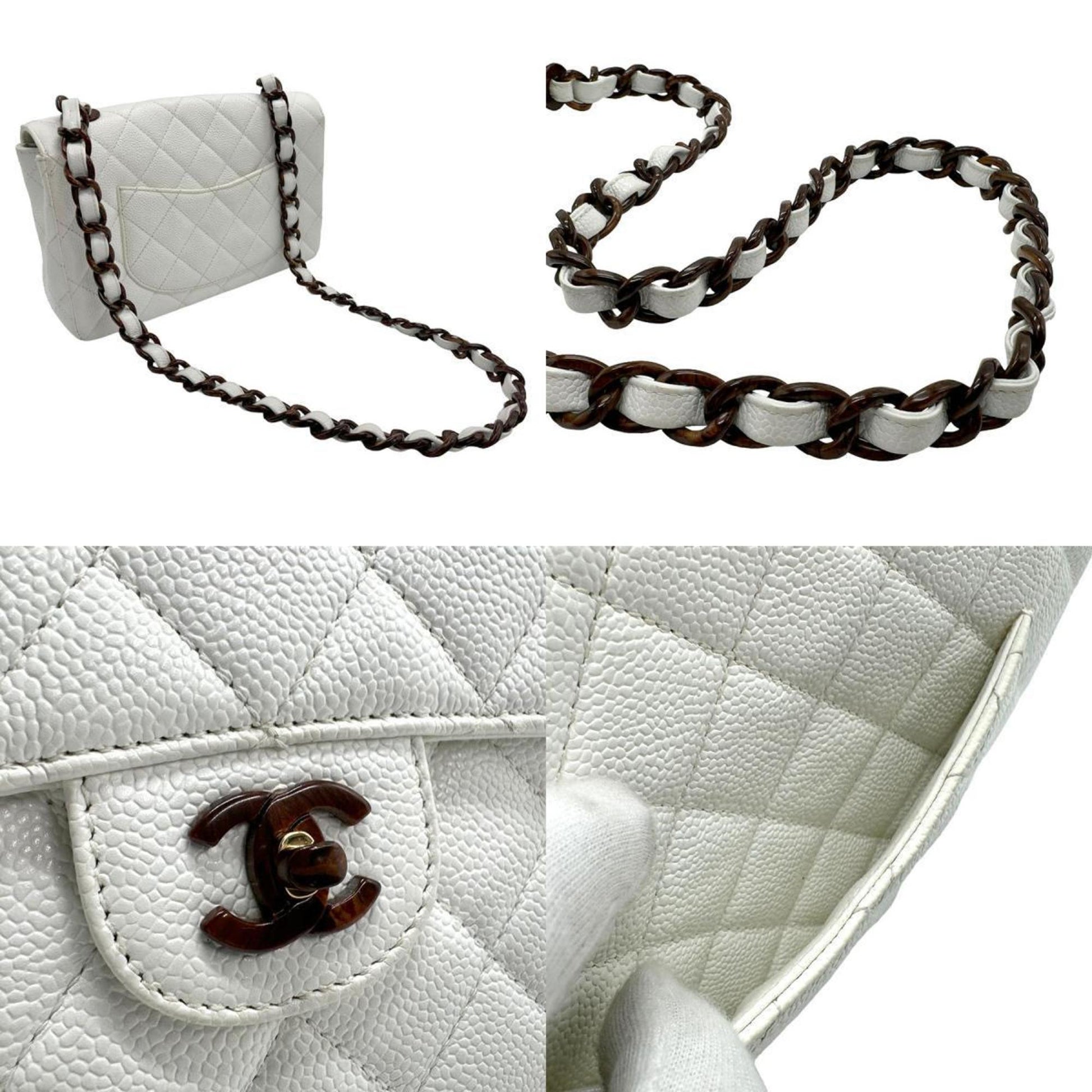 CHANEL Shoulder Bag Matelasse Caviar Skin Leather White Women's z1632