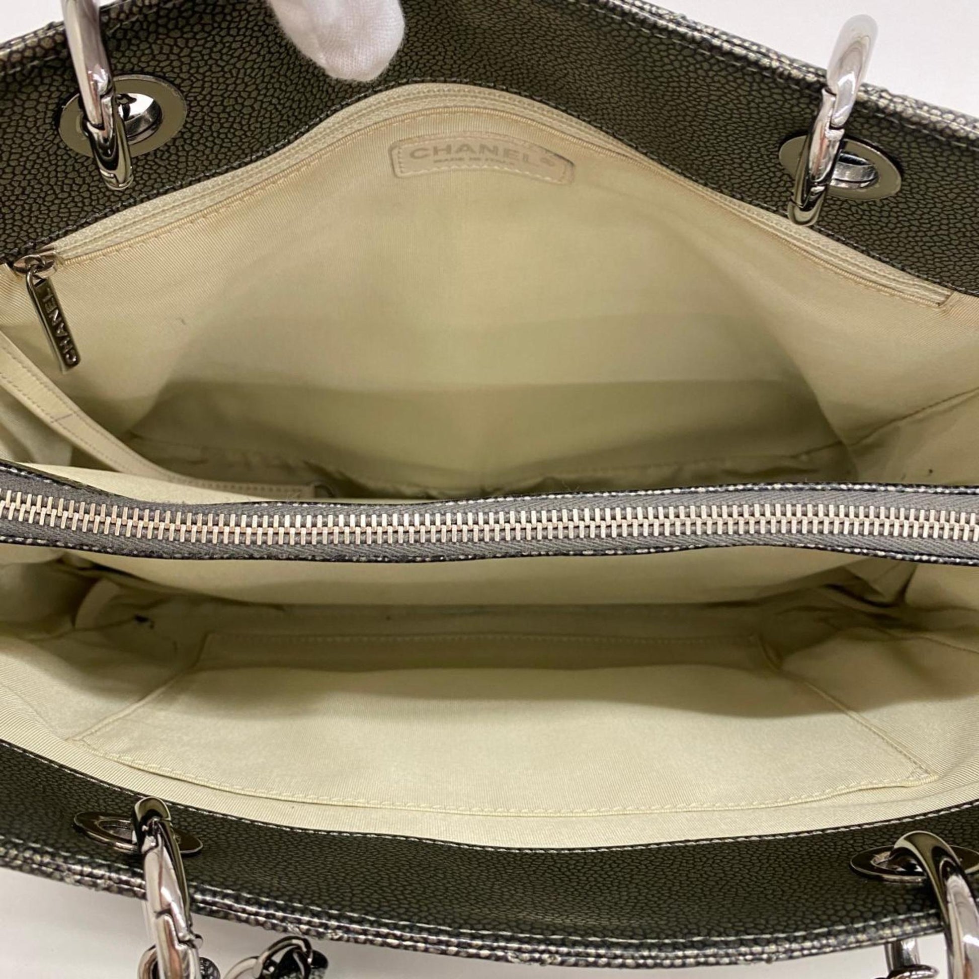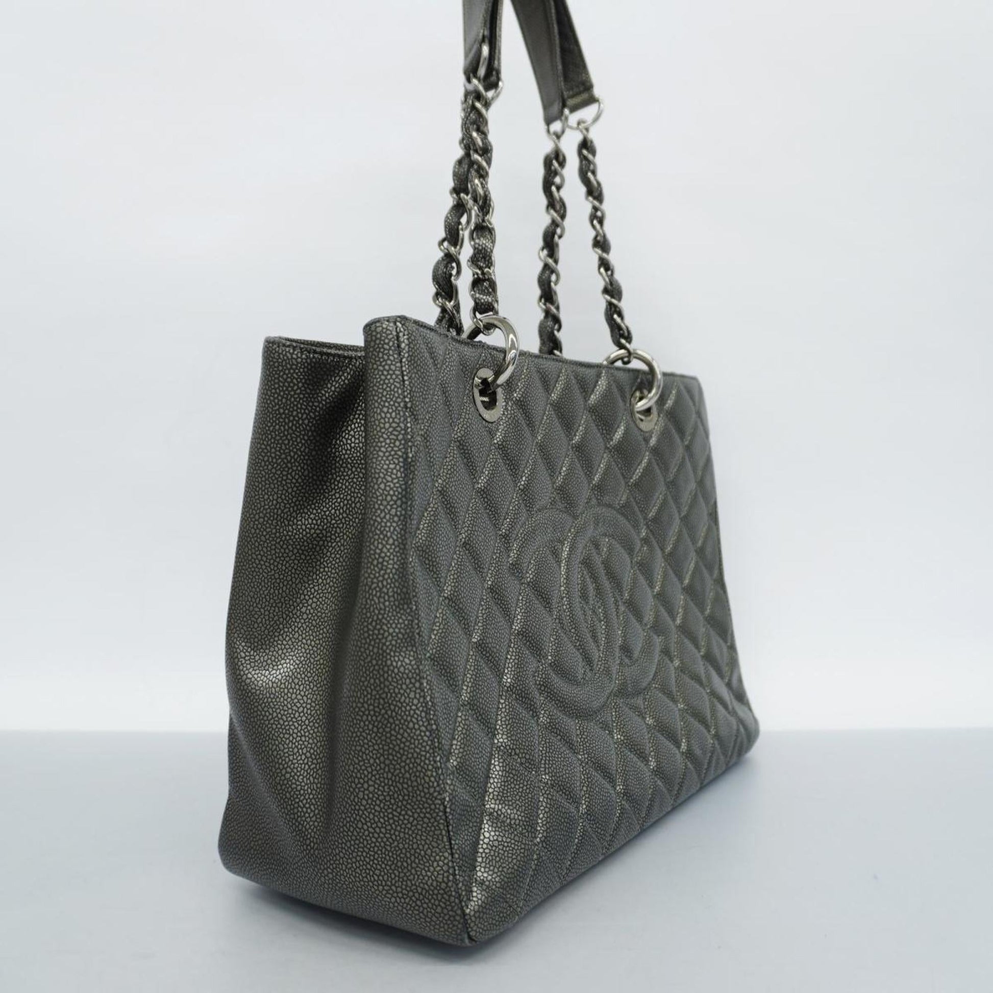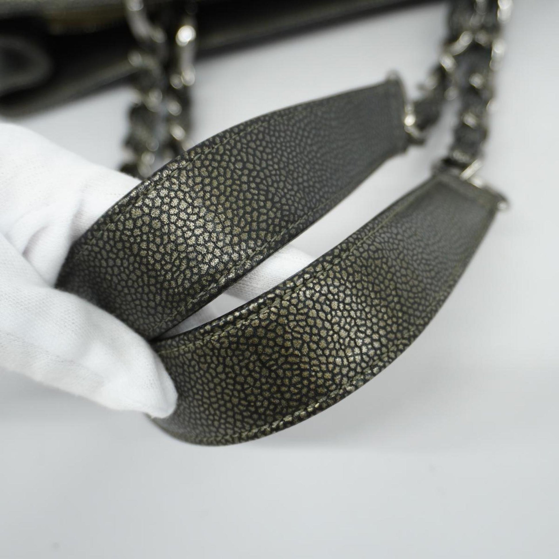Chanel Shoulder Bag Matelasse Chain Caviar Skin Metallic Grey Women's