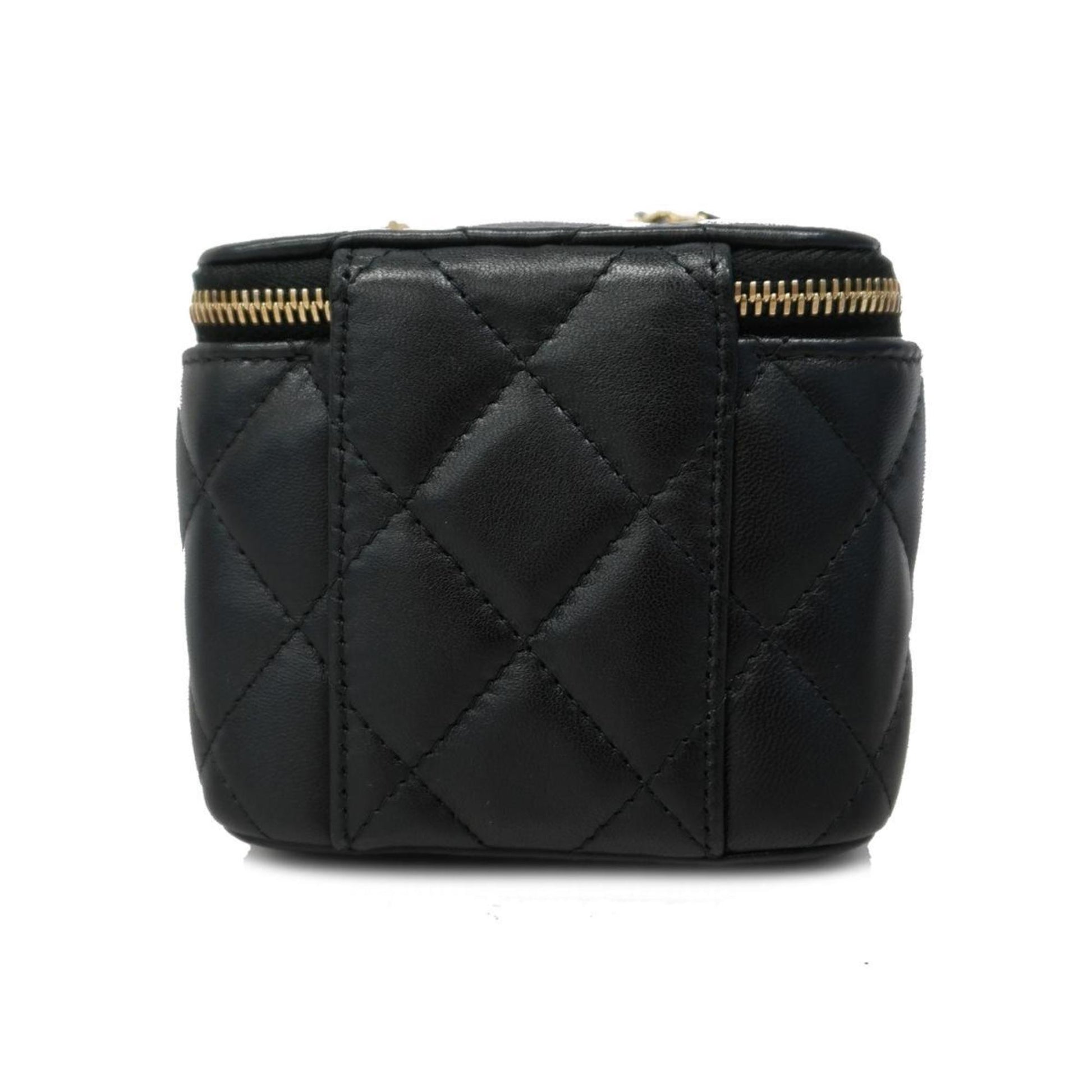 Chanel Shoulder Bag Matelasse Chain Lambskin Black Champagne Women's