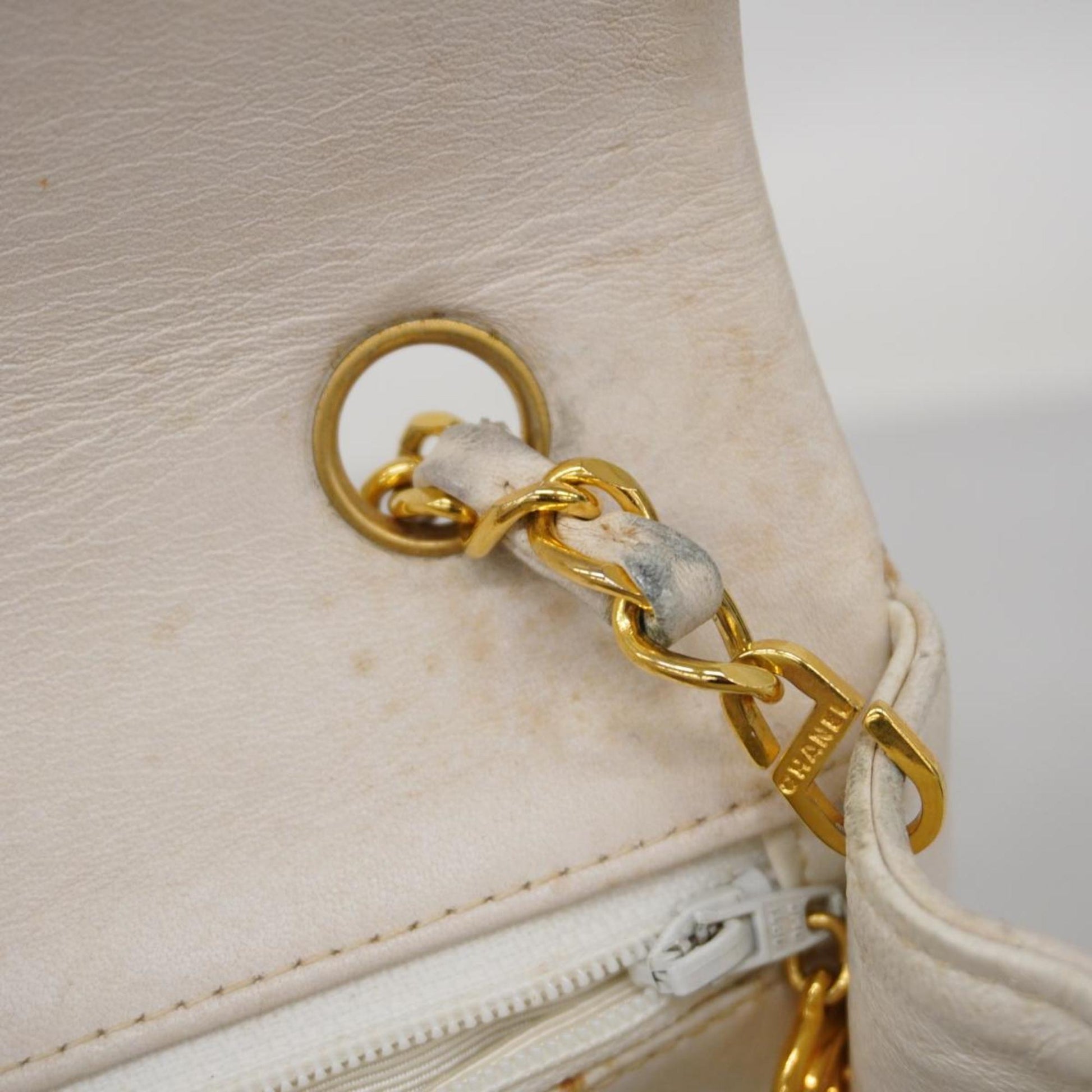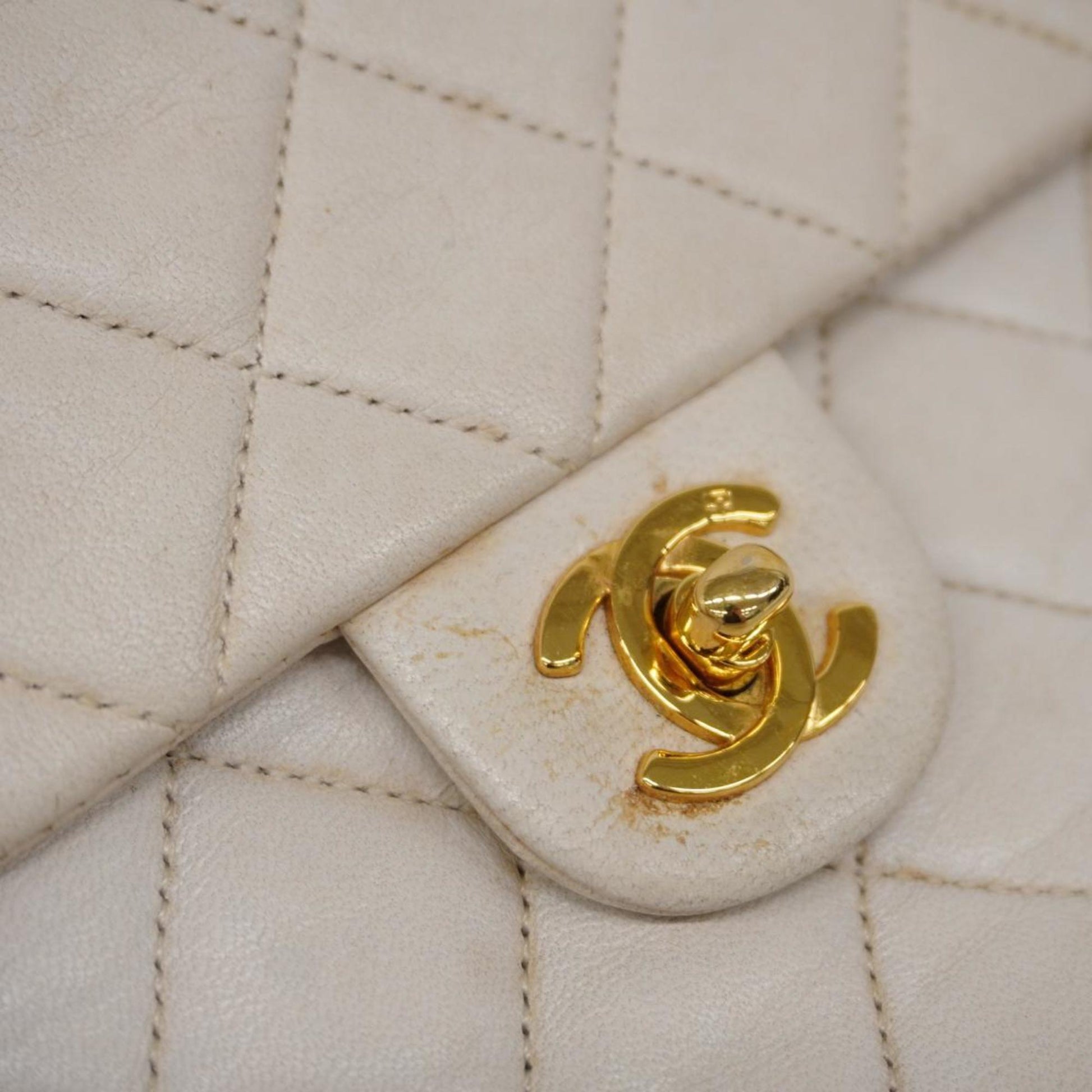 Chanel Shoulder Bag, Matelasse, Chain Shoulder, Lambskin, White, Women's