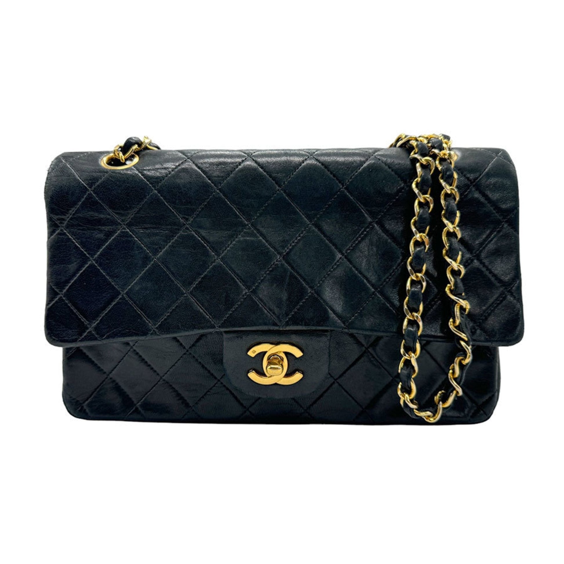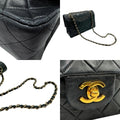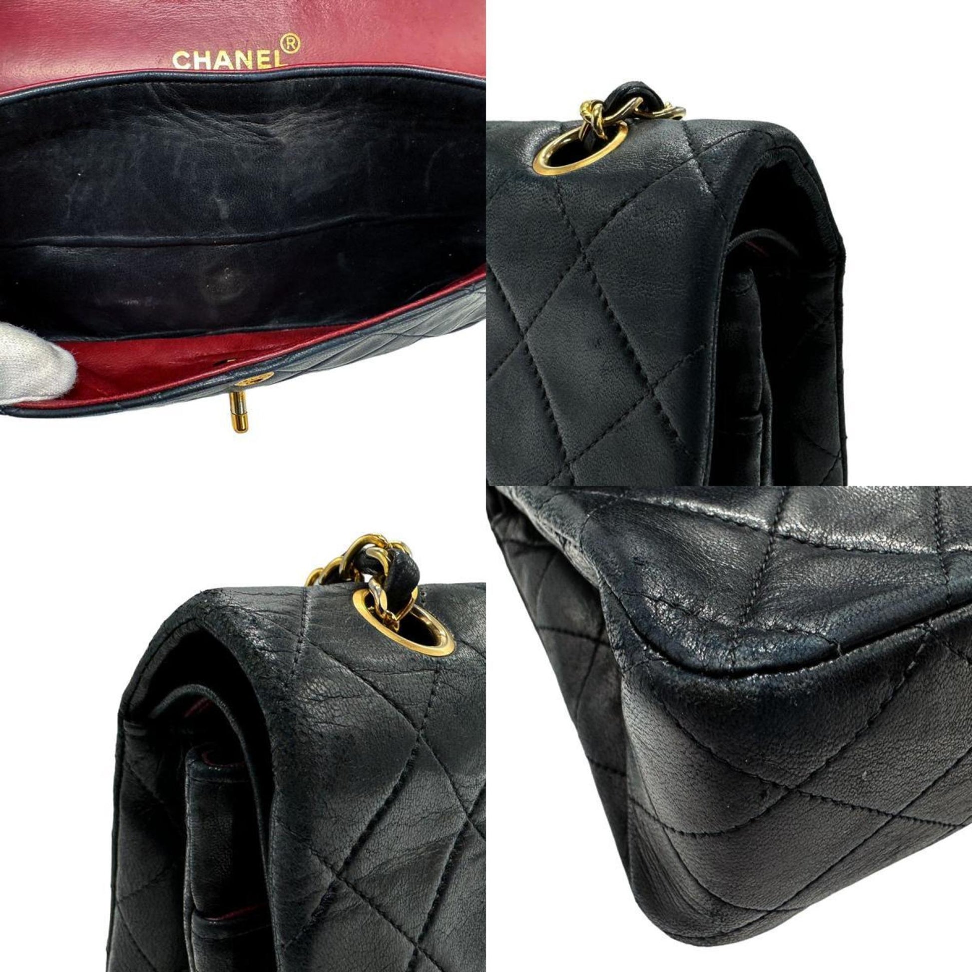 CHANEL Shoulder Bag Matelasse Double Flap Leather Metal Black Gold Women's z1865