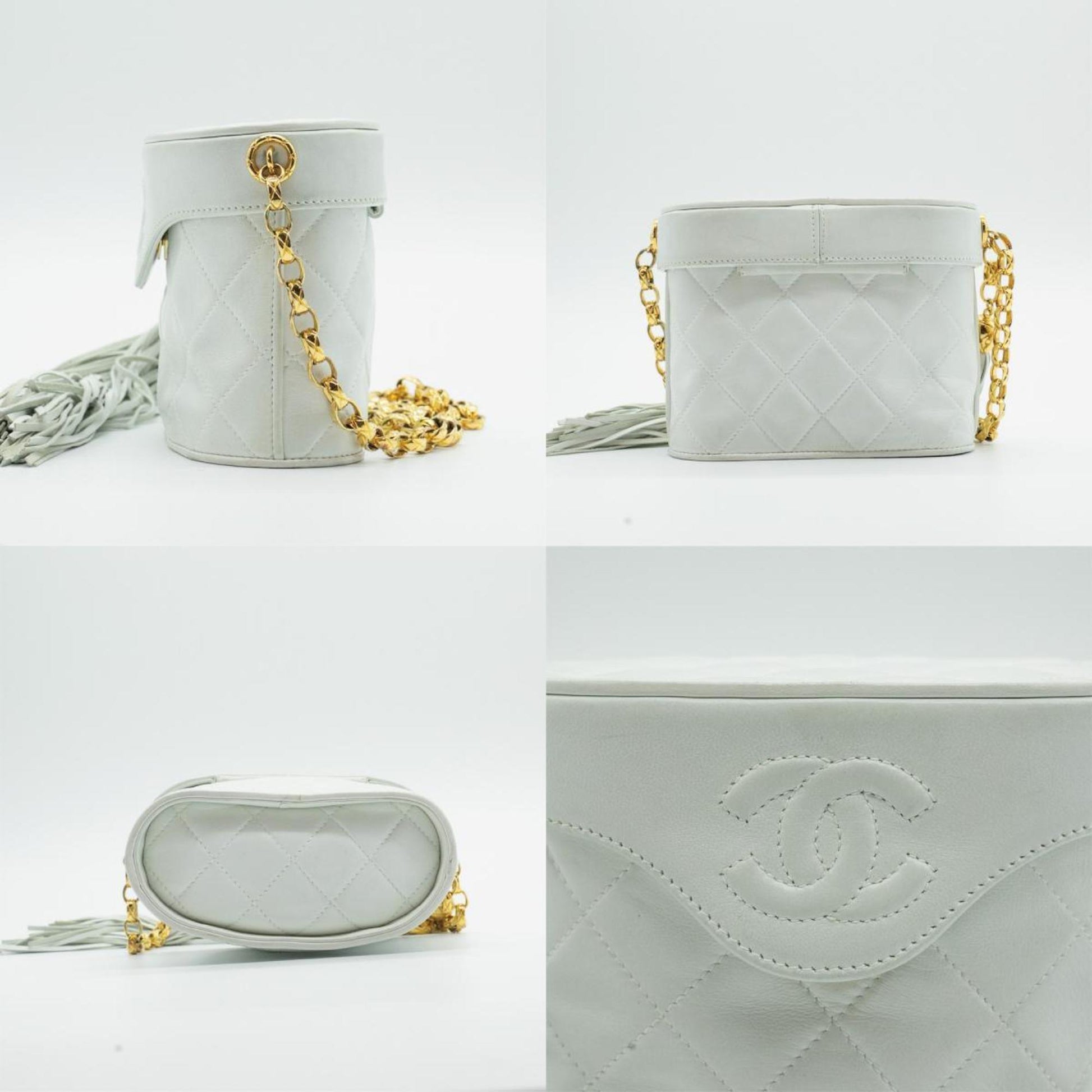 CHANEL Shoulder Bag Matelasse Leather White Gold Women's PD11