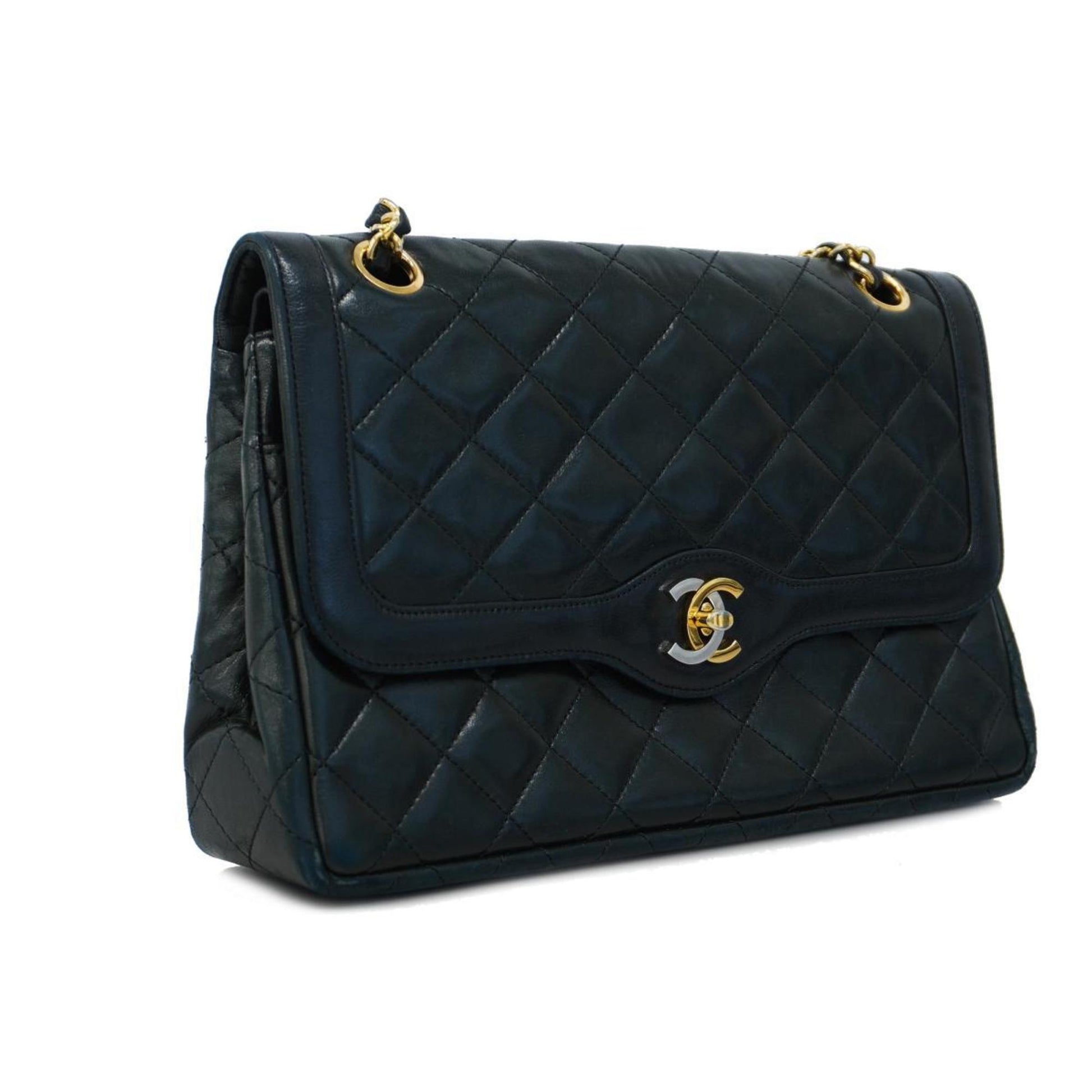 Chanel Shoulder Bag Matelasse Paris Limited W Flap Chain Lambskin Black Women's