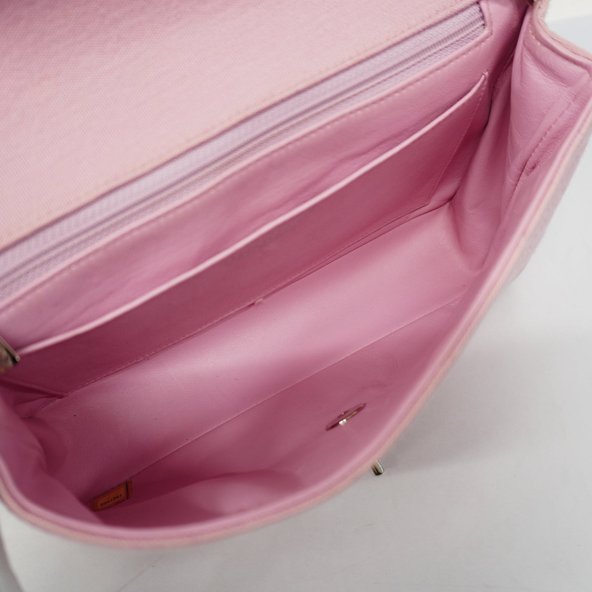 Chanel shoulder bag matelasse single chain cotton pink silver metal