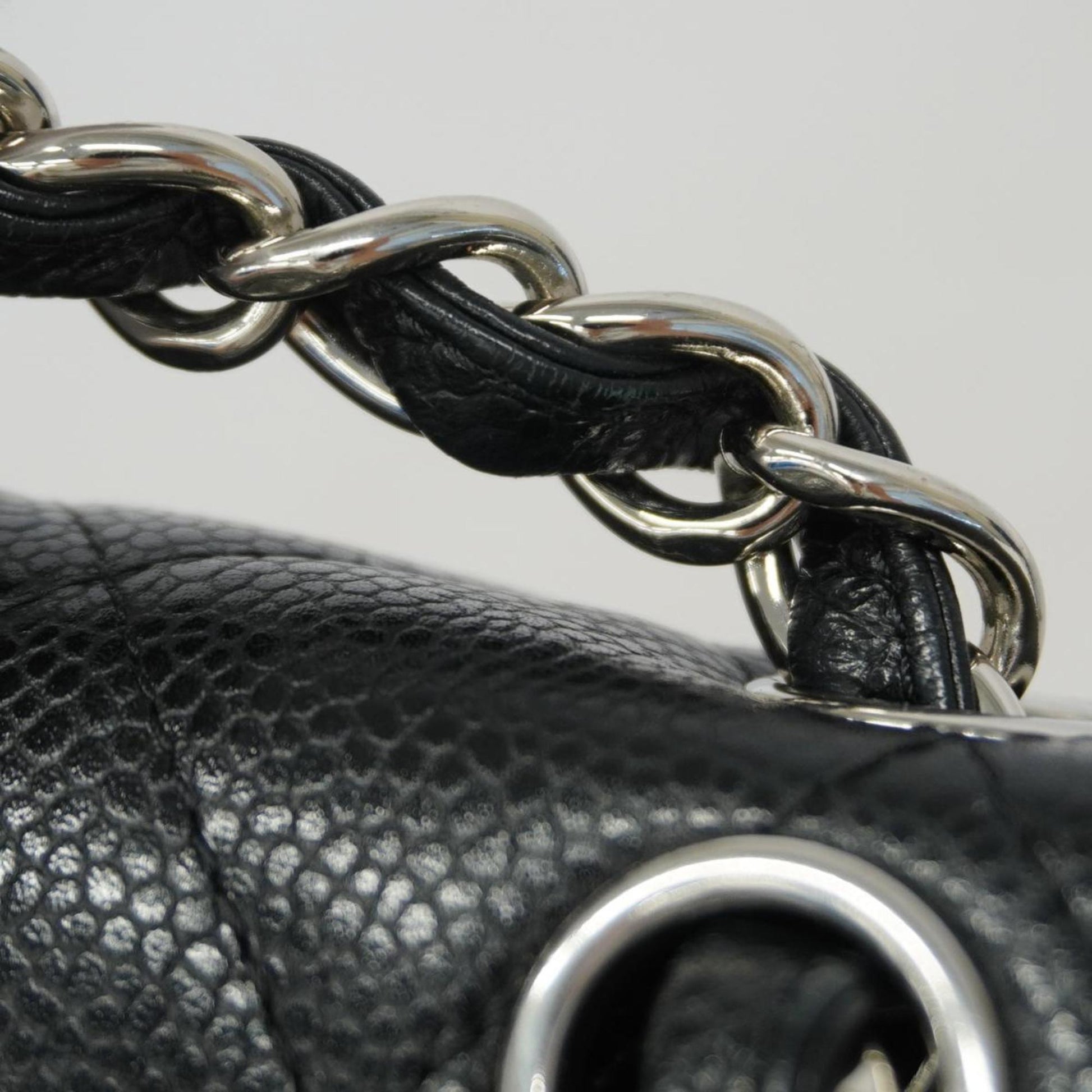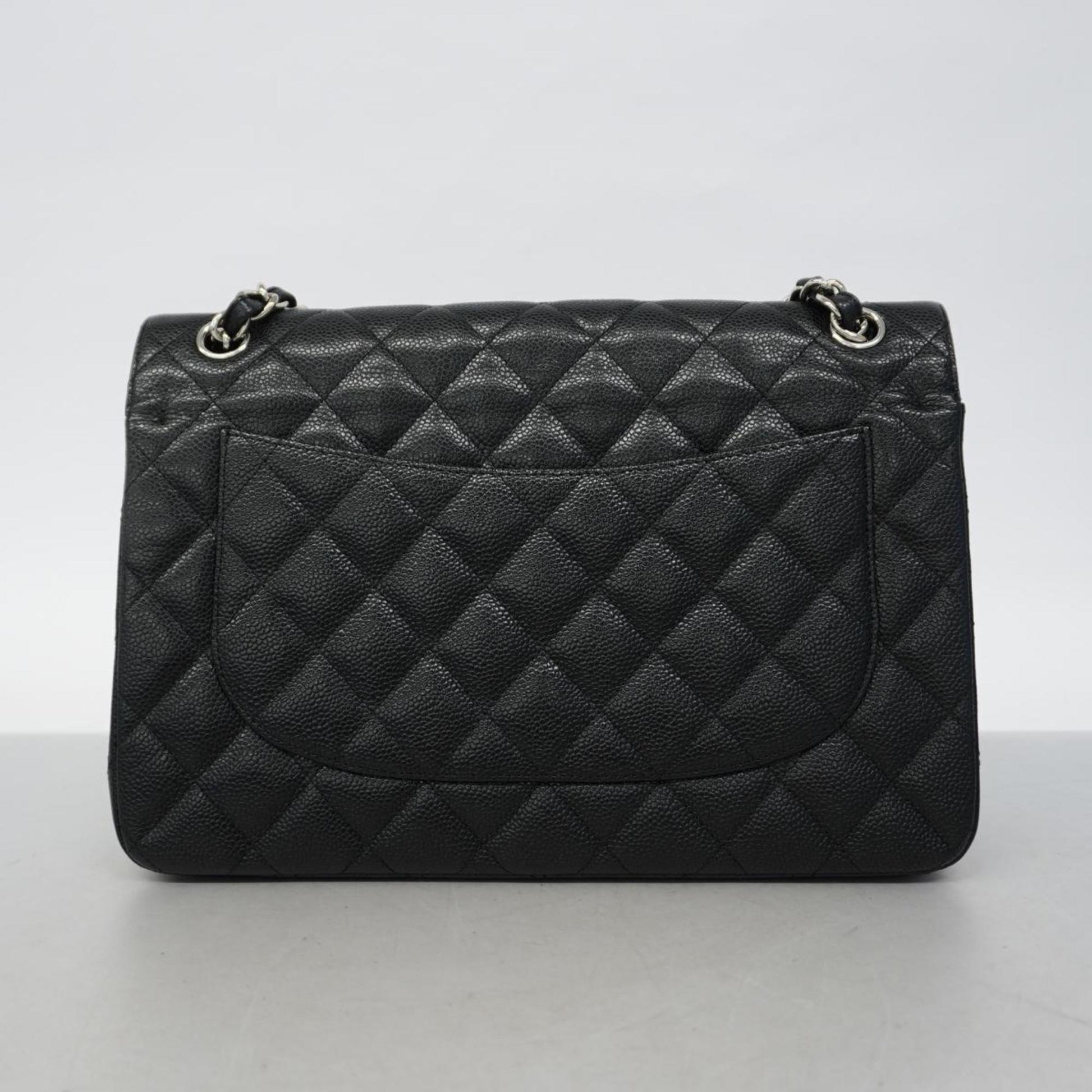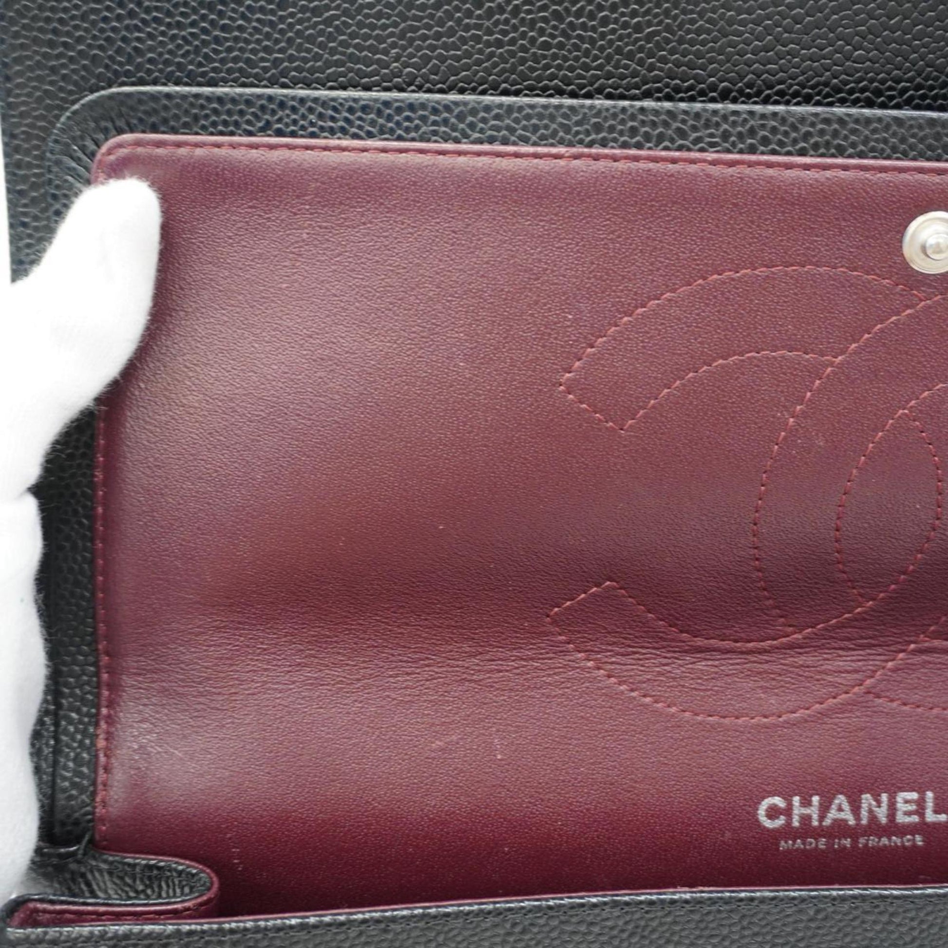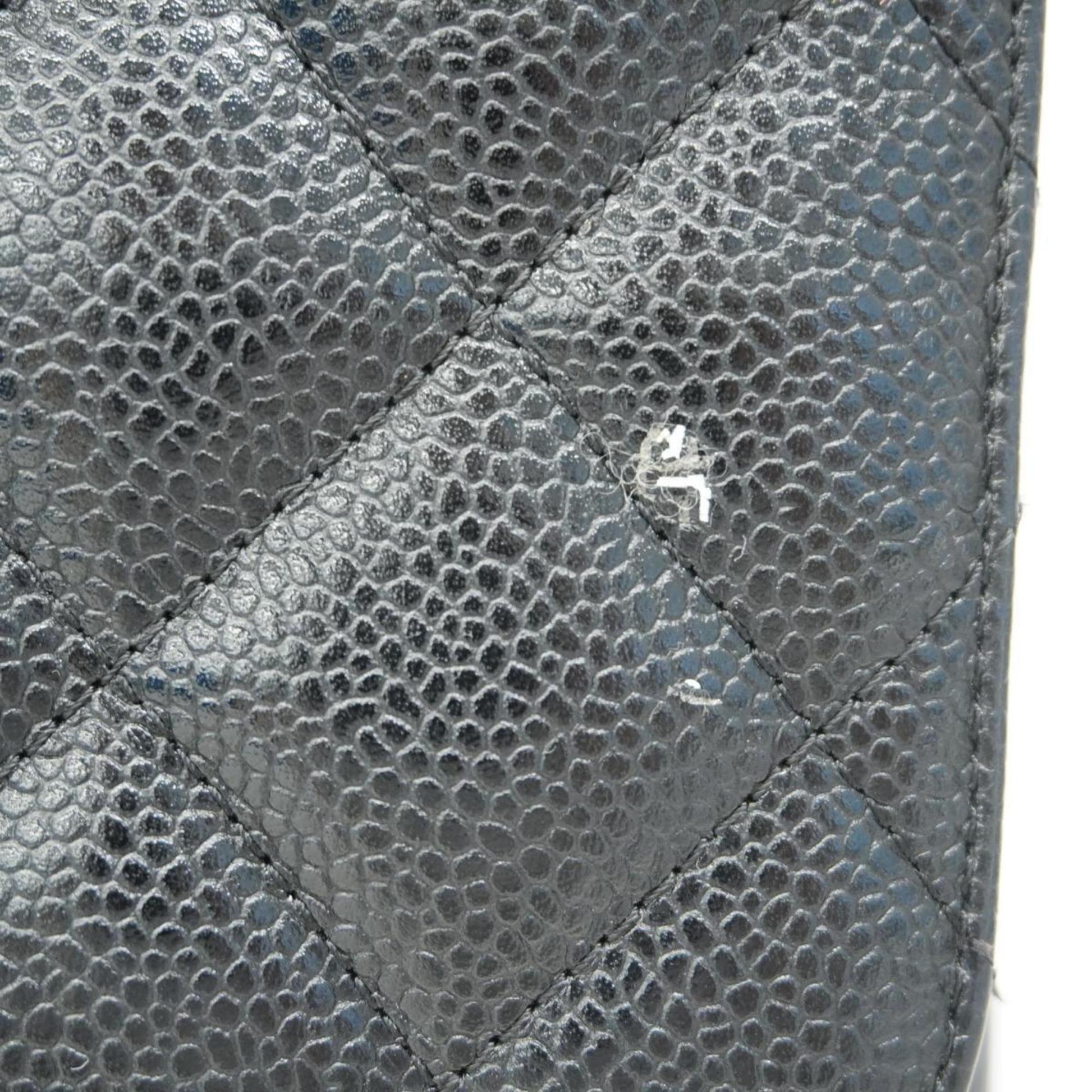 Chanel Shoulder Bag Matelasse W Flap Chain Caviar Skin Black Women's