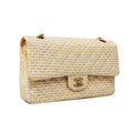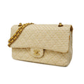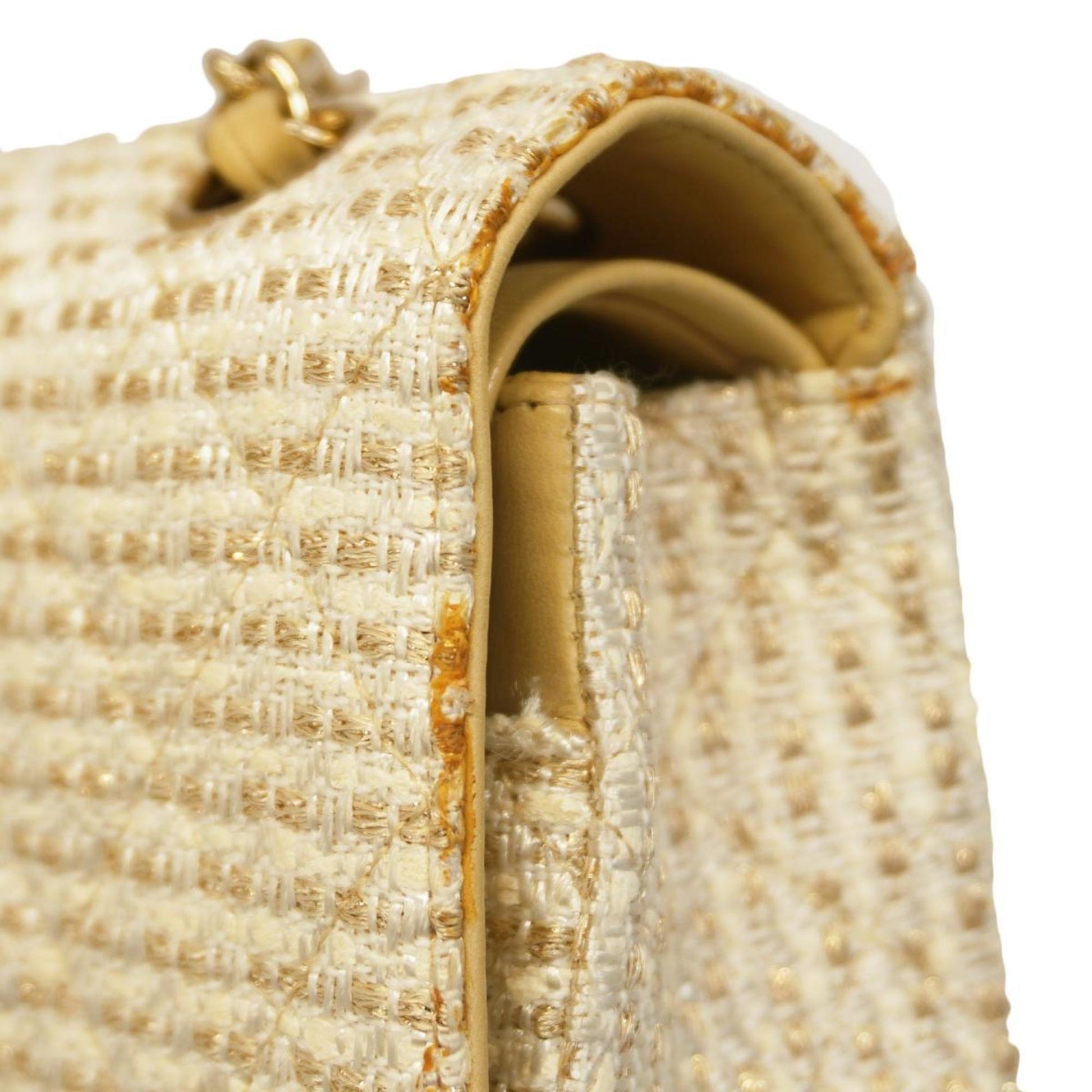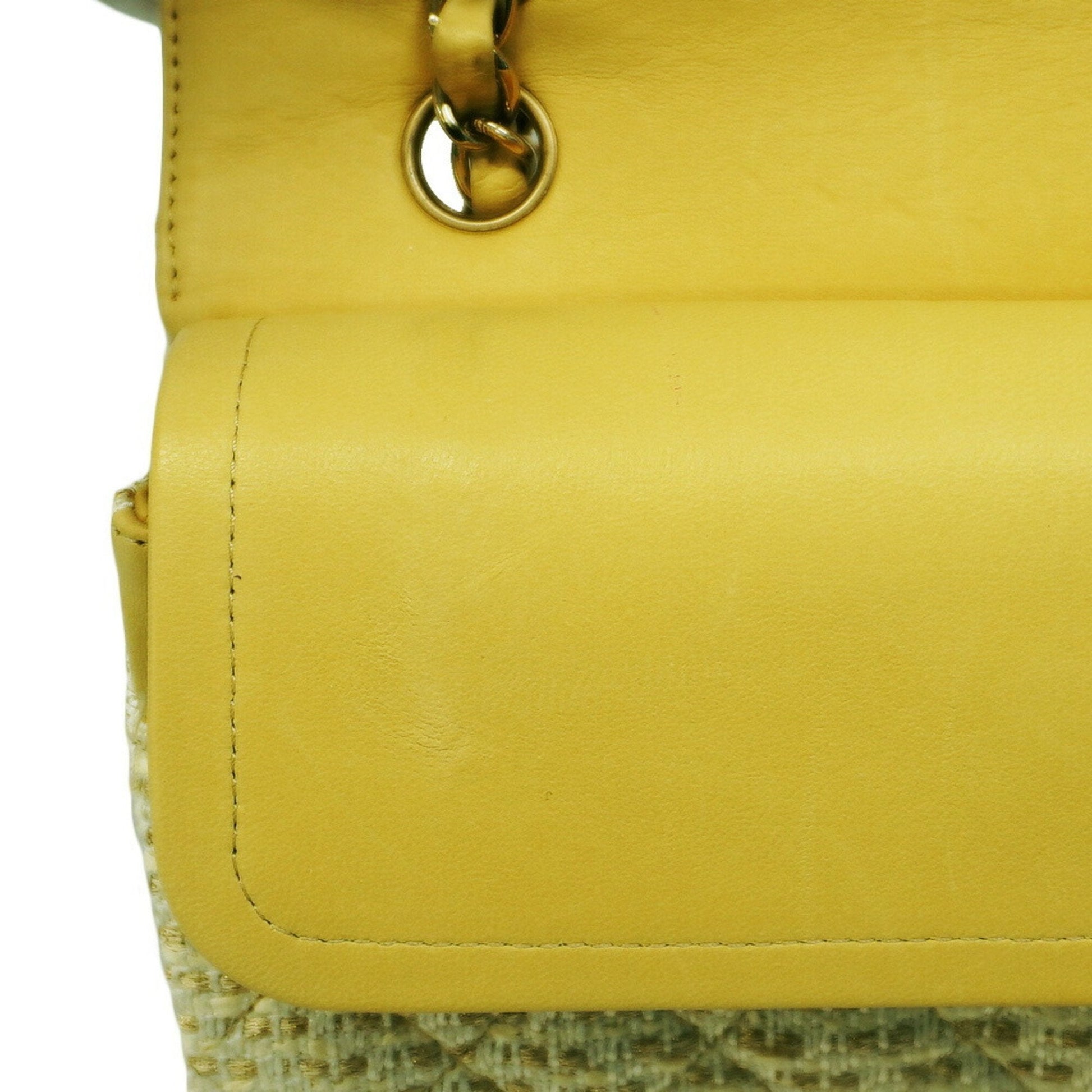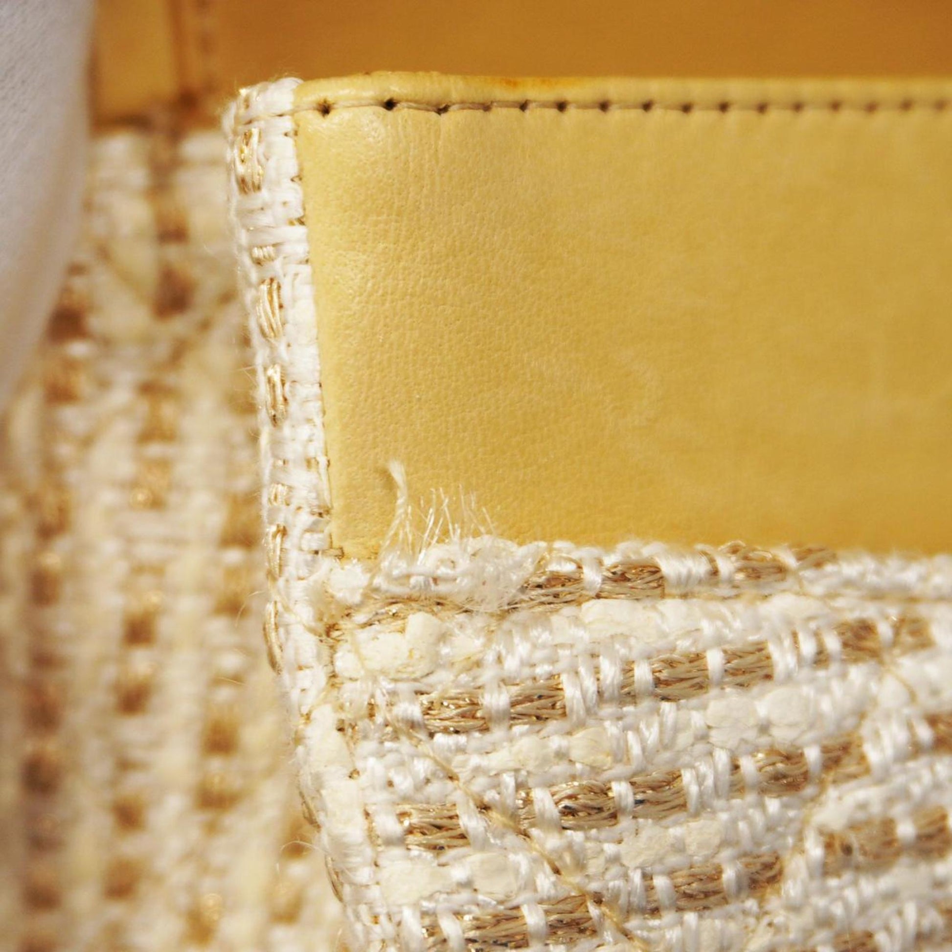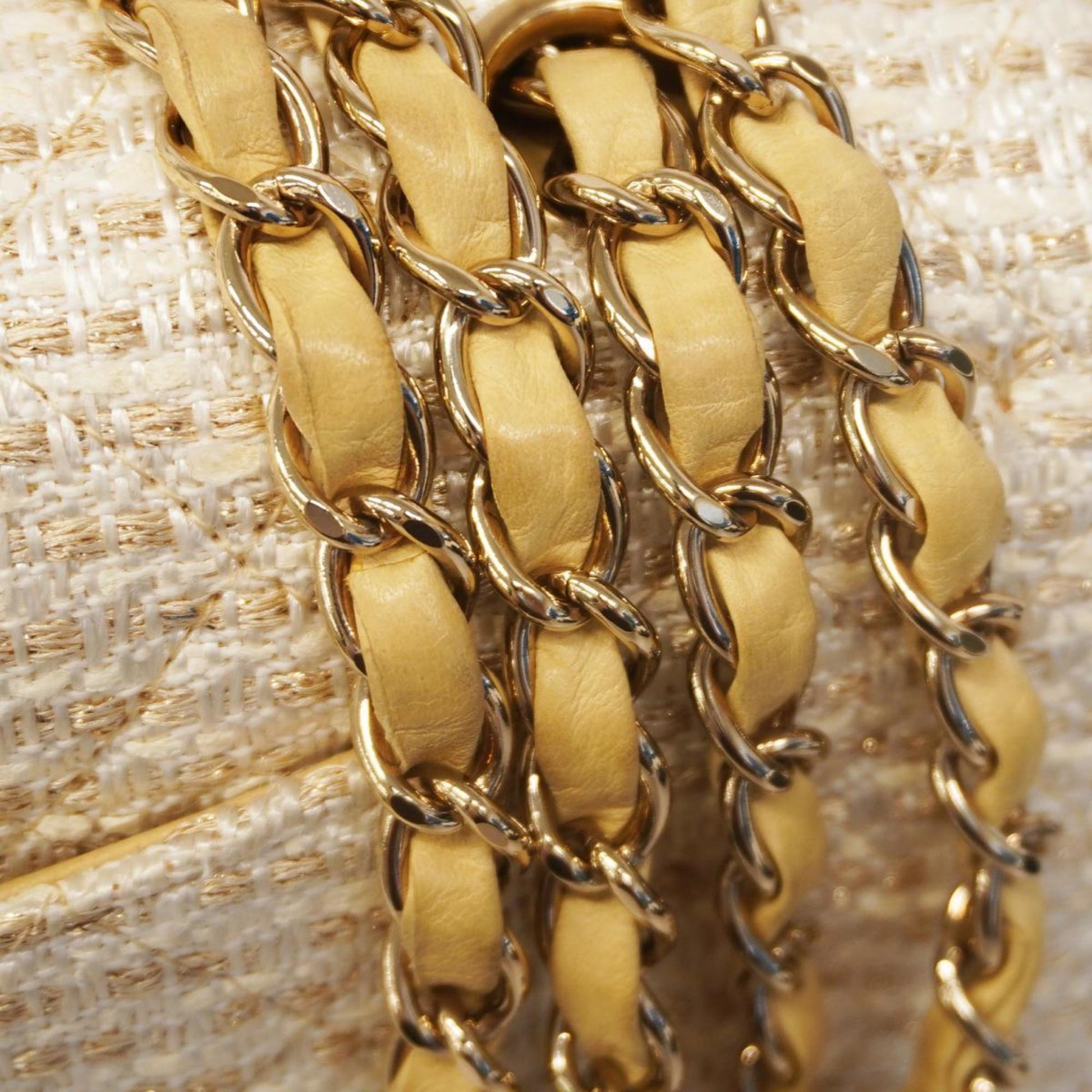 Chanel Shoulder Bag Matelasse W Flap Chain Tweed White Champagne Women's