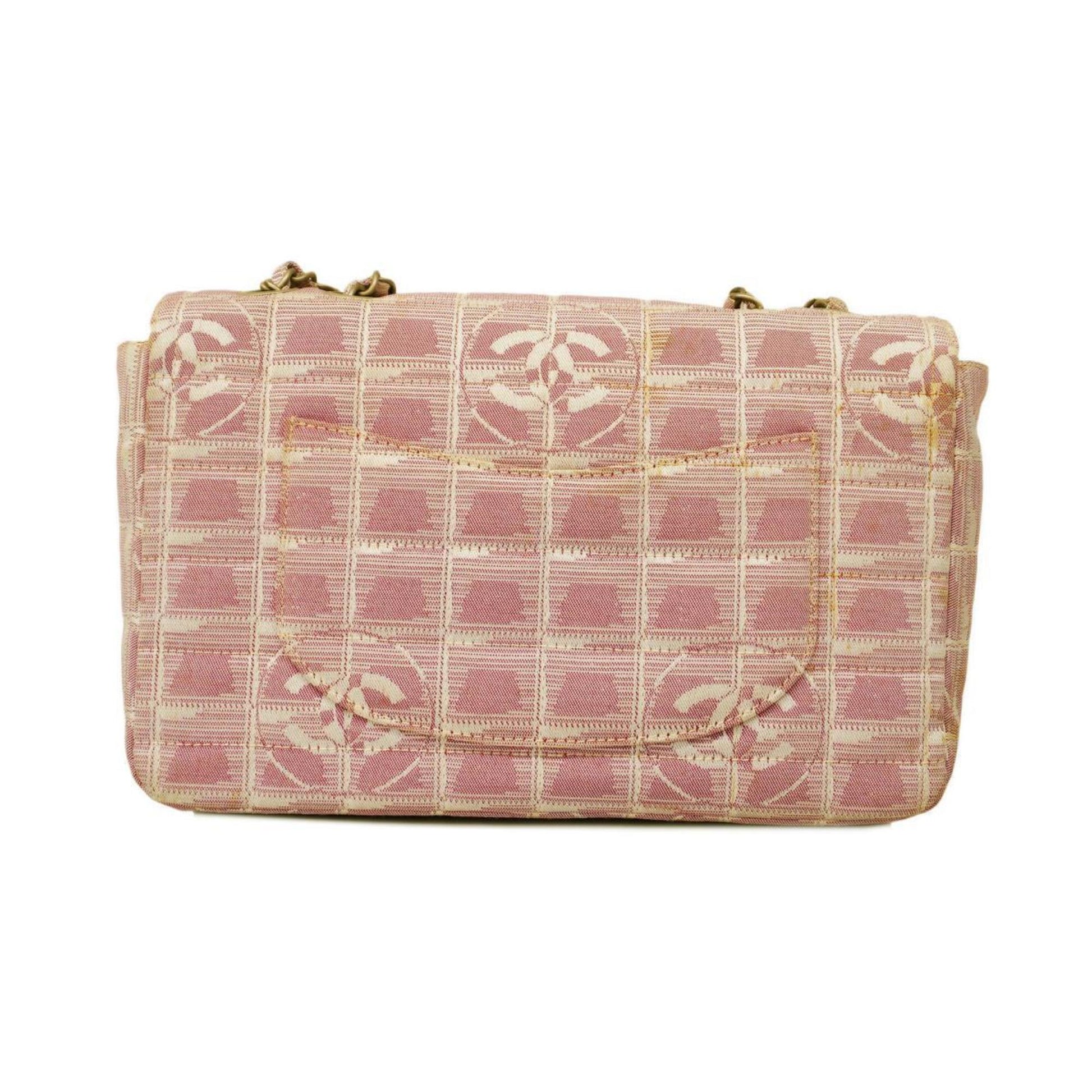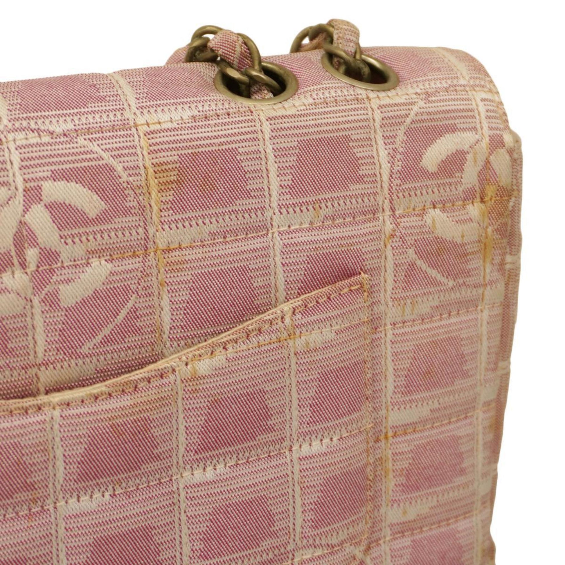 Chanel Shoulder Bag New Travel W Chain Nylon Pink Women's