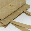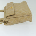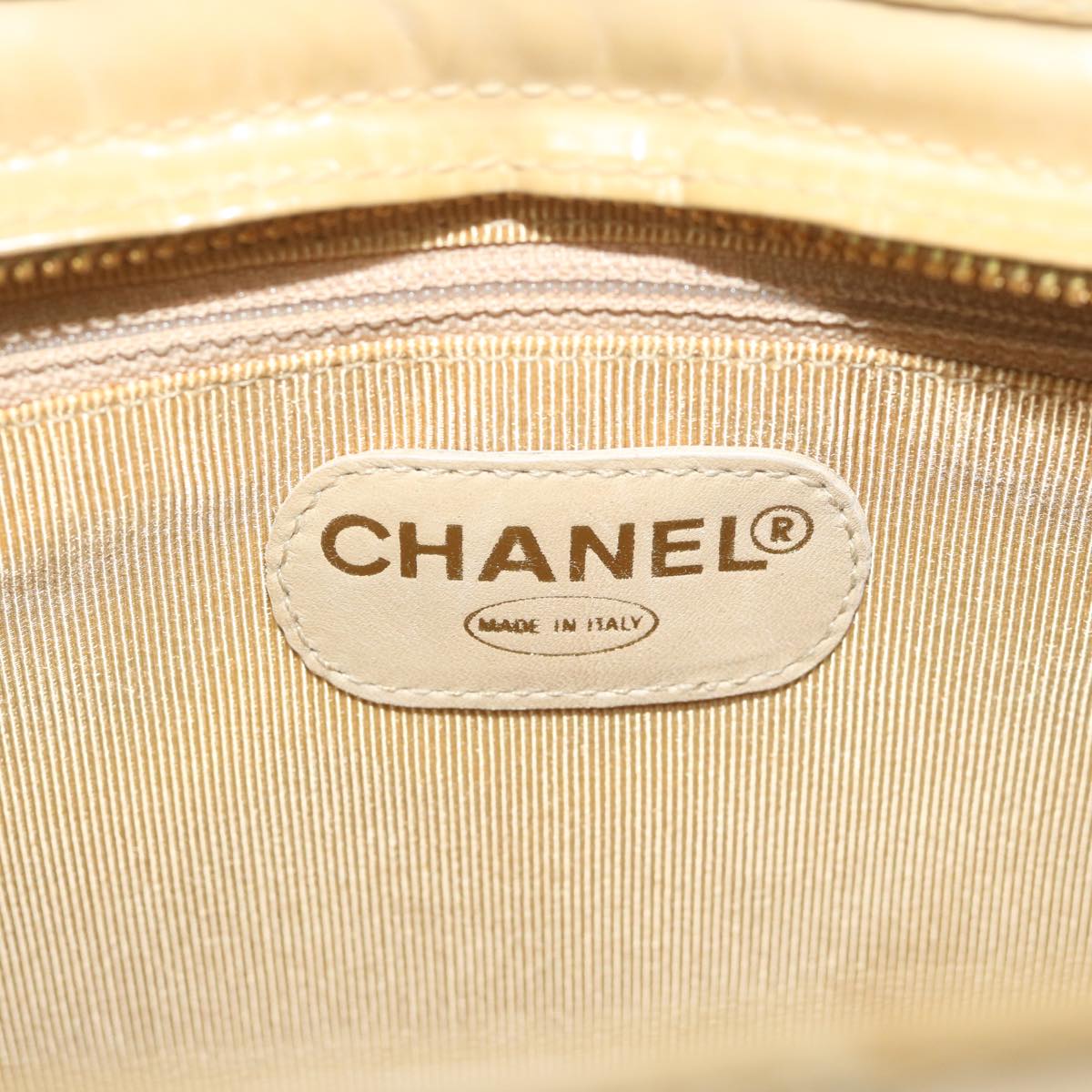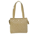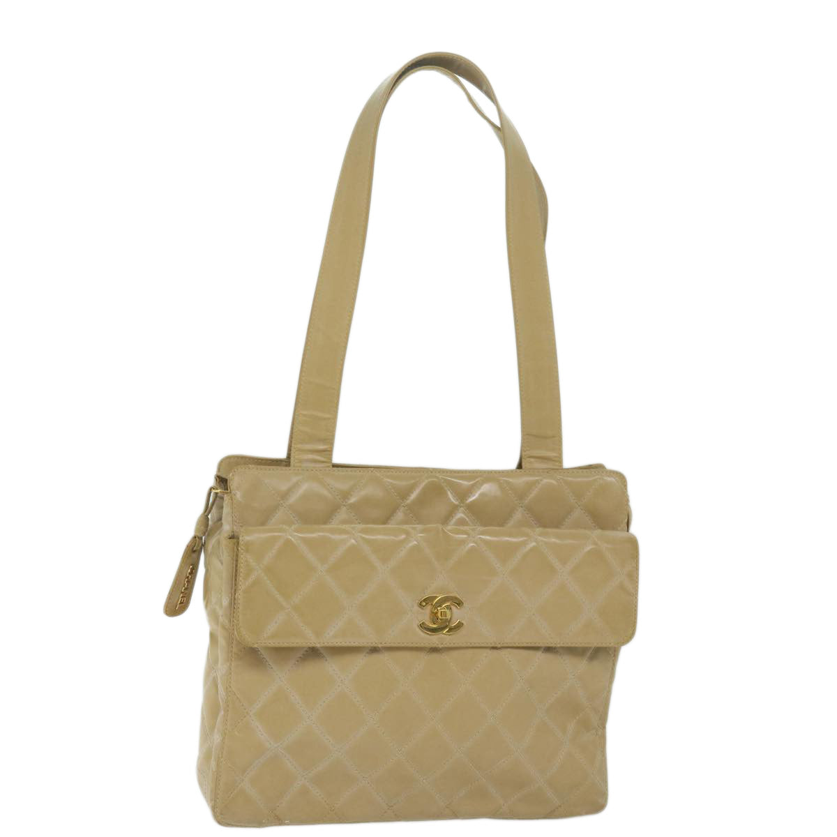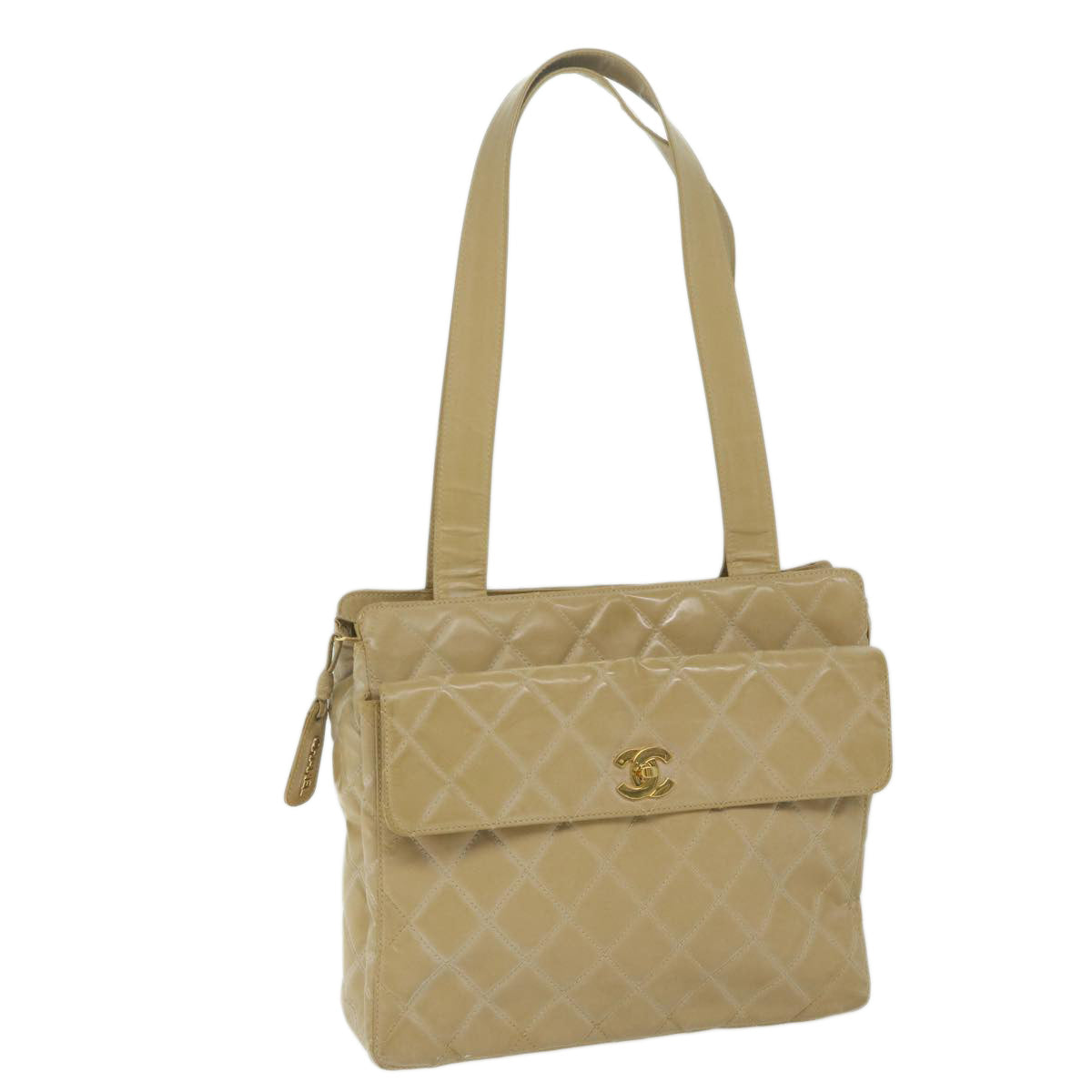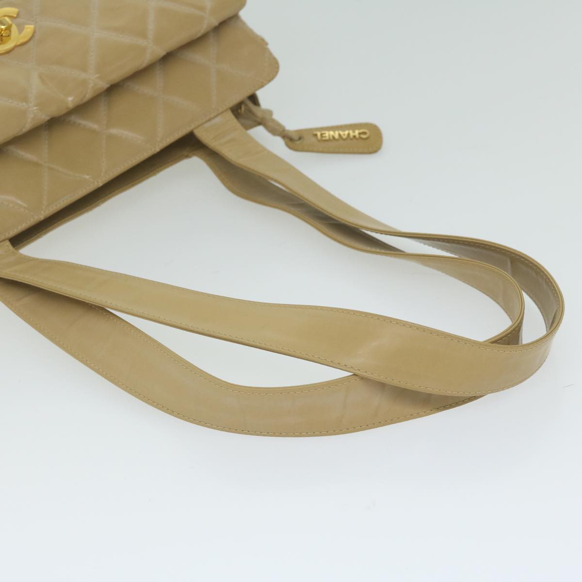 CHANEL Shoulder Bag Patent leather Beige CC Auth bs10487