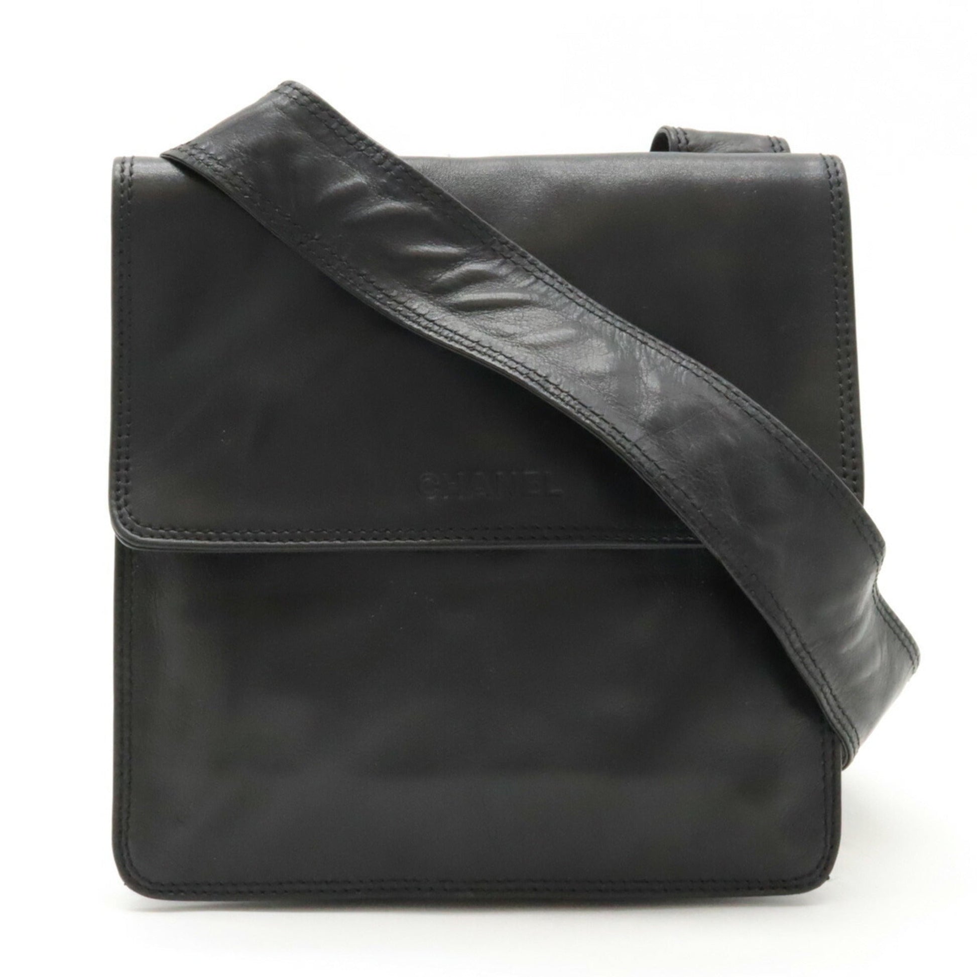 CHANEL Shoulder Bag Pochette Sacoche Leather Black