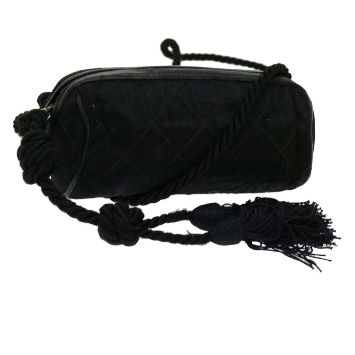CHANEL Shoulder Bag Satin Black CC Auth bs10925