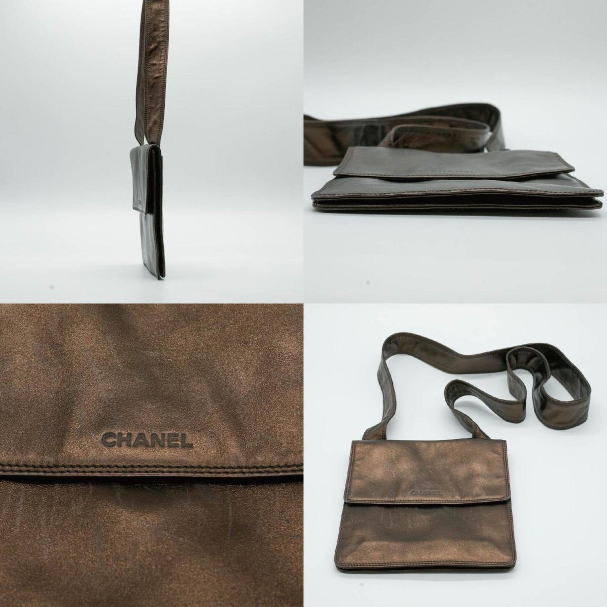 CHANEL Shoulder Bag Square Sacoche Lambskin Brown Gold Men's Women's P16200 PD23