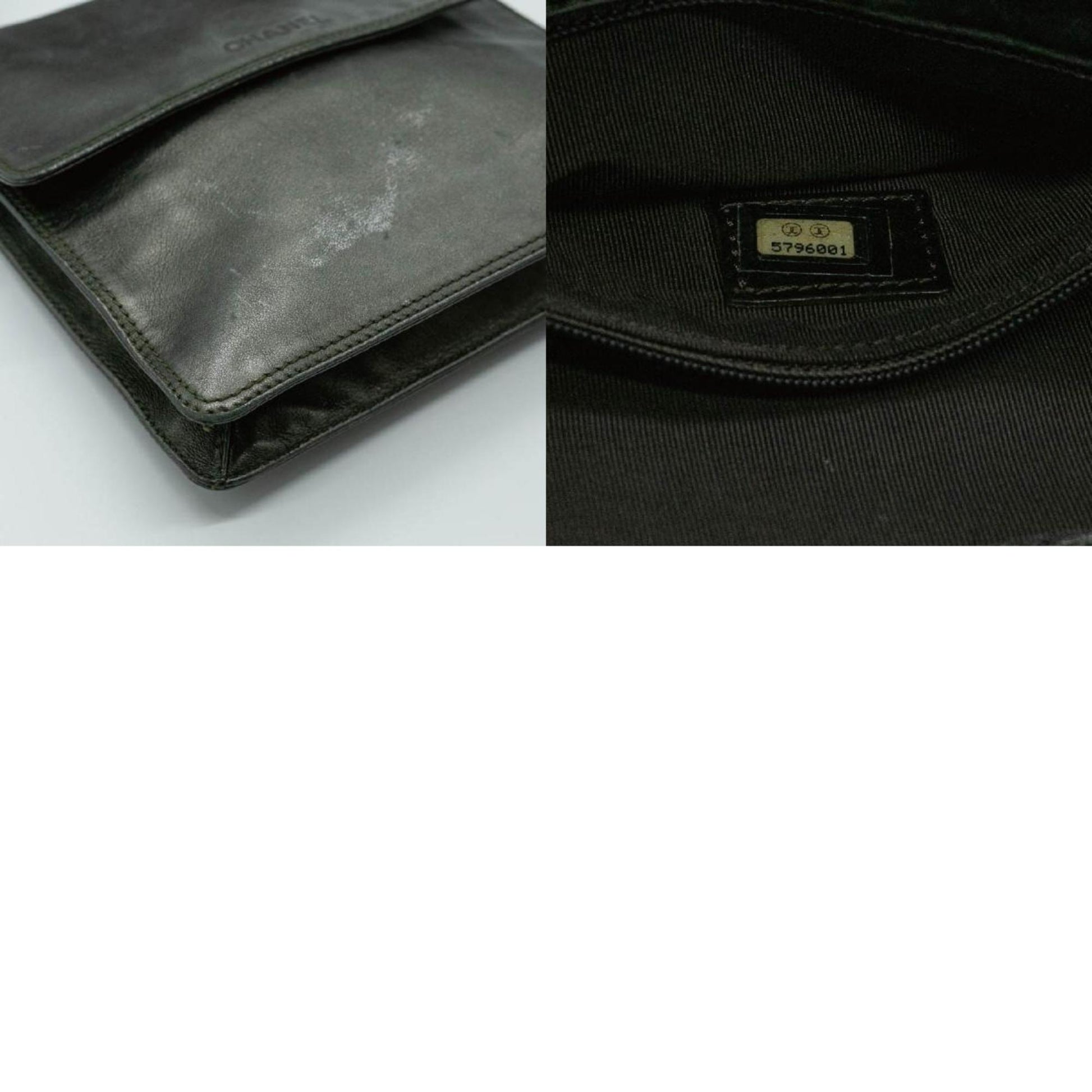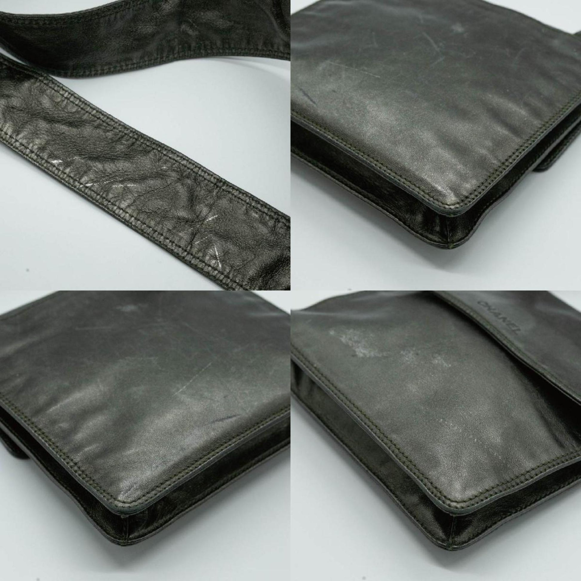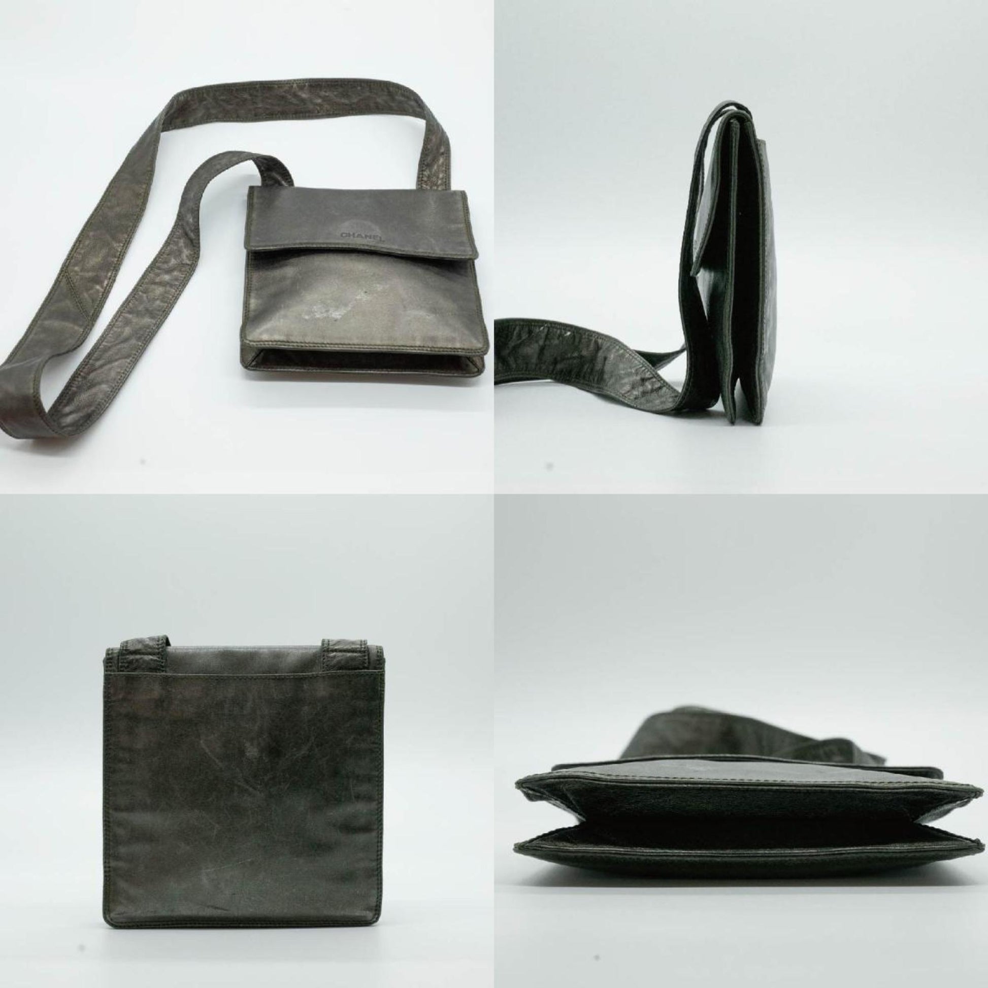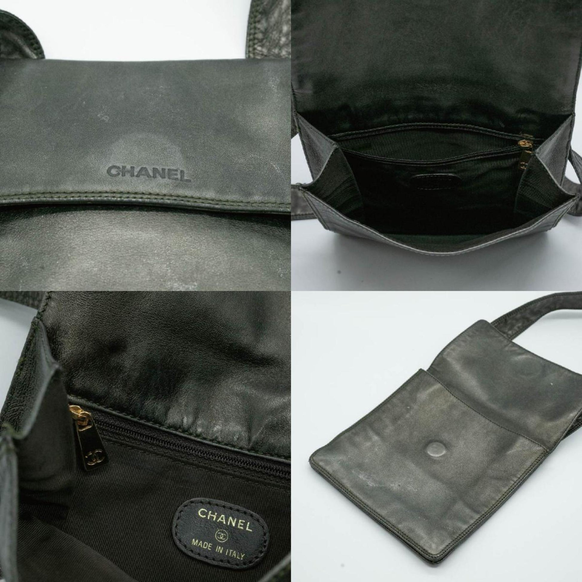 CHANEL Shoulder Bag Square Sacoche Lambskin Khaki Gold Men's Women's P16200 PD9