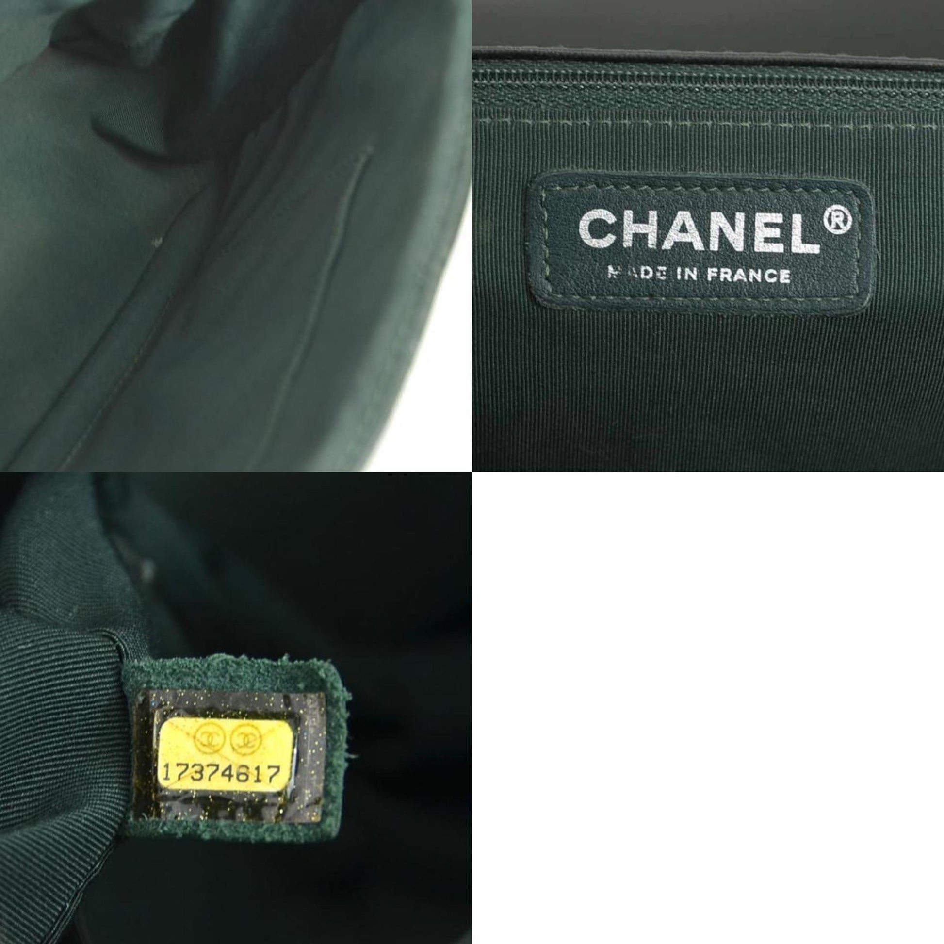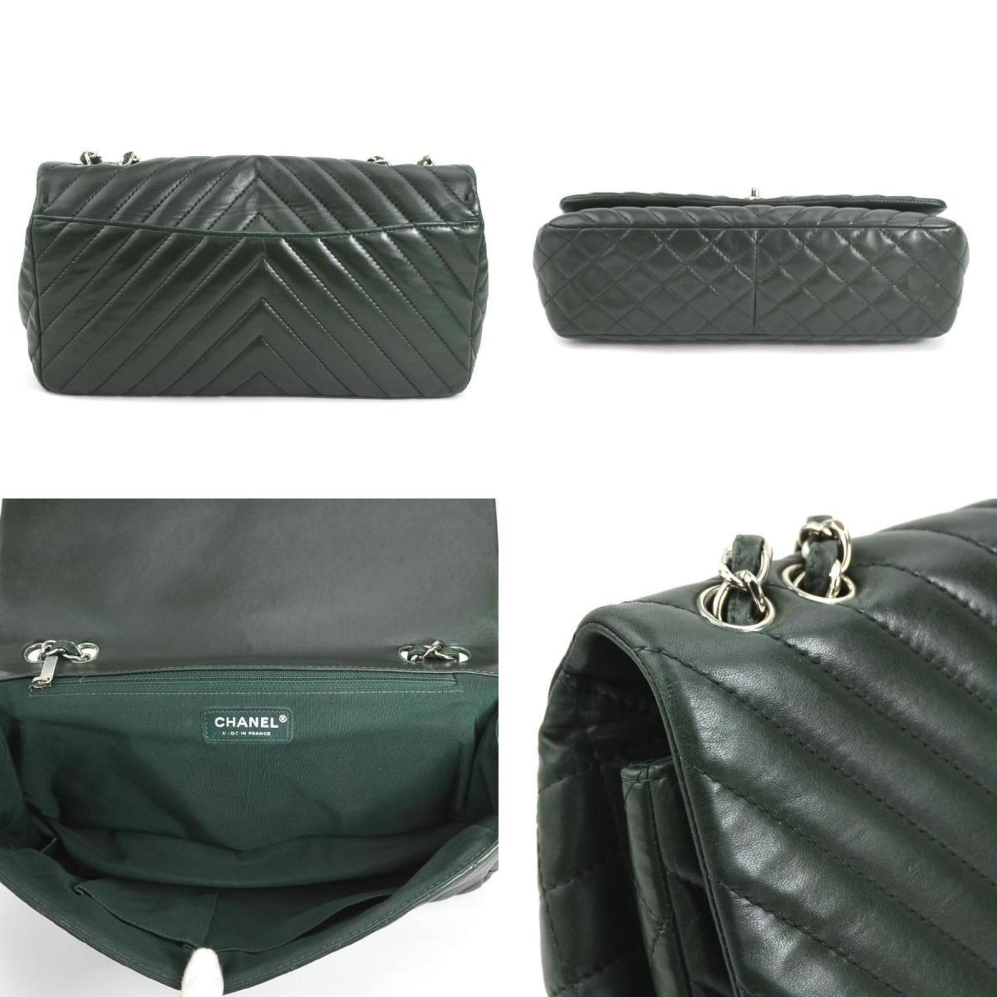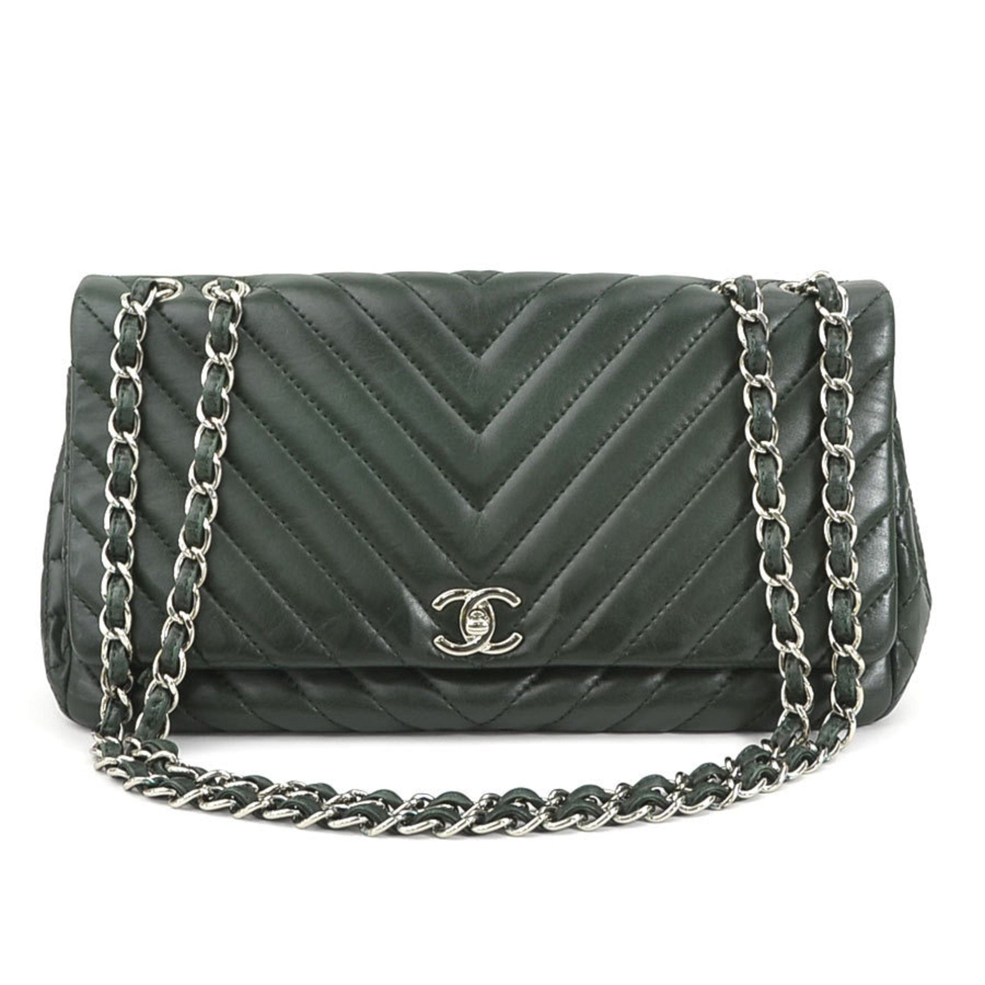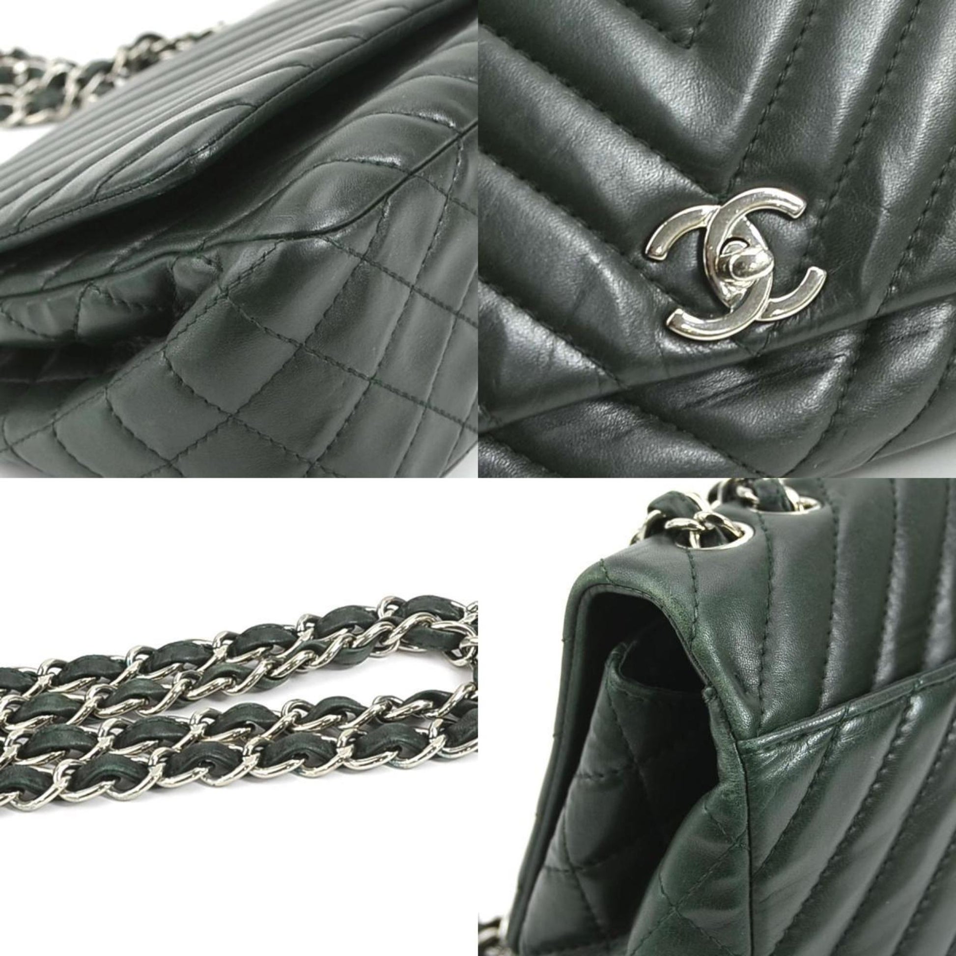 CHANEL Shoulder Bag V Stitch x Matelasse Leather Dark Green Silver Women's e58881a