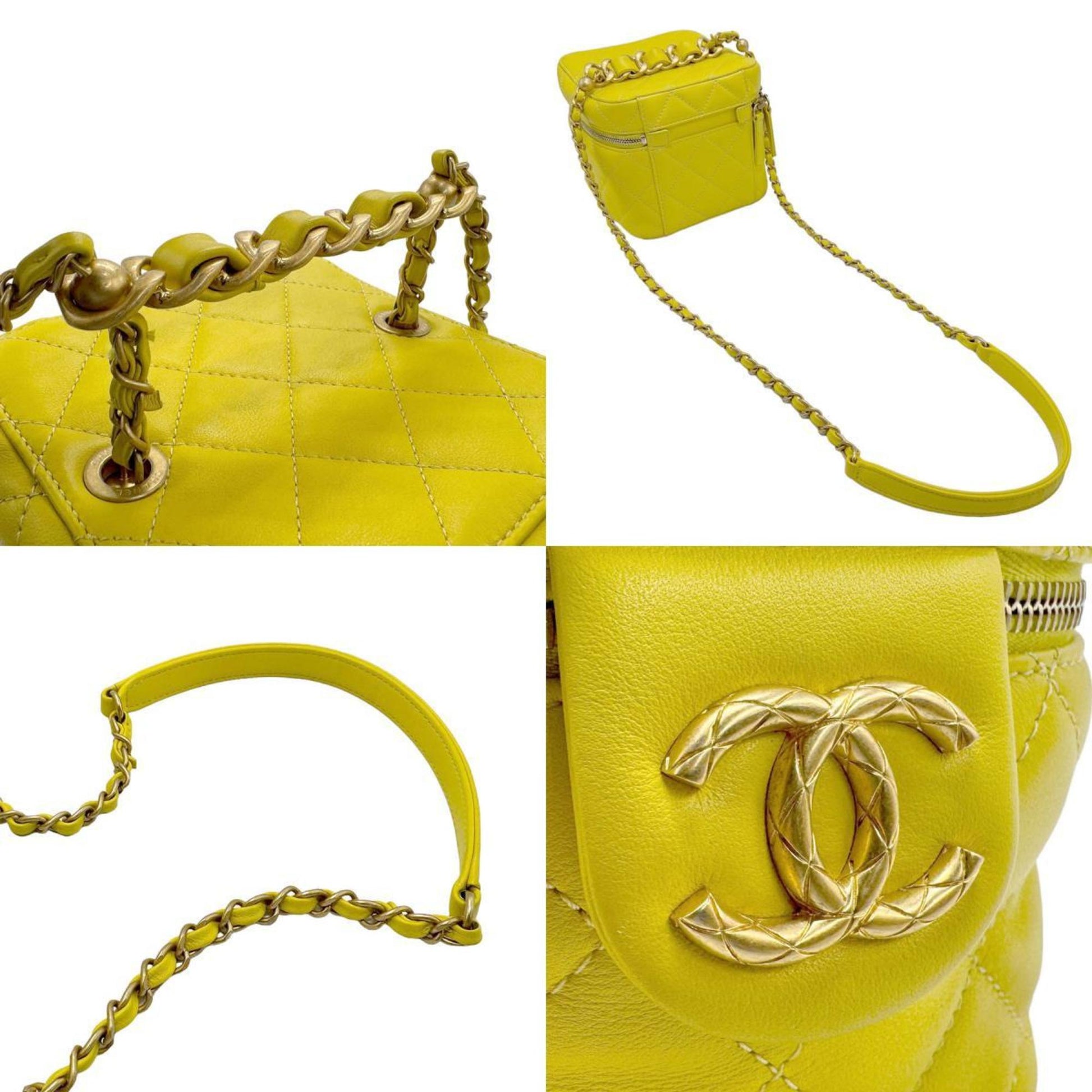 CHANEL Shoulder Bag Vanity Matelasse Leather Yellow Gold Women's z1754