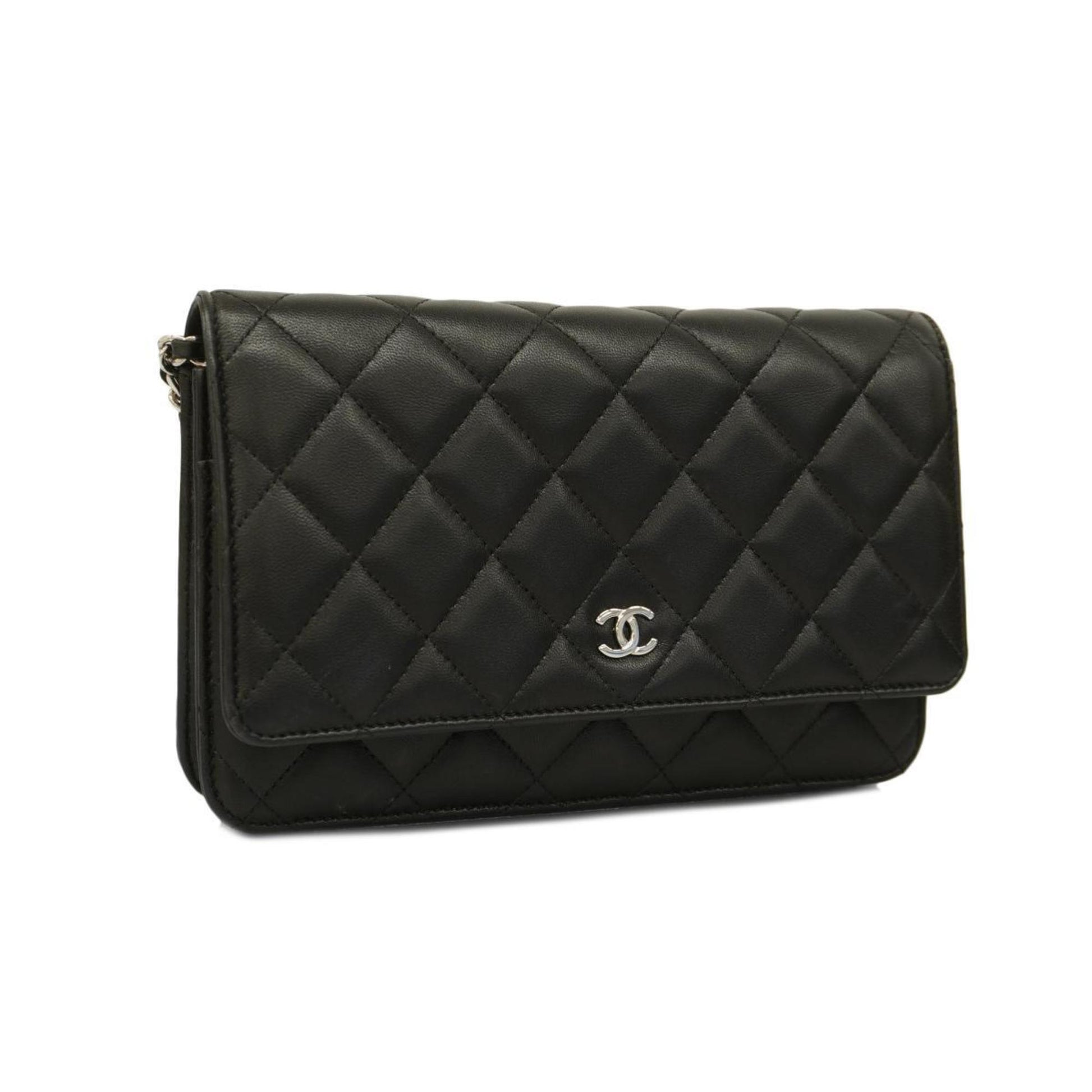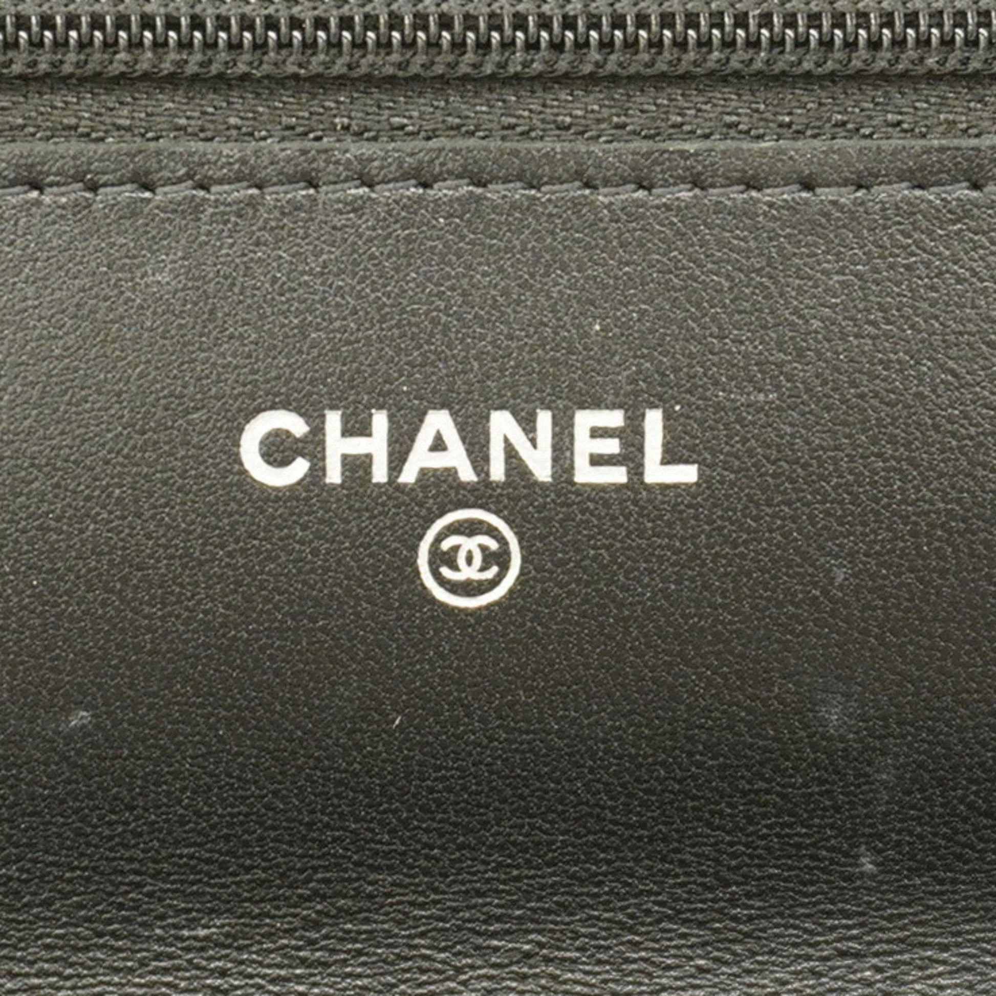 Chanel Shoulder Wallet Matelasse Chain Lambskin Black Women's