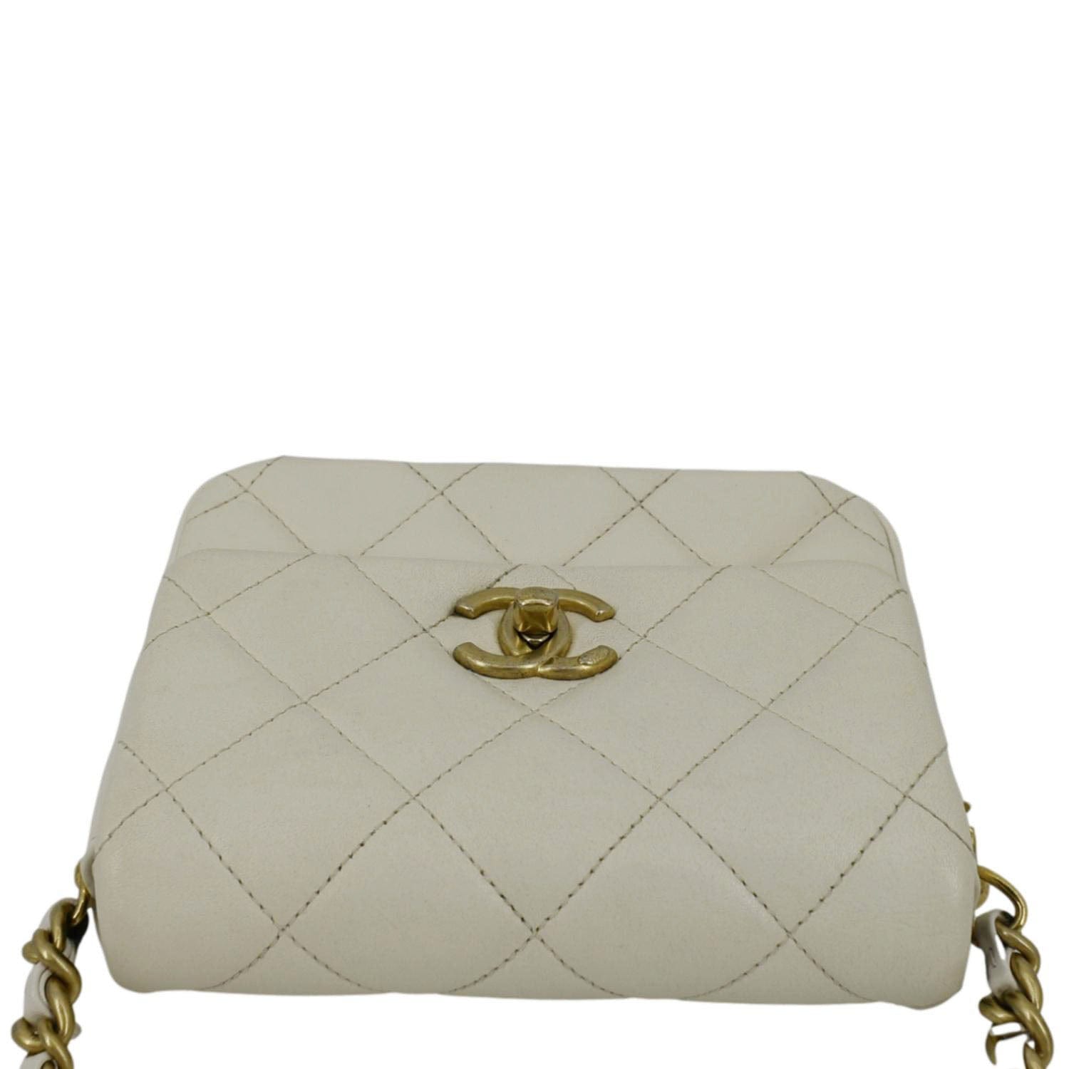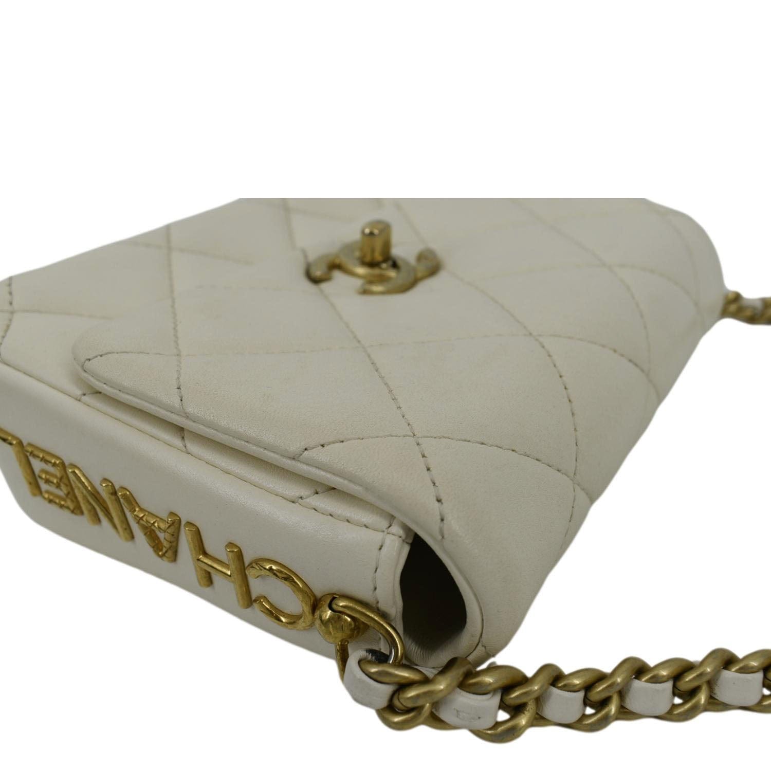 CHANEL Side Note Flap Quilted Leather Crossbody Bag Off White