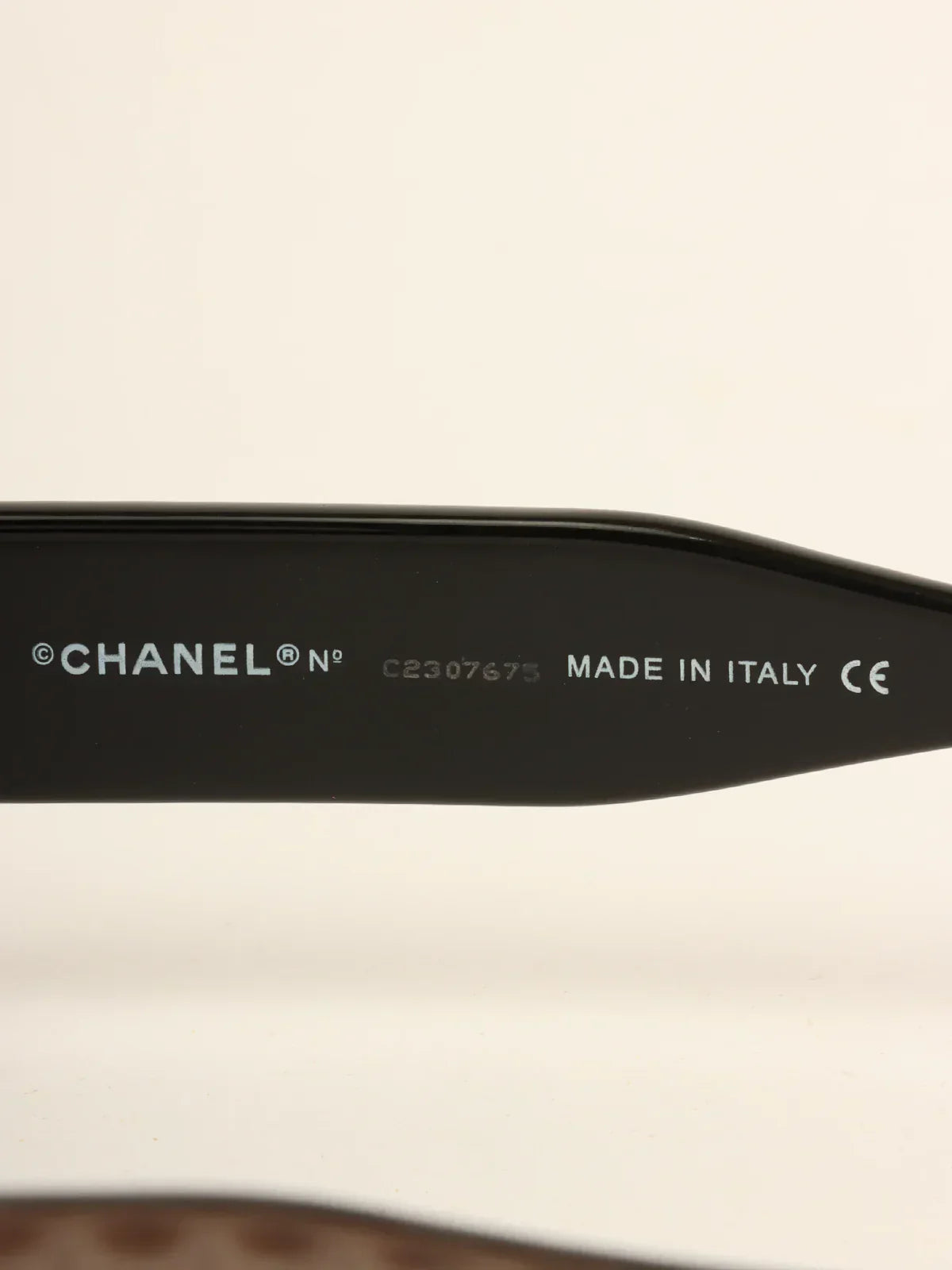 CHANEL Side Square Cc Mark Plate Sunglasses Metallic Brown