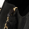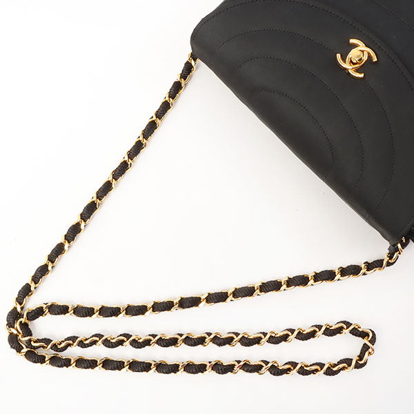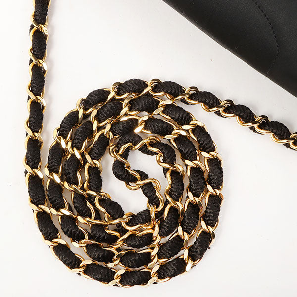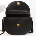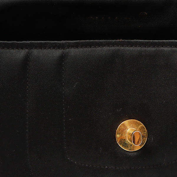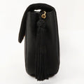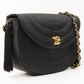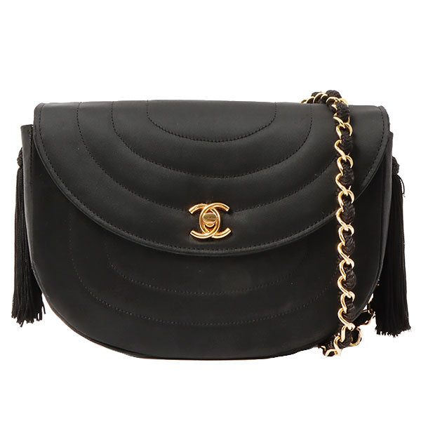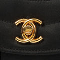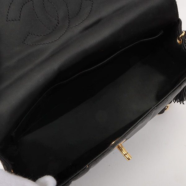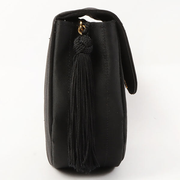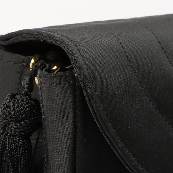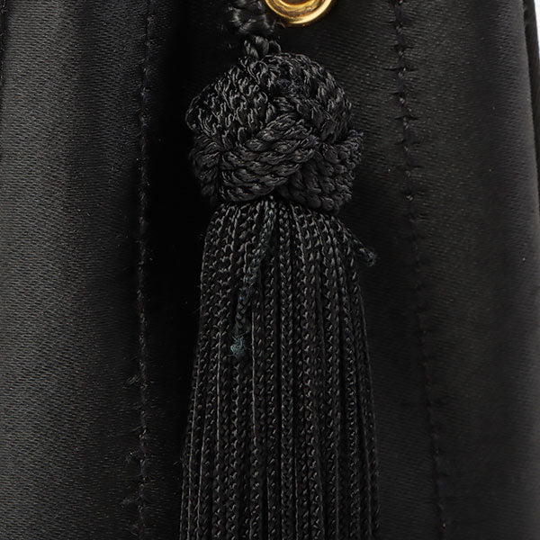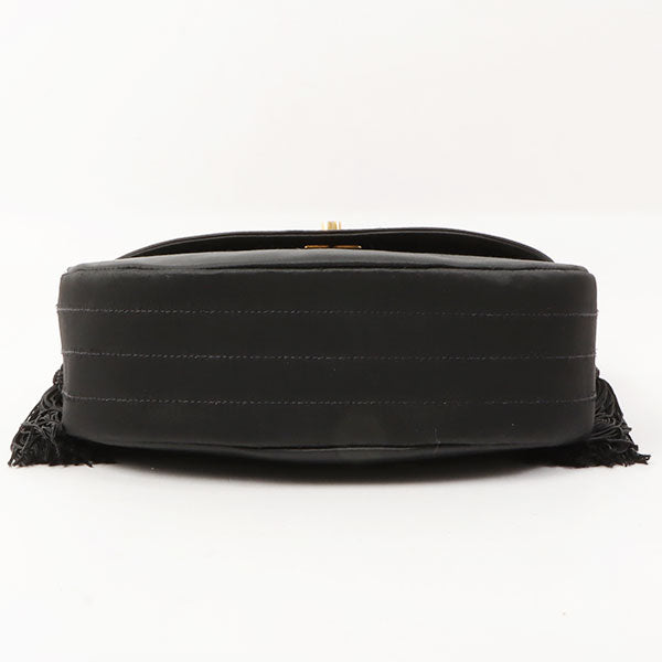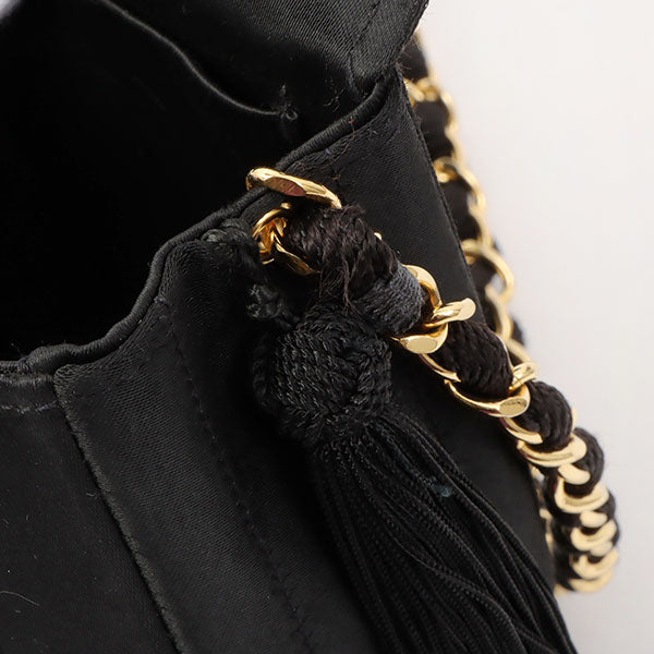Chanel Silk Satin Round Flap Turn-Lock Fringe Chain Bag Black