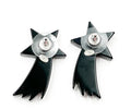 Chanel Silver CC Black Purple Glitter Shooting Star Piercing Earrings.