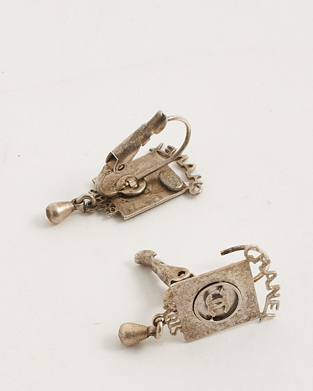 Chanel Silver CC Logo Lobster Clasp Earrings