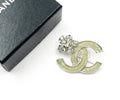 Chanel Silver CC Mint Enamel Corner Crystal Flower Brooch.