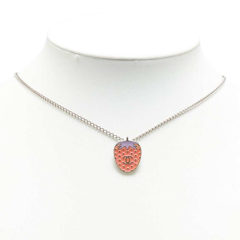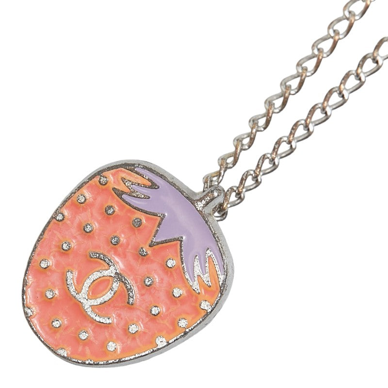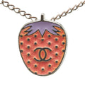 Chanel Silver CC Strawberry Pendant Necklace Metal Necklace in Good condition
