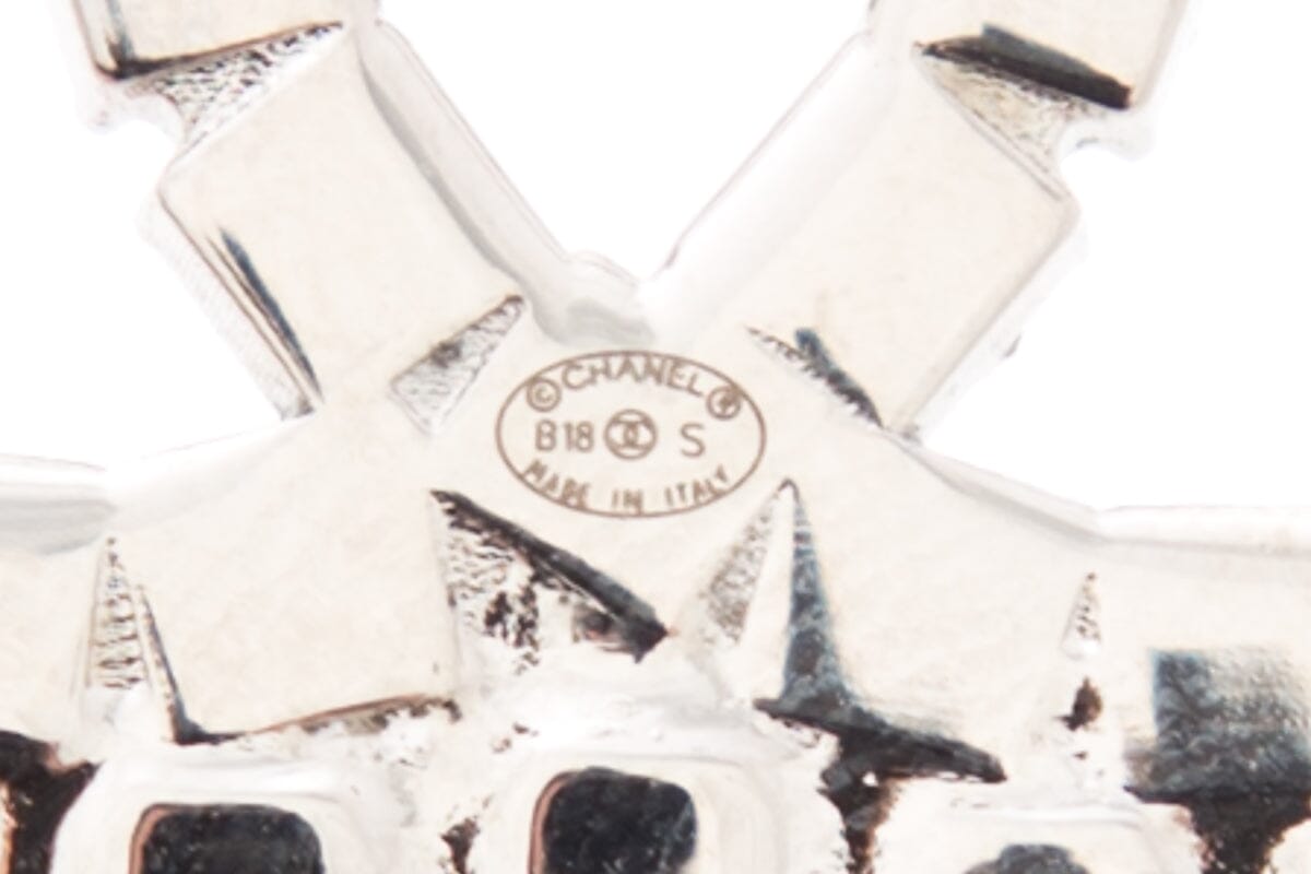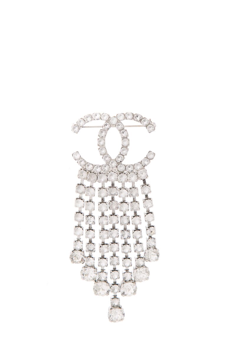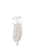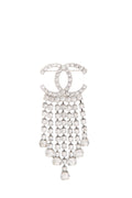 Chanel Silver Crystal Logo Brooch with Crystal Waterfall. This item is new with tags.