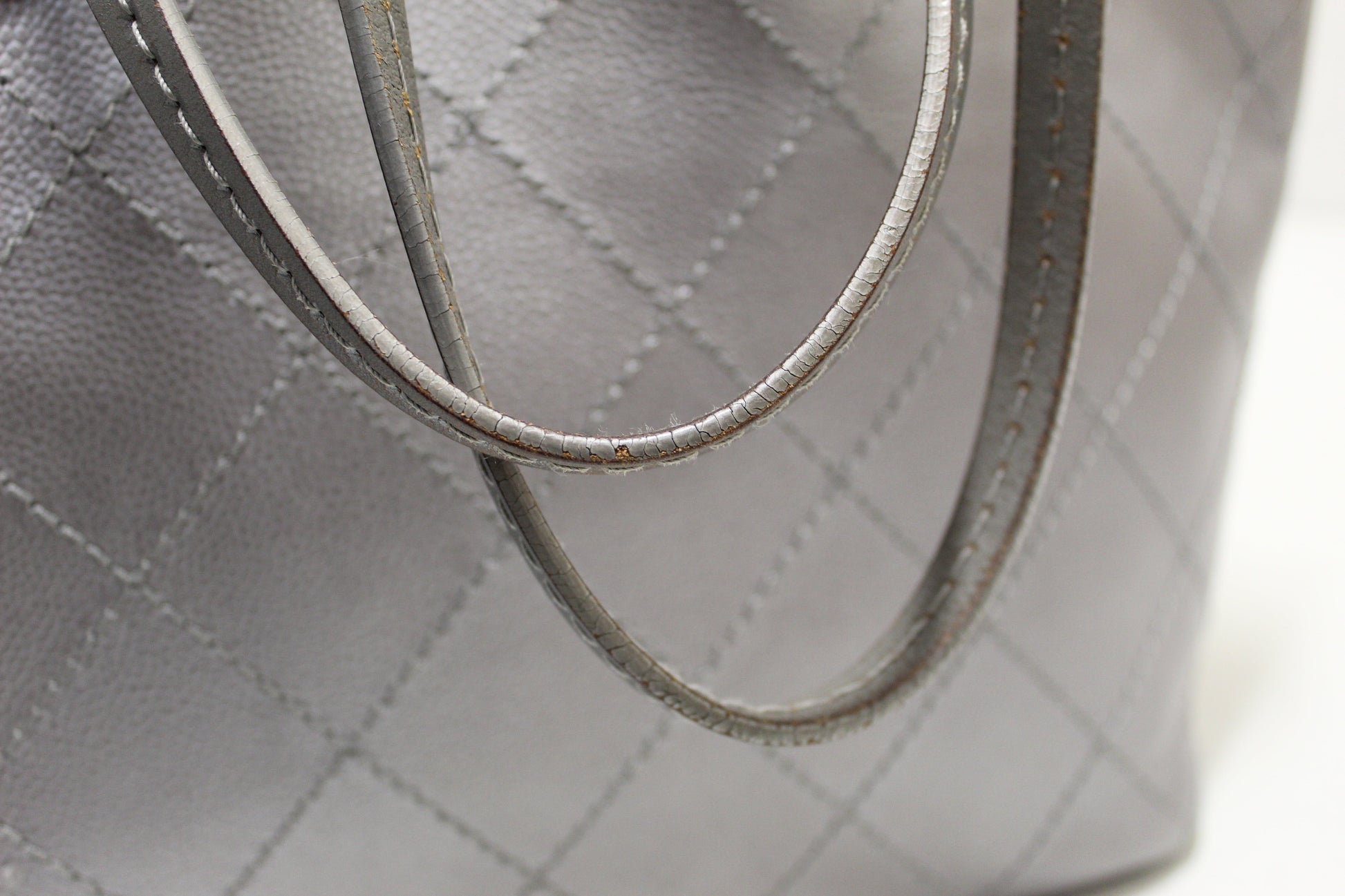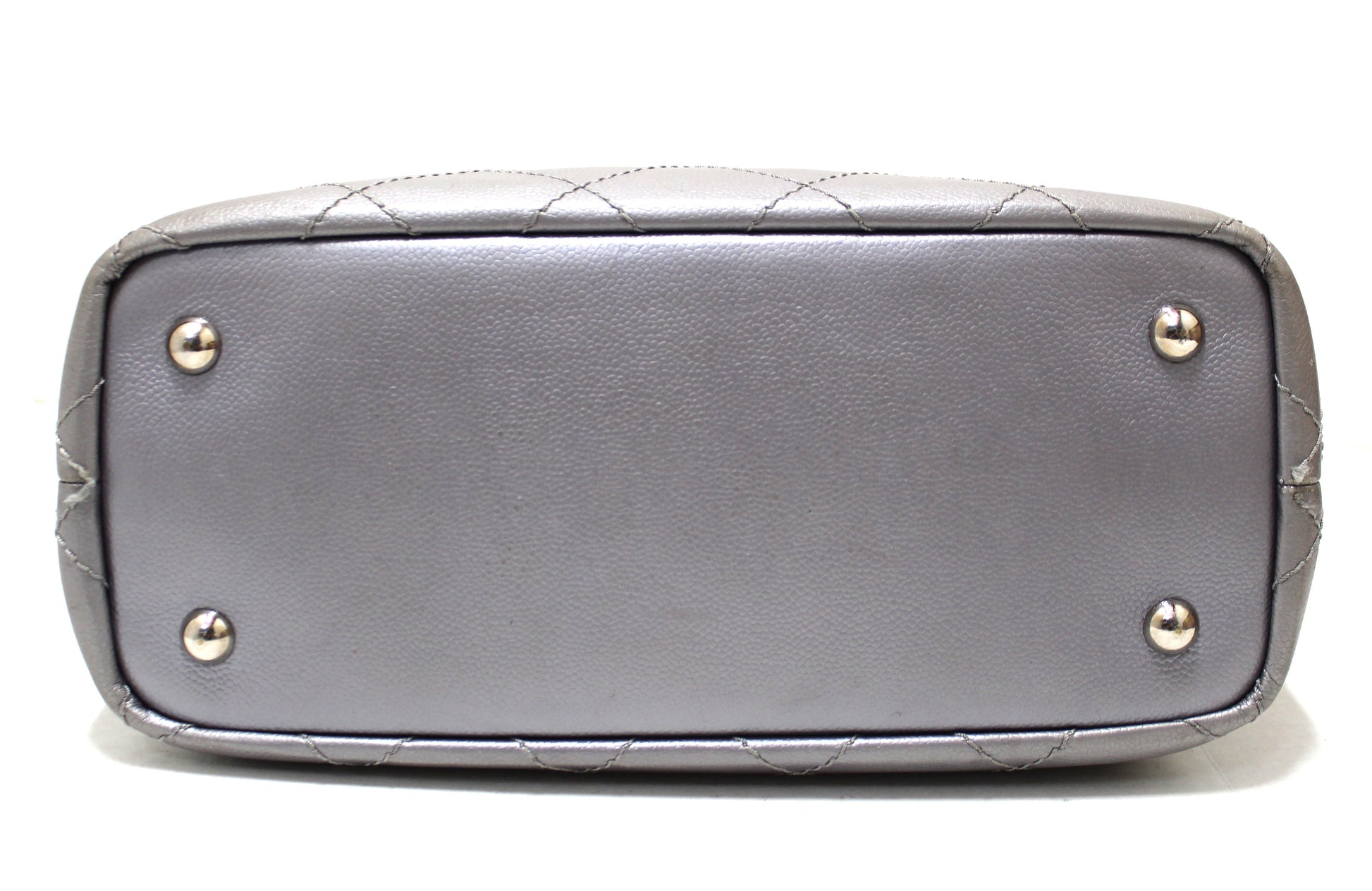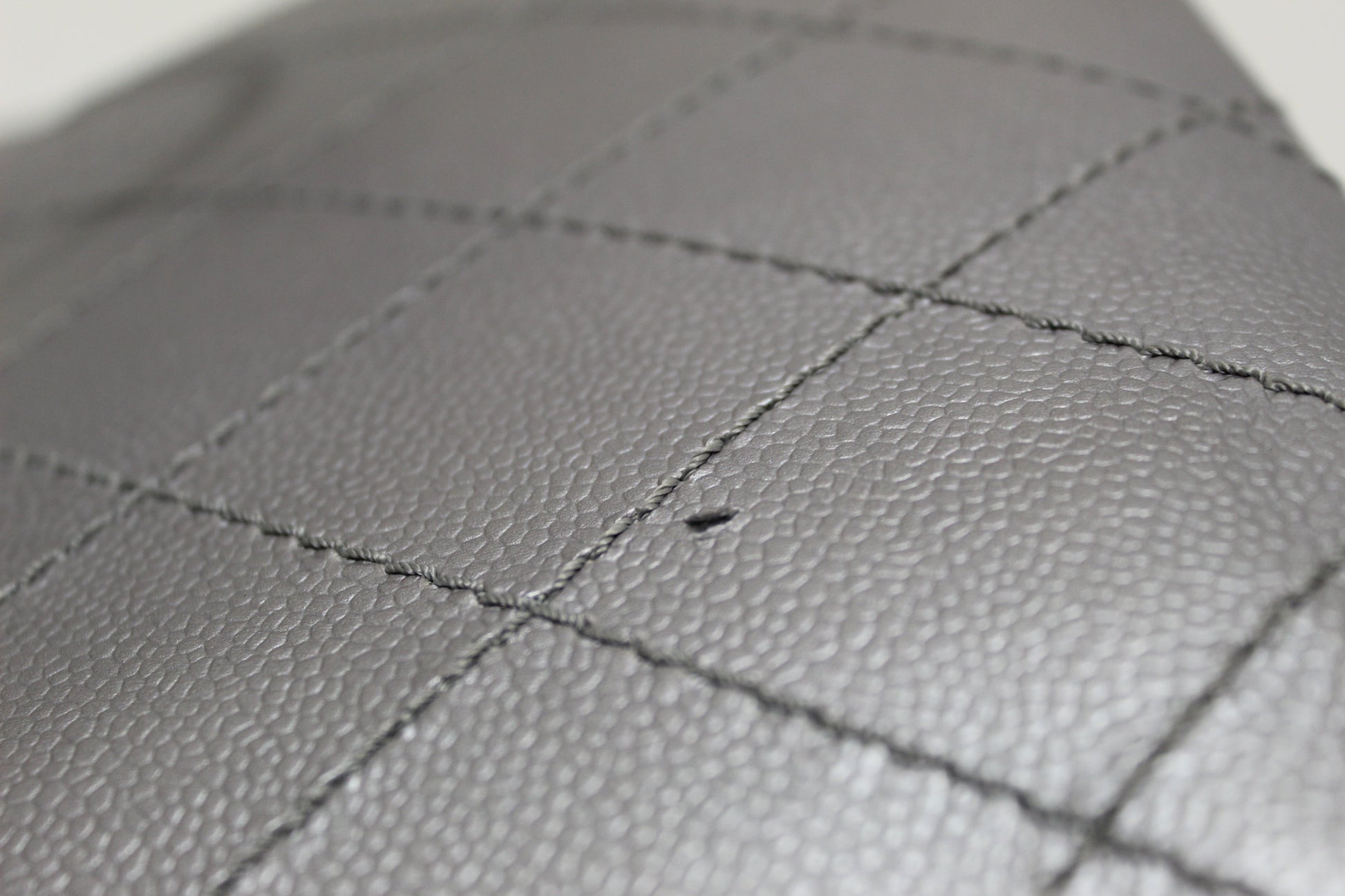 Metallic grey quilt cross-stitched caviar leather
