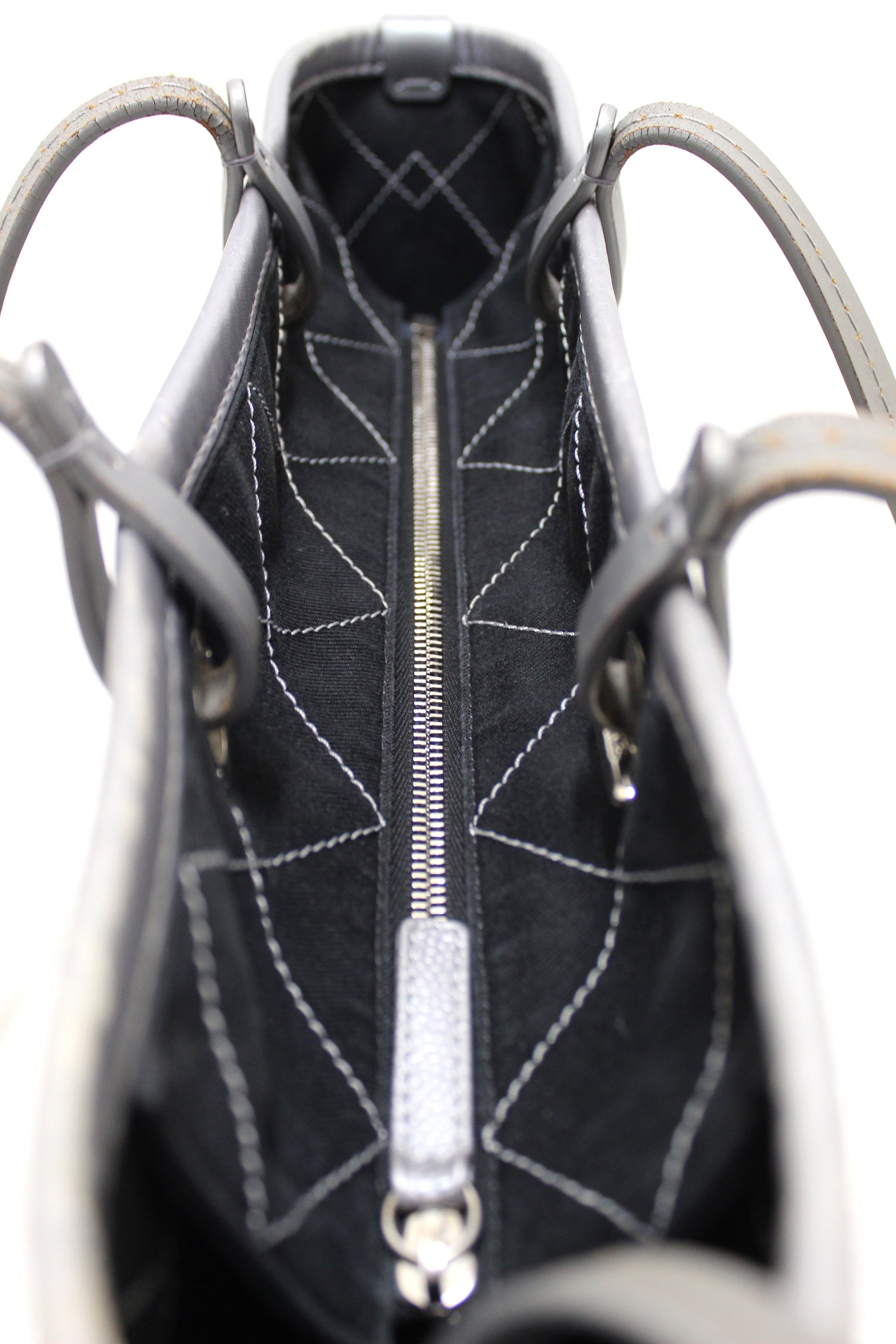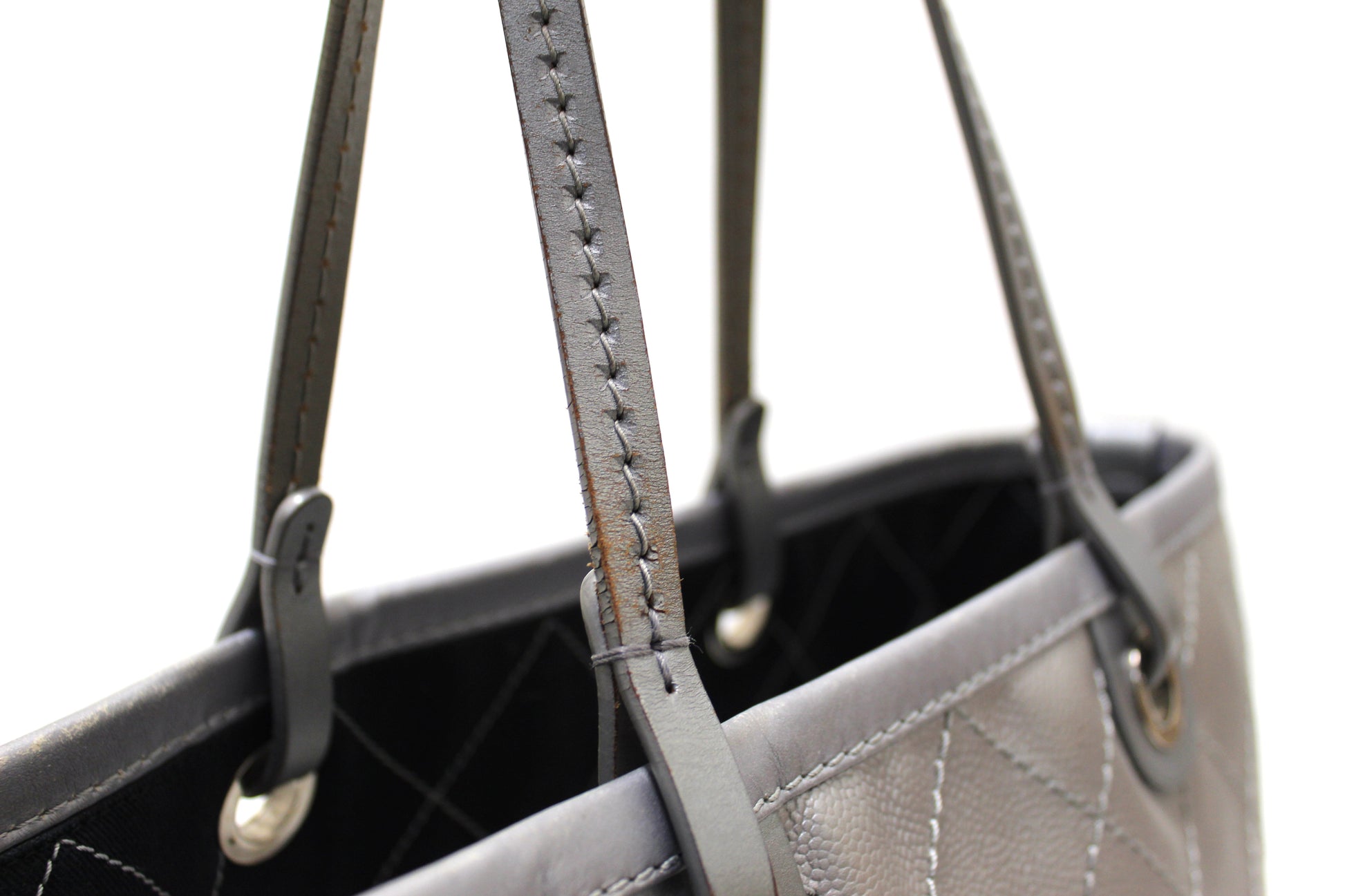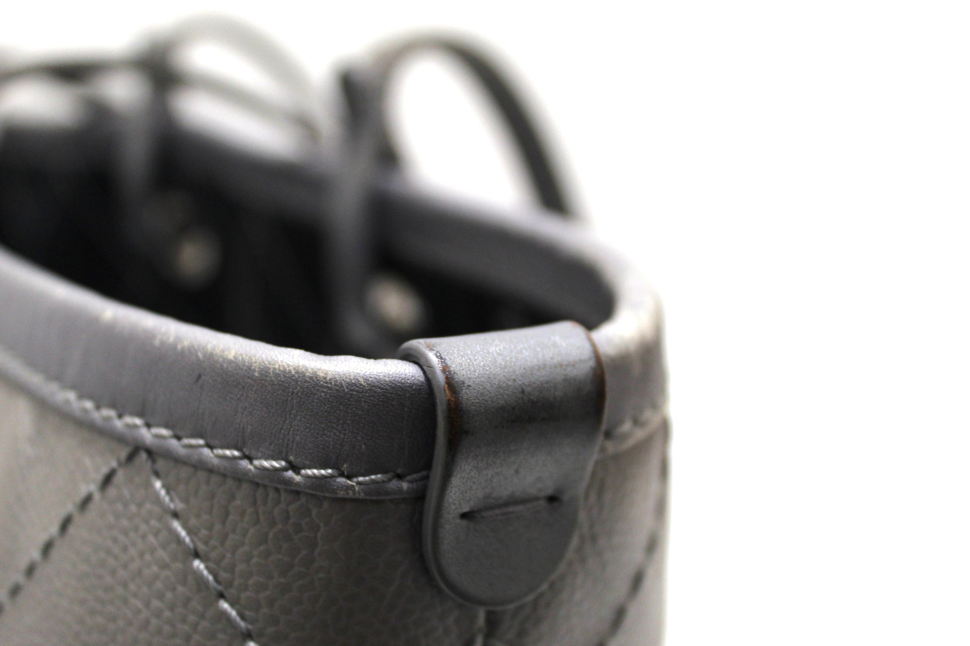 Metallic grey quilt cross-stitched caviar leather