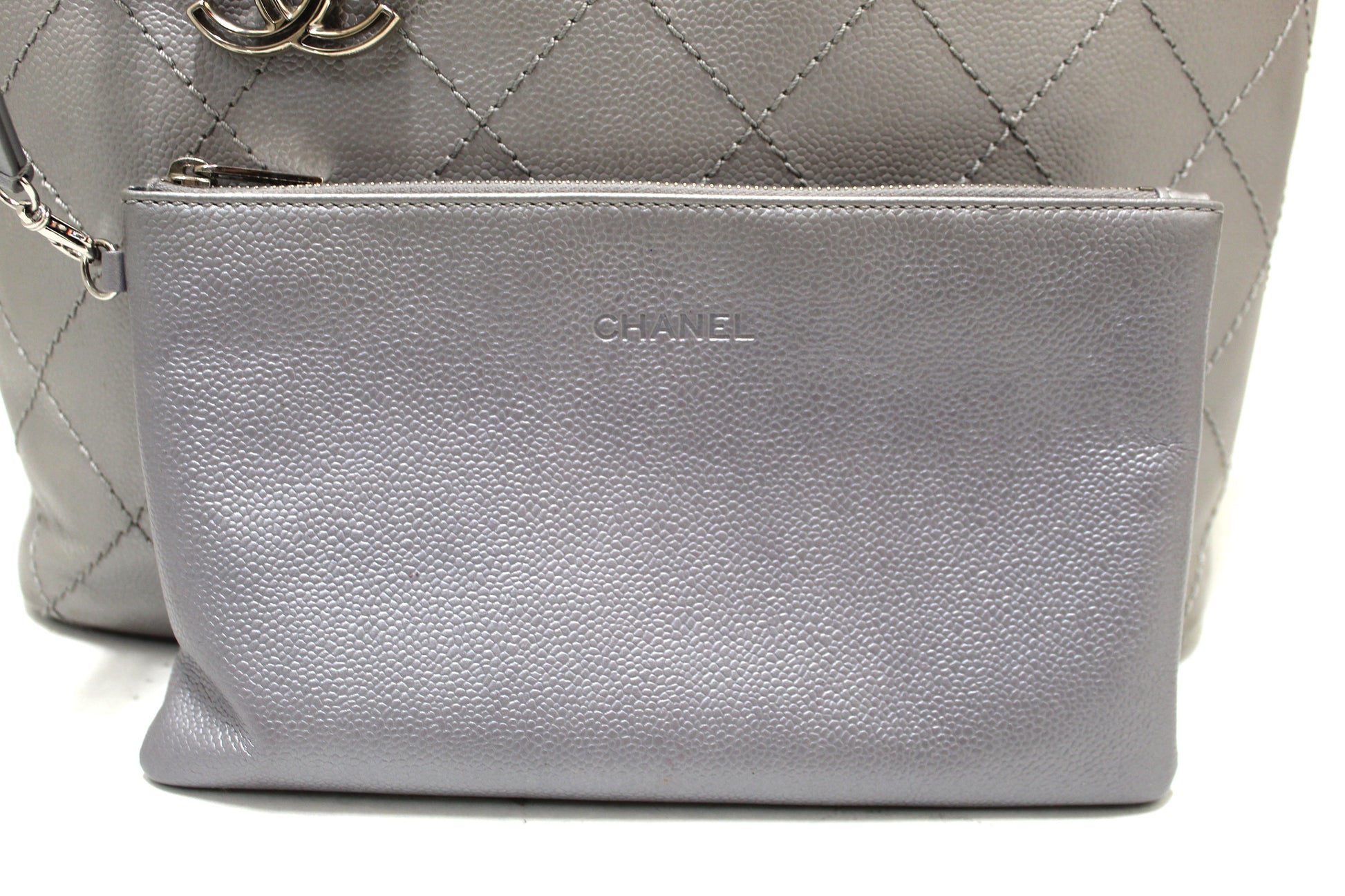 Chanel Silver Fever Caviar Quilted Shoulder Tote Bag