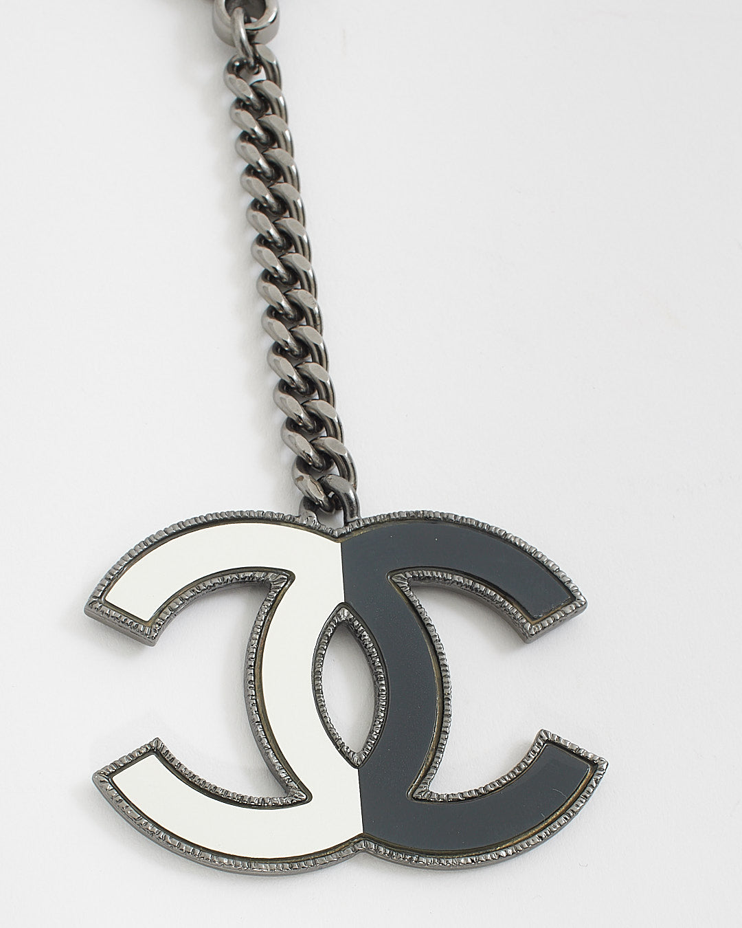 Chanel Silver Interlocking B/W CC Logo Key Chain