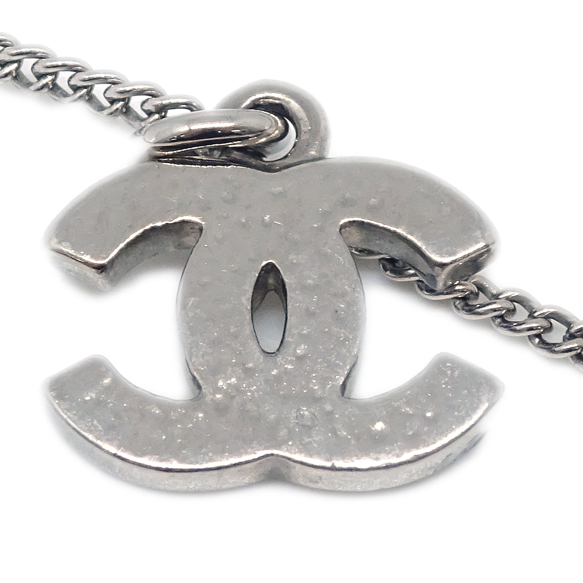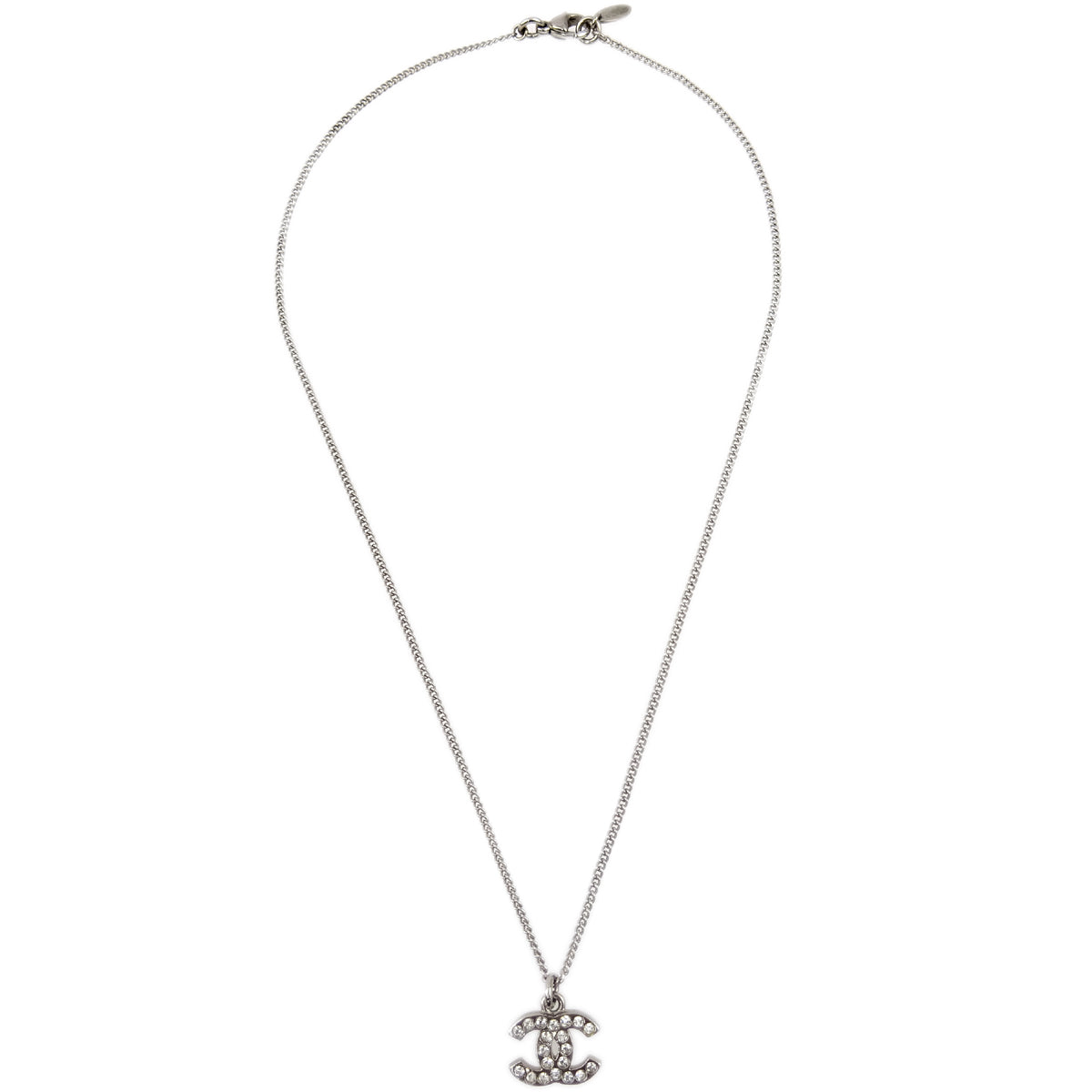 Chanel Silver Necklace Pendant Rhinestone 08V