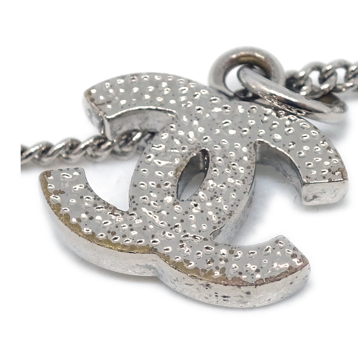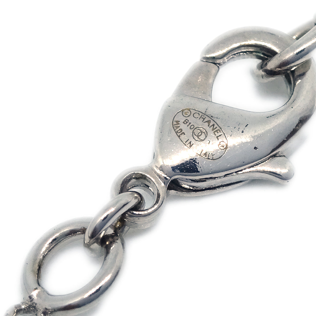 Chanel Silver Necklace Pendant Rhinestone B10V
