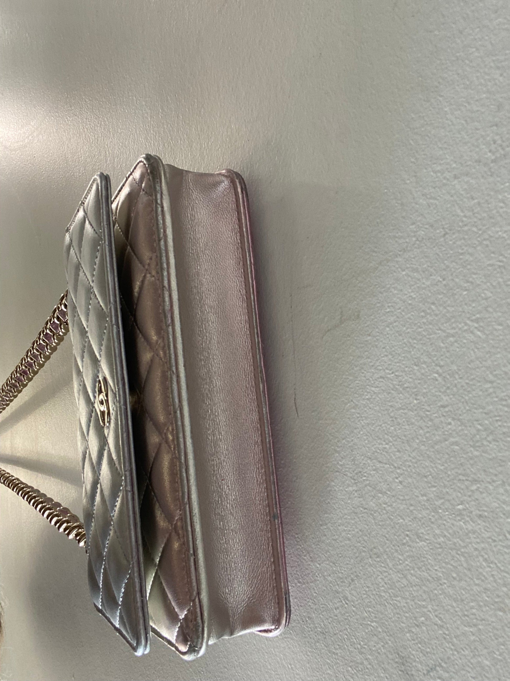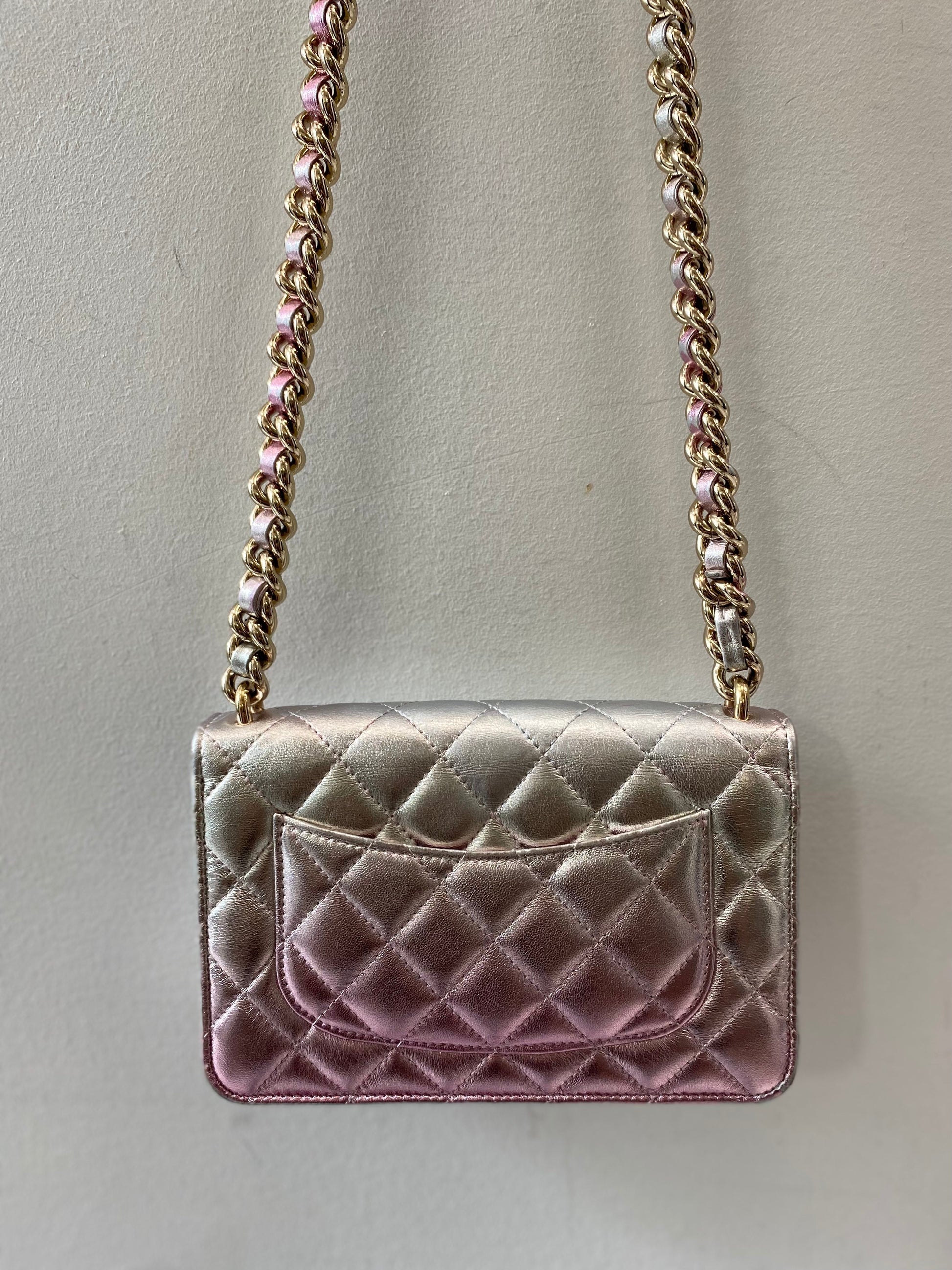 Chanel Silver and Pink Gradient Metallic Quilted Lambskin WOC Wallet on Chain Light Gold Hardware