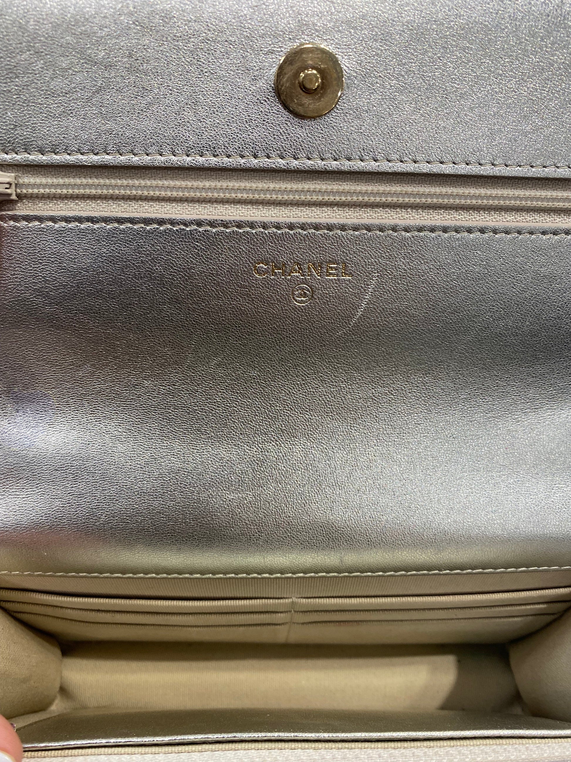 CHANEL SILVER & PINK METALLIC GRADIENT QUILTED LAMBSKIN WOC