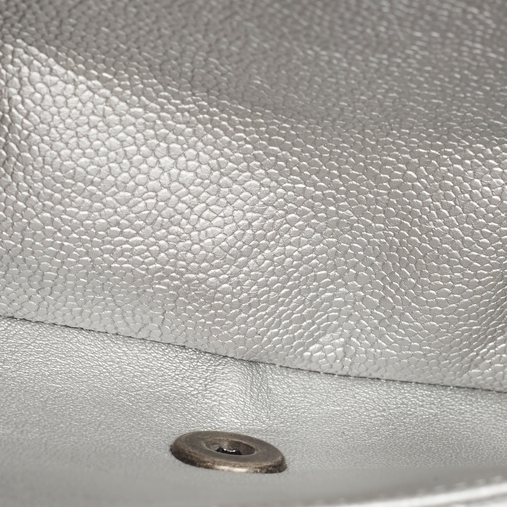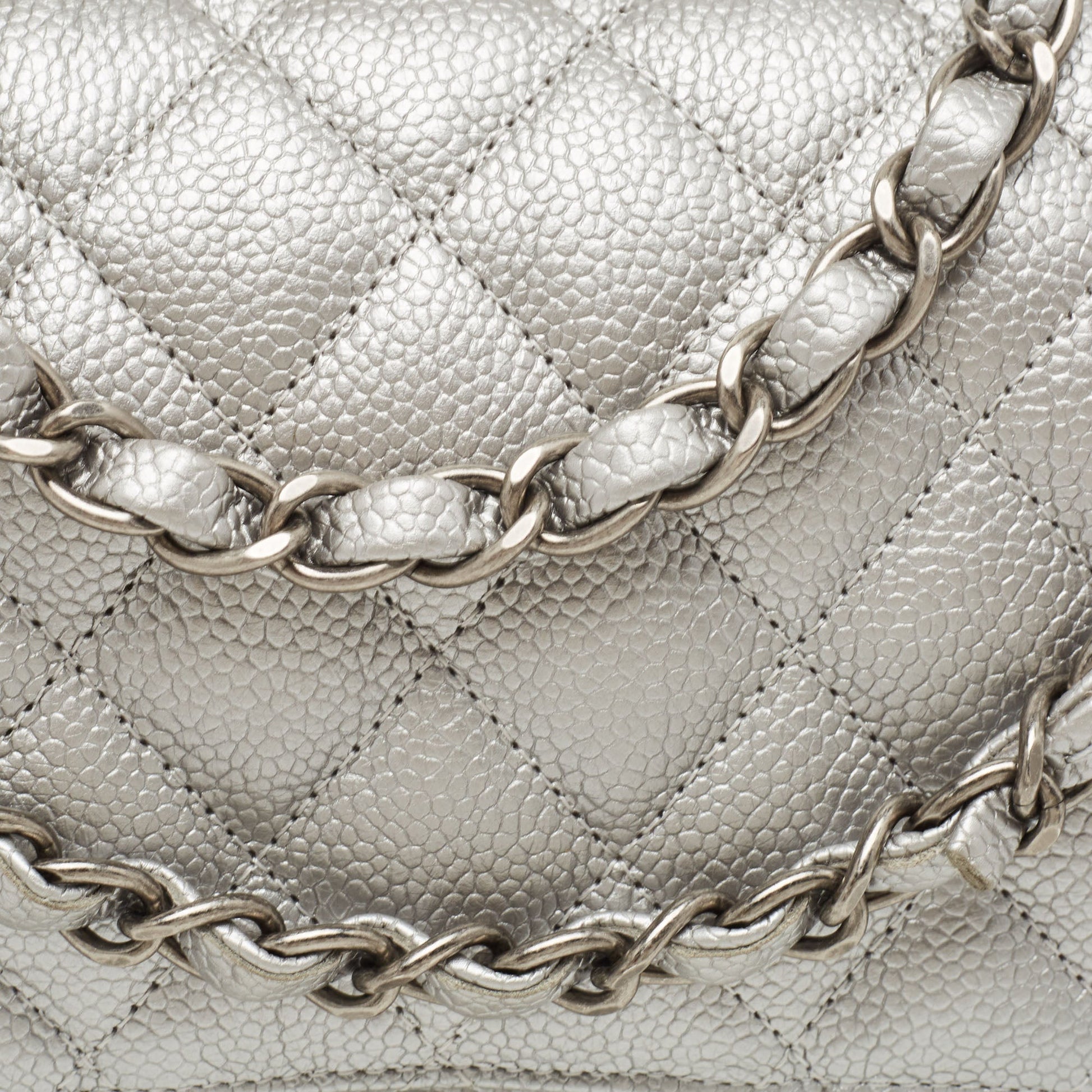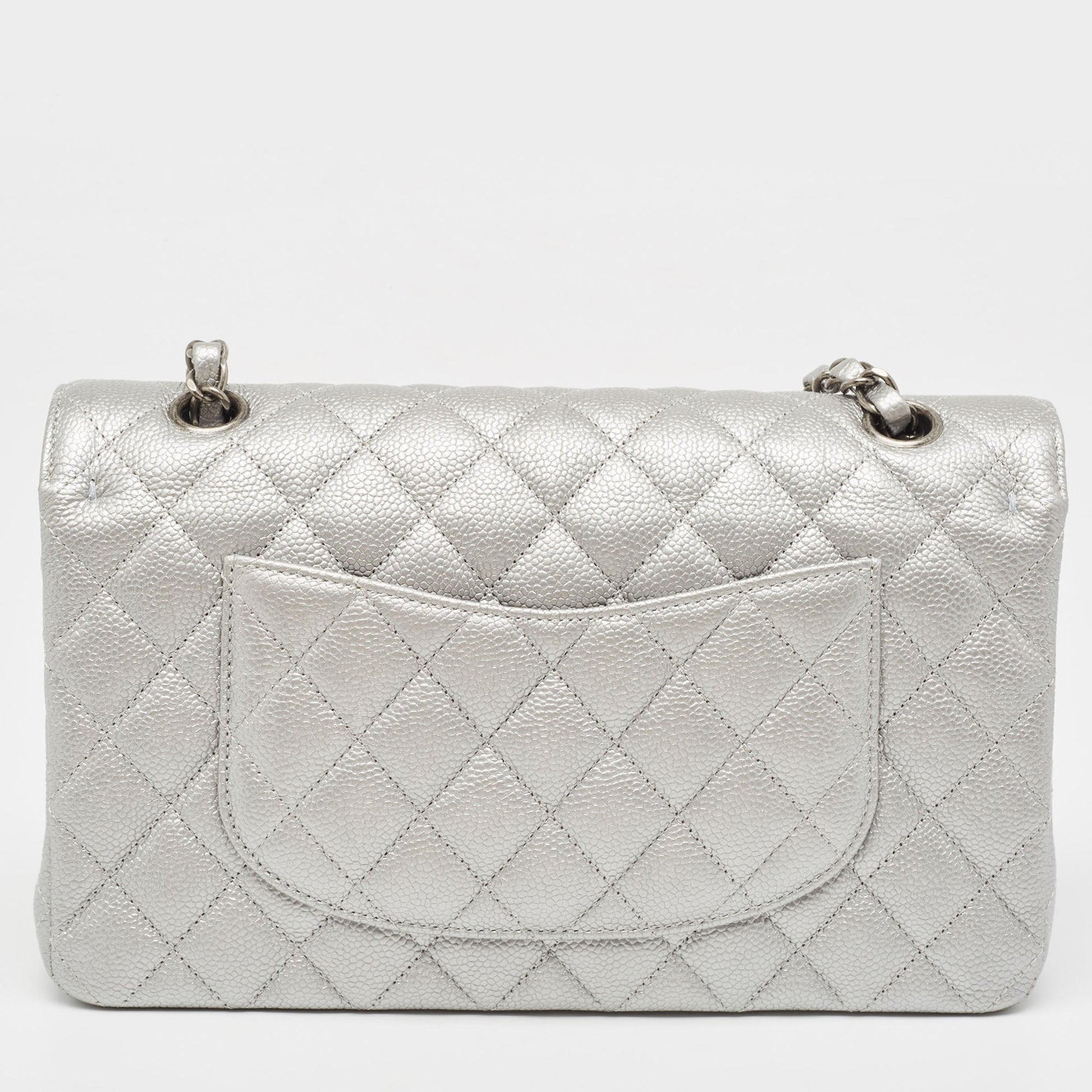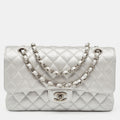 CHANEL Silver Quilted Caviar Leather Medium Classic Double Flap Bag