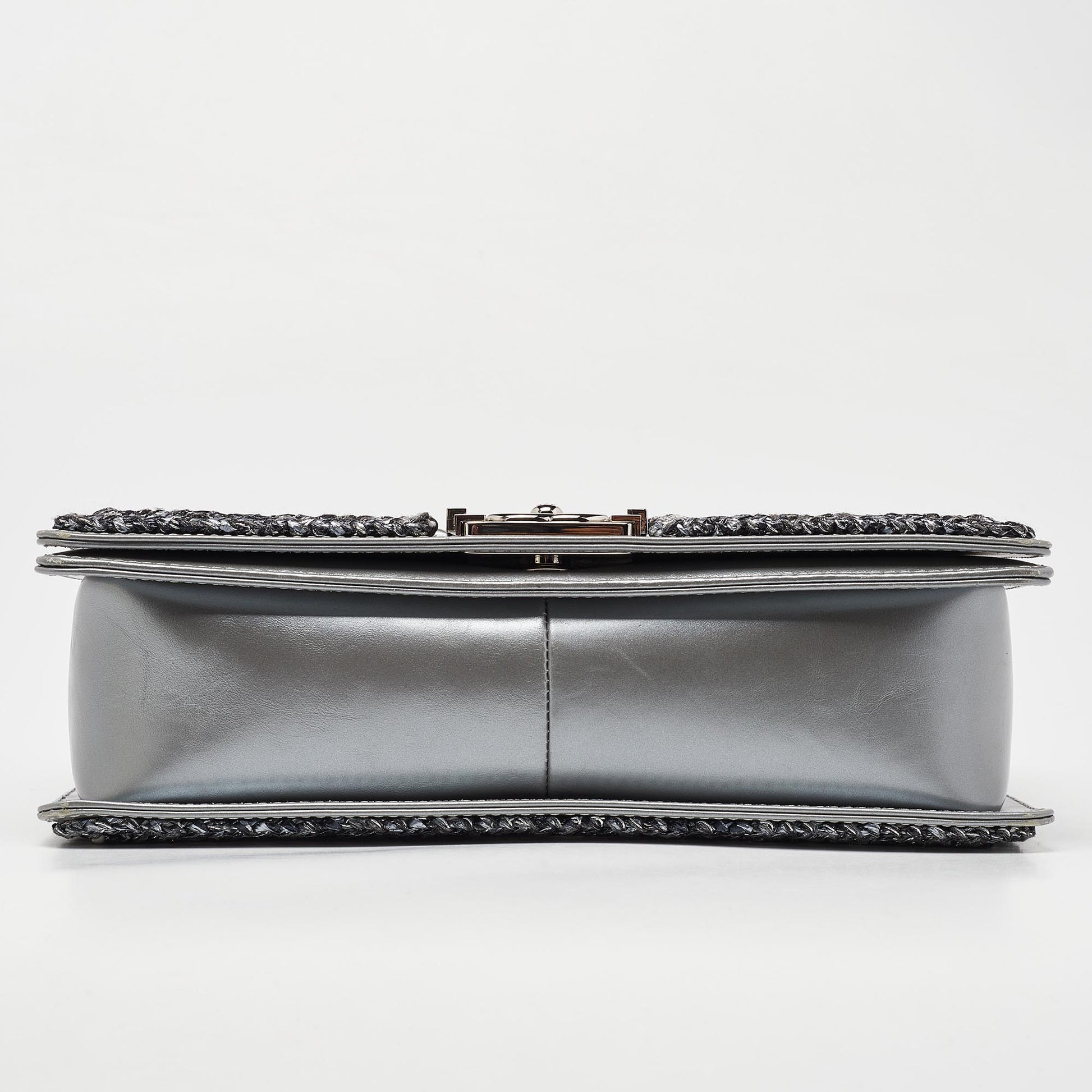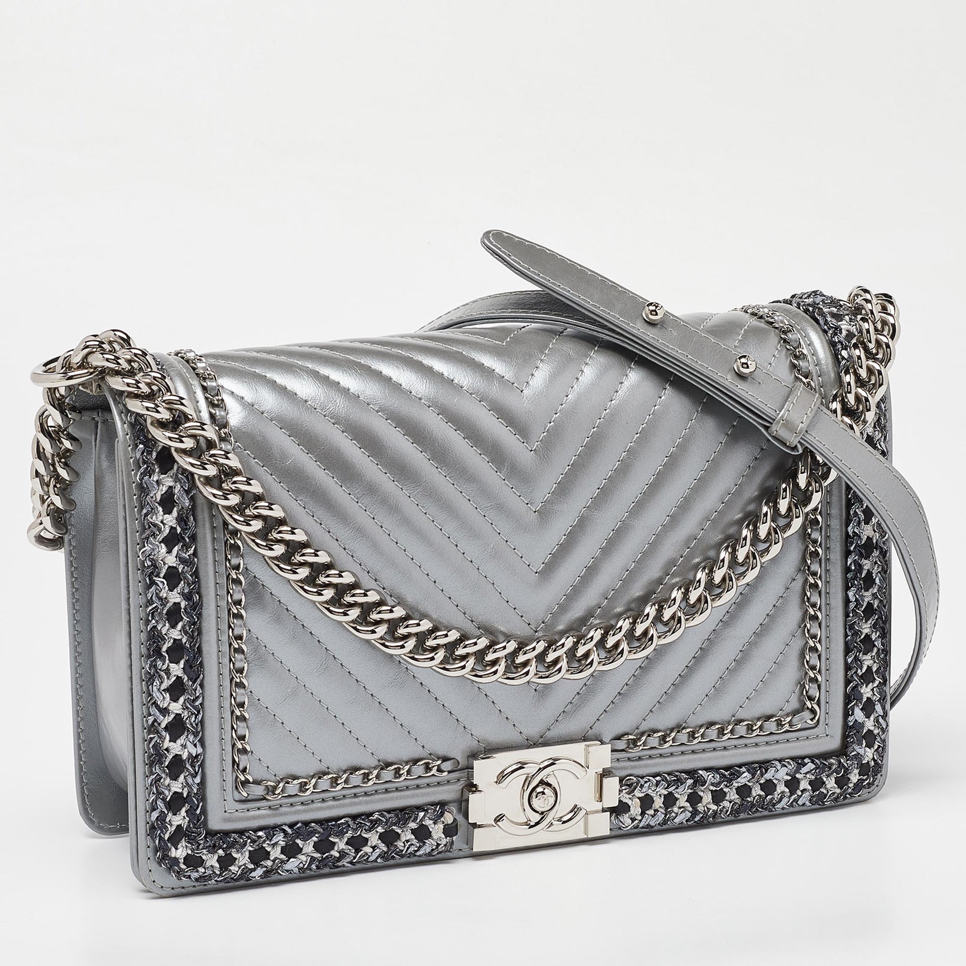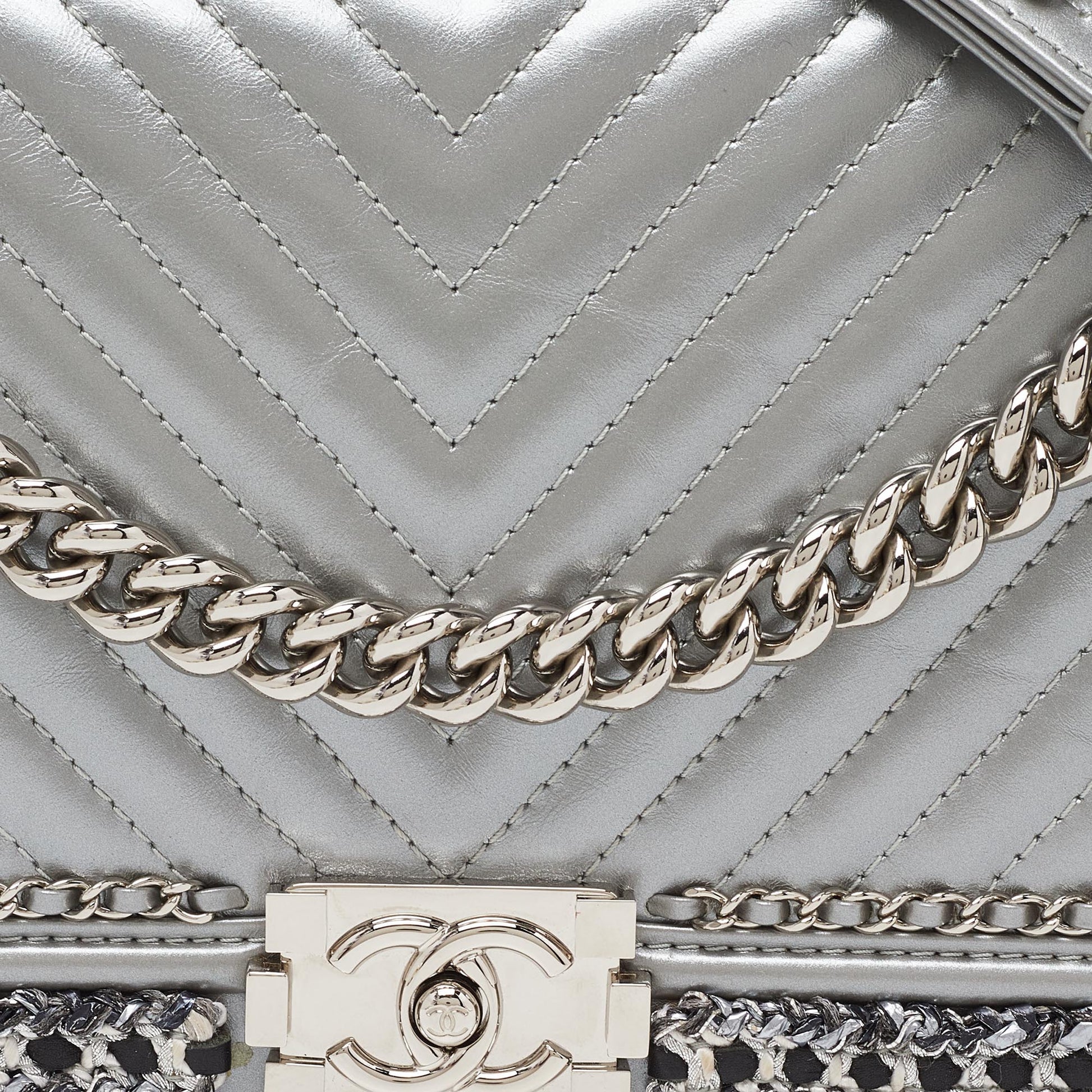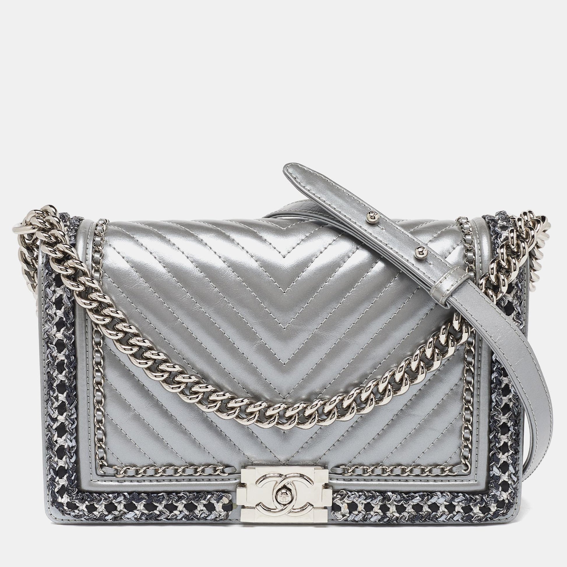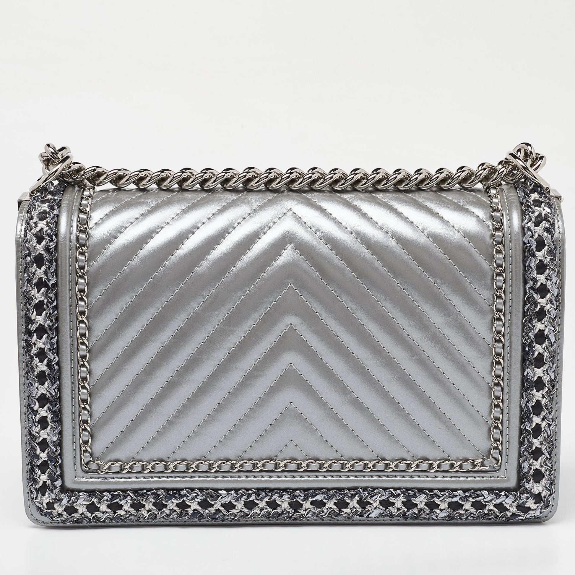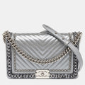 CHANEL Silver Quilted Leather New Medium Boy Flap Bag