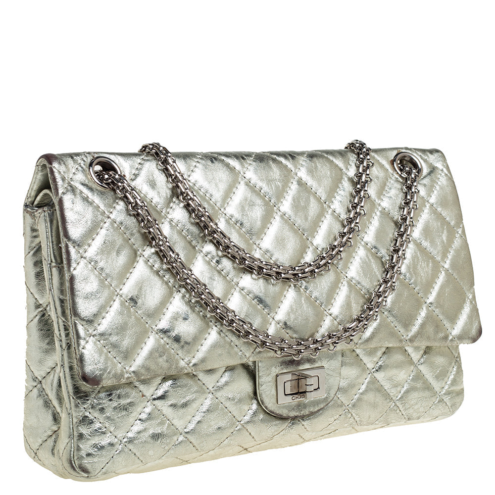 Chanel Silver Quilted Leather Reissue 2.55 Classic 226 Flap Bag