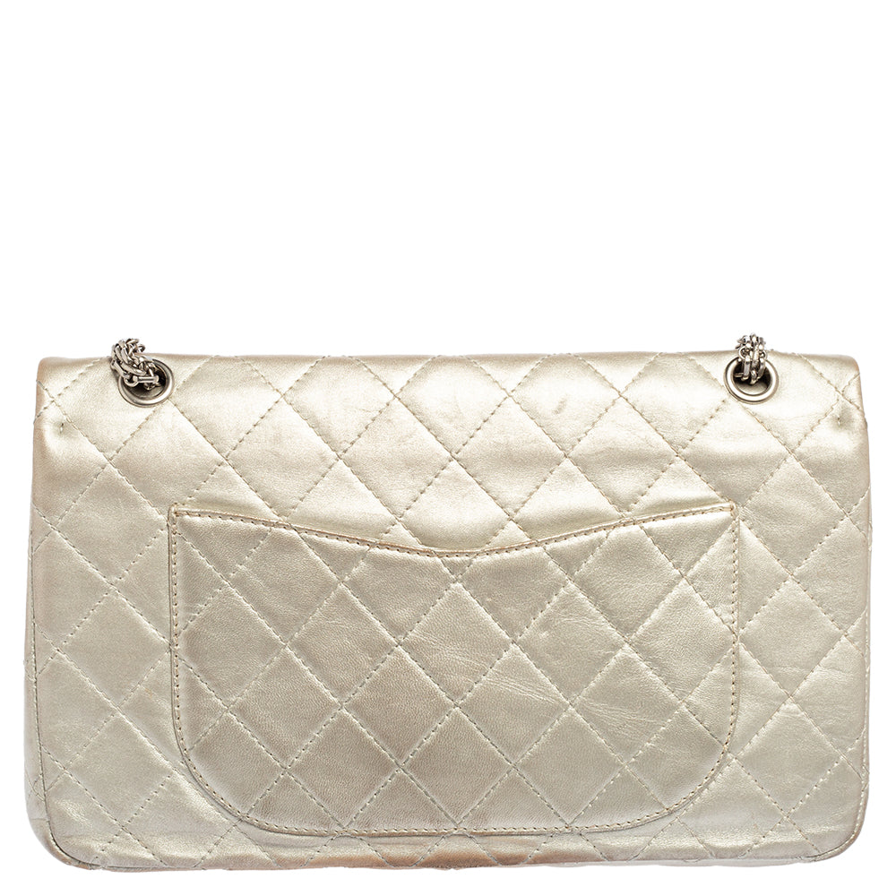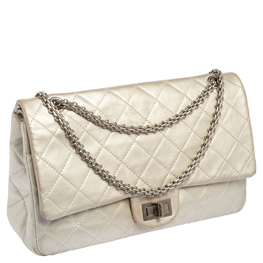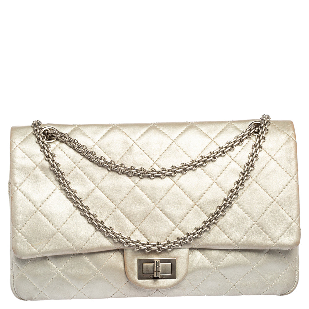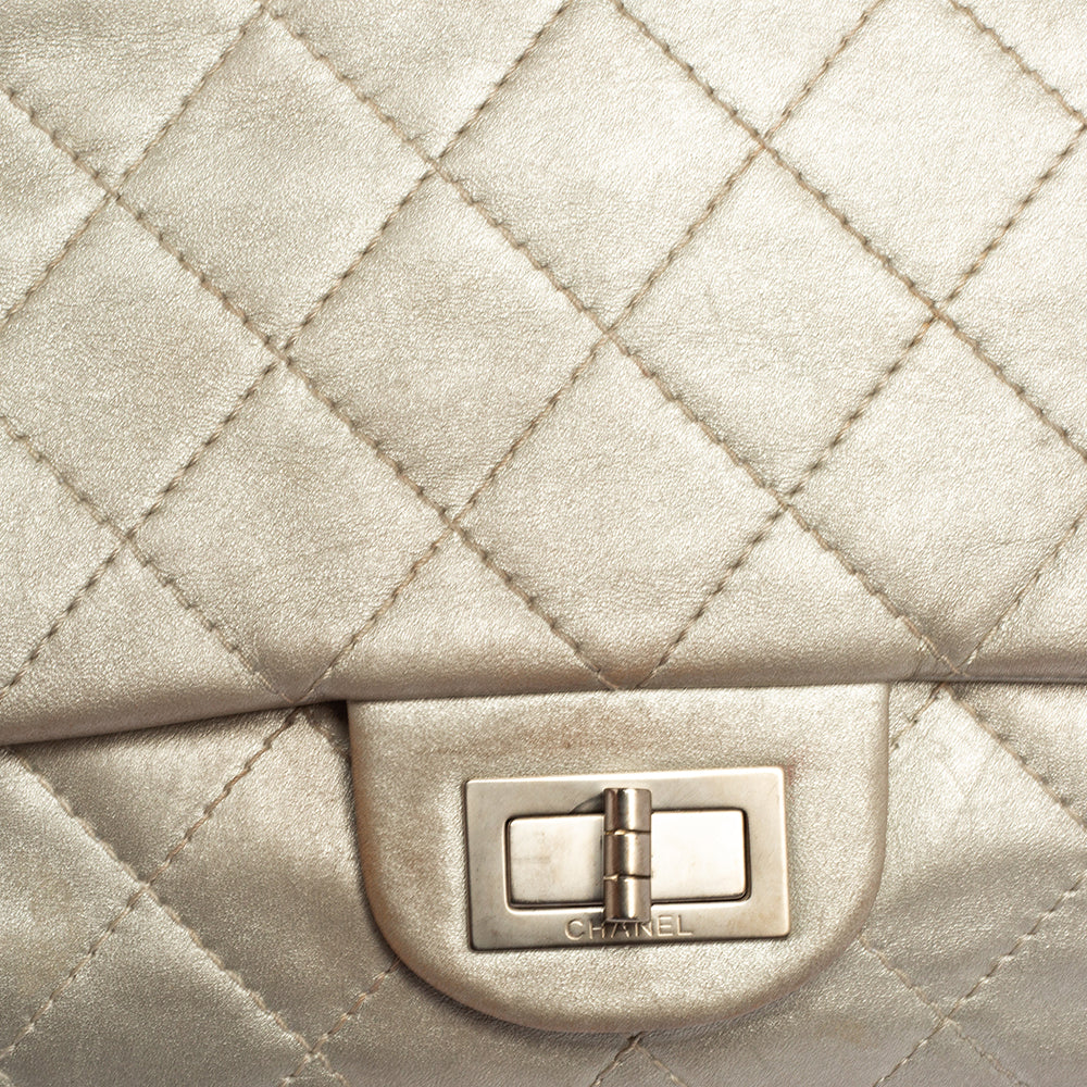 Chanel Silver Quilted Leather Reissue 2.55 Classic 227 Flap Bag